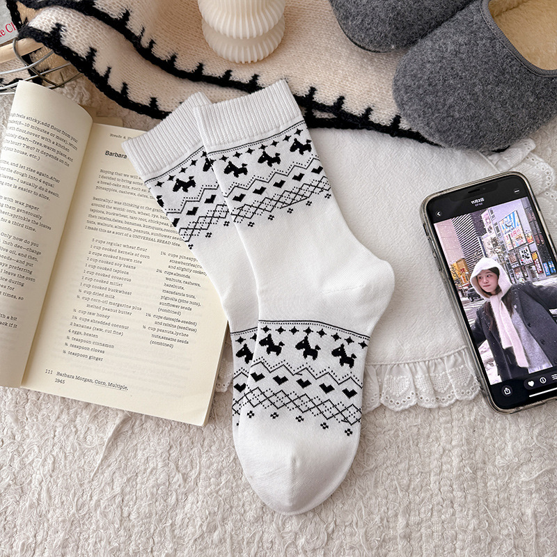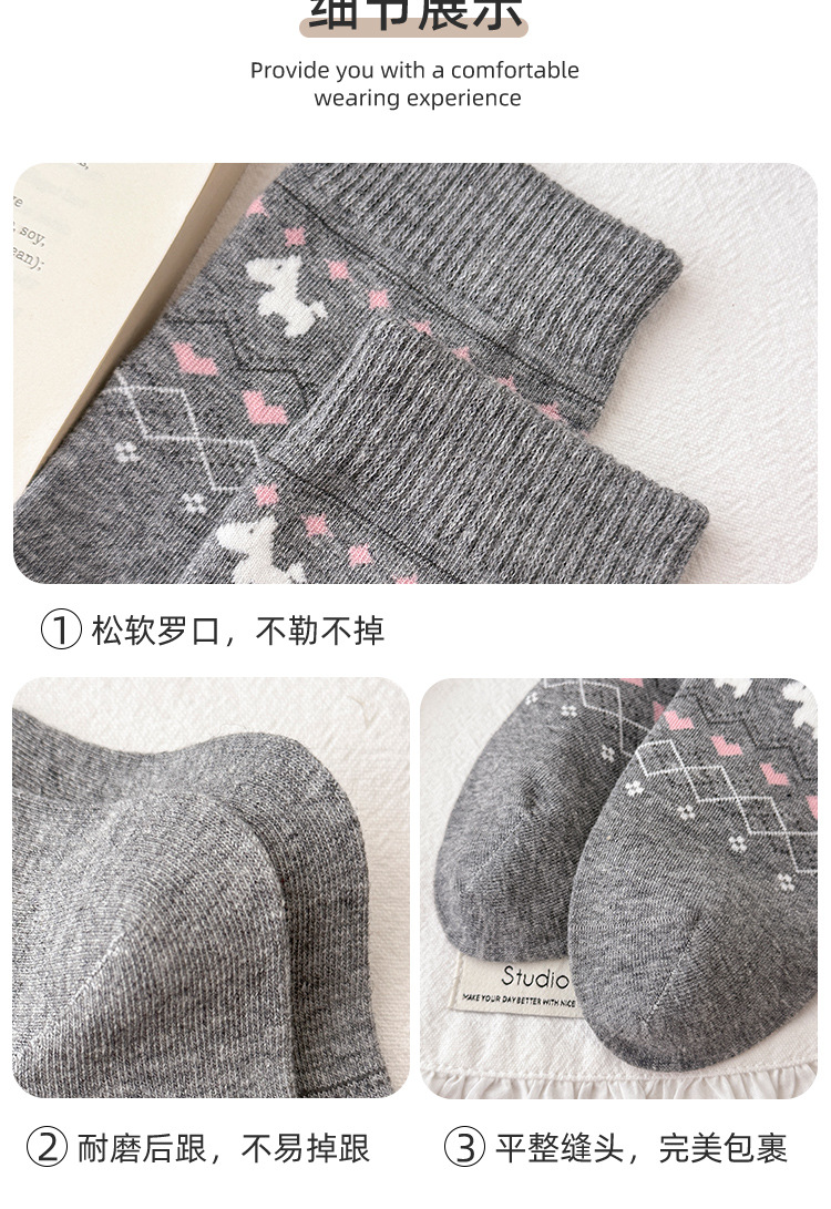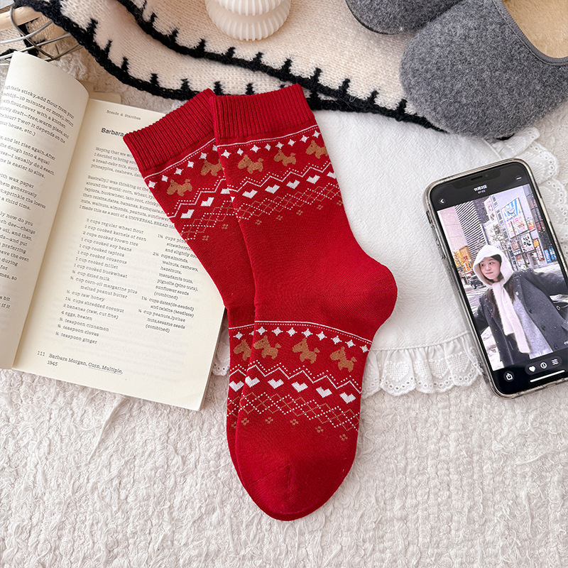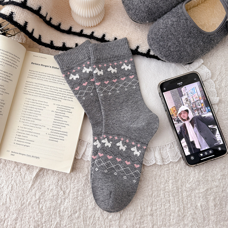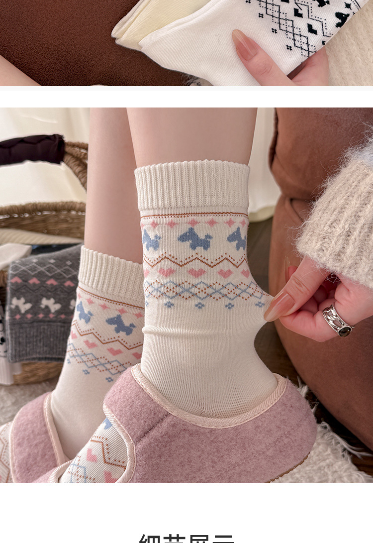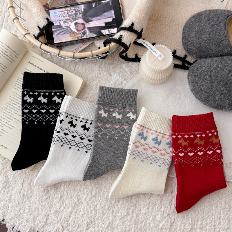 马年袜子女卡通可爱小马中筒袜时尚百搭无骨堆堆袜复古费尔岛袜子