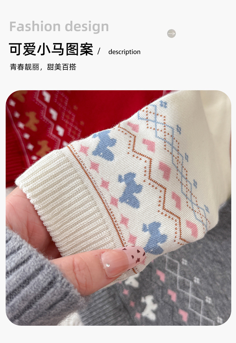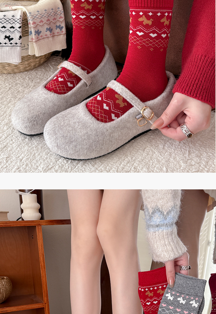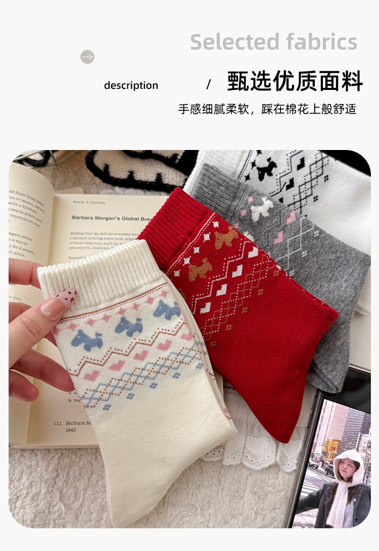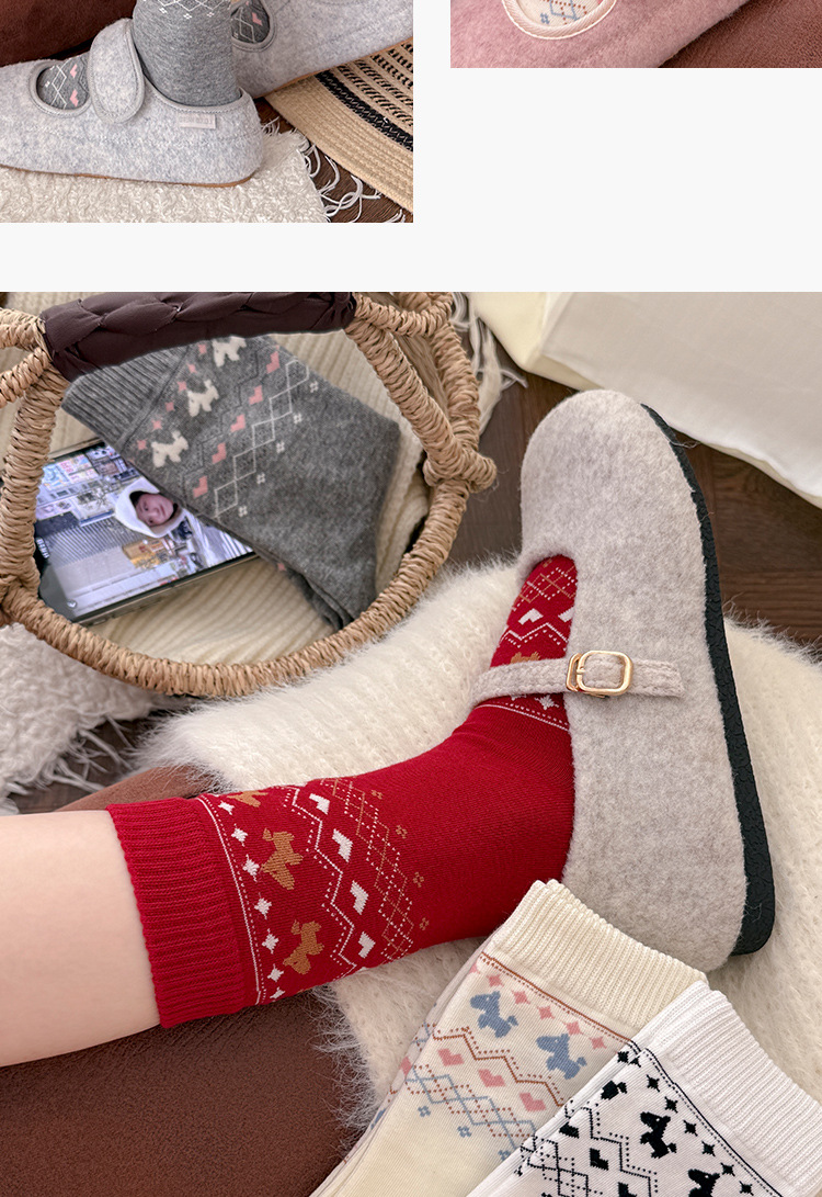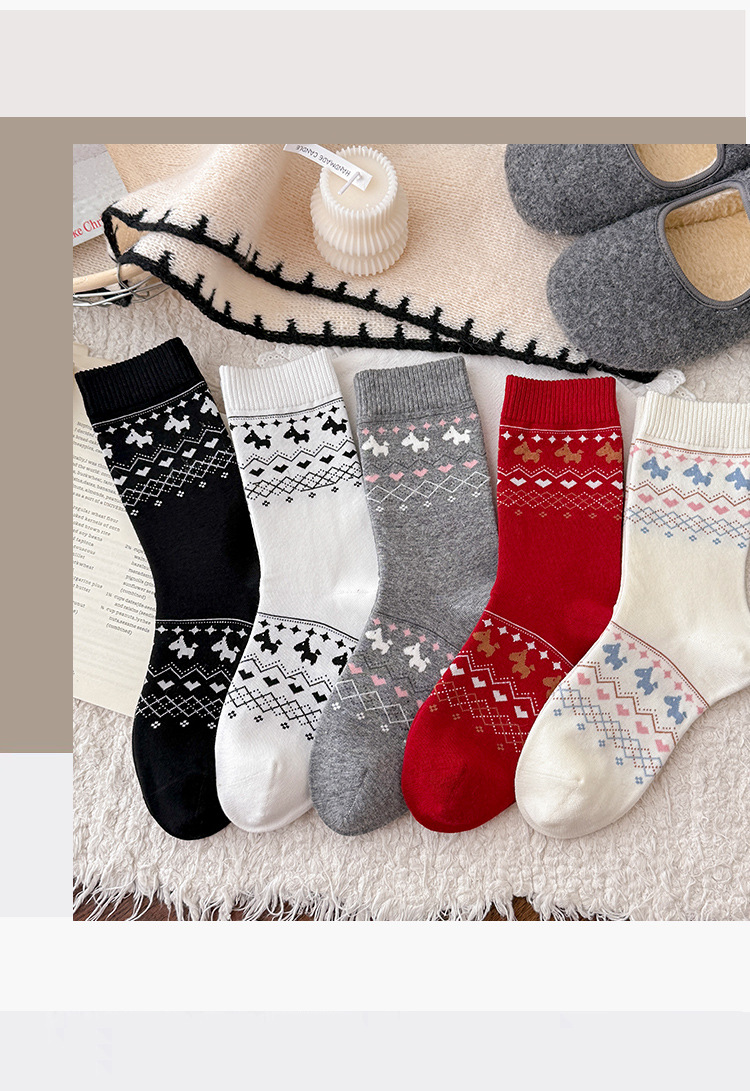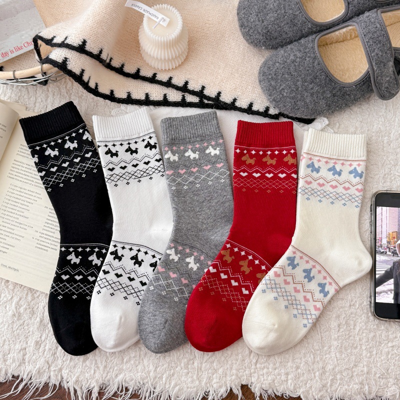 马年袜子女卡通可爱小马中筒袜时尚百搭无骨堆堆袜复古费尔岛袜子
