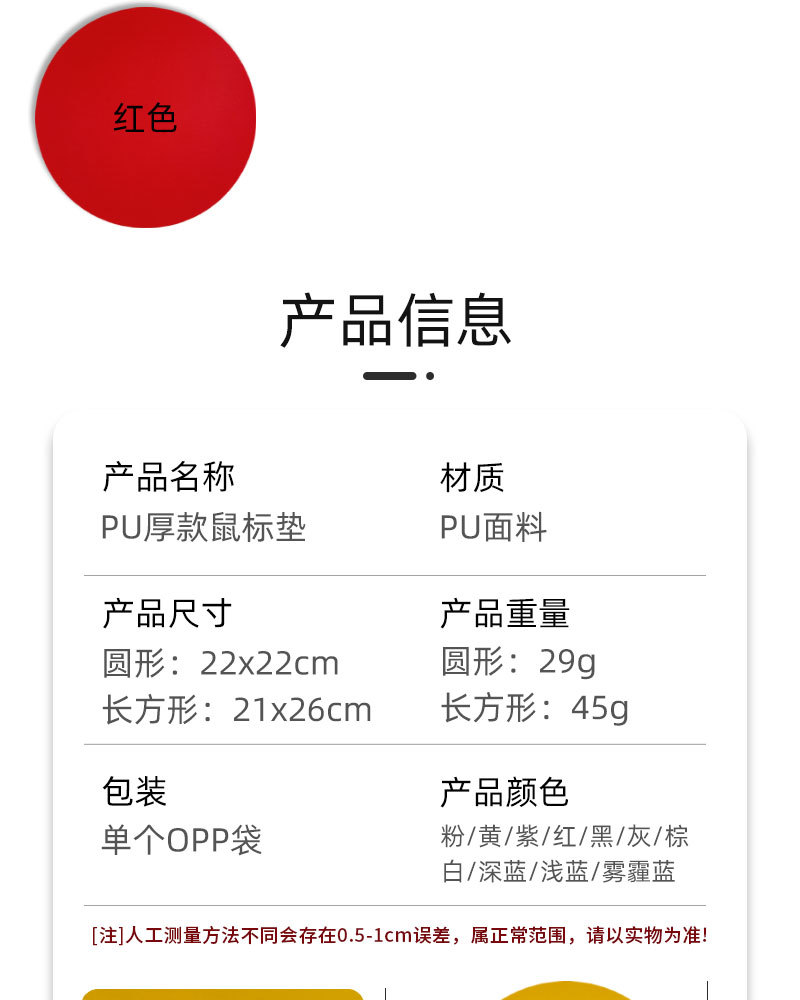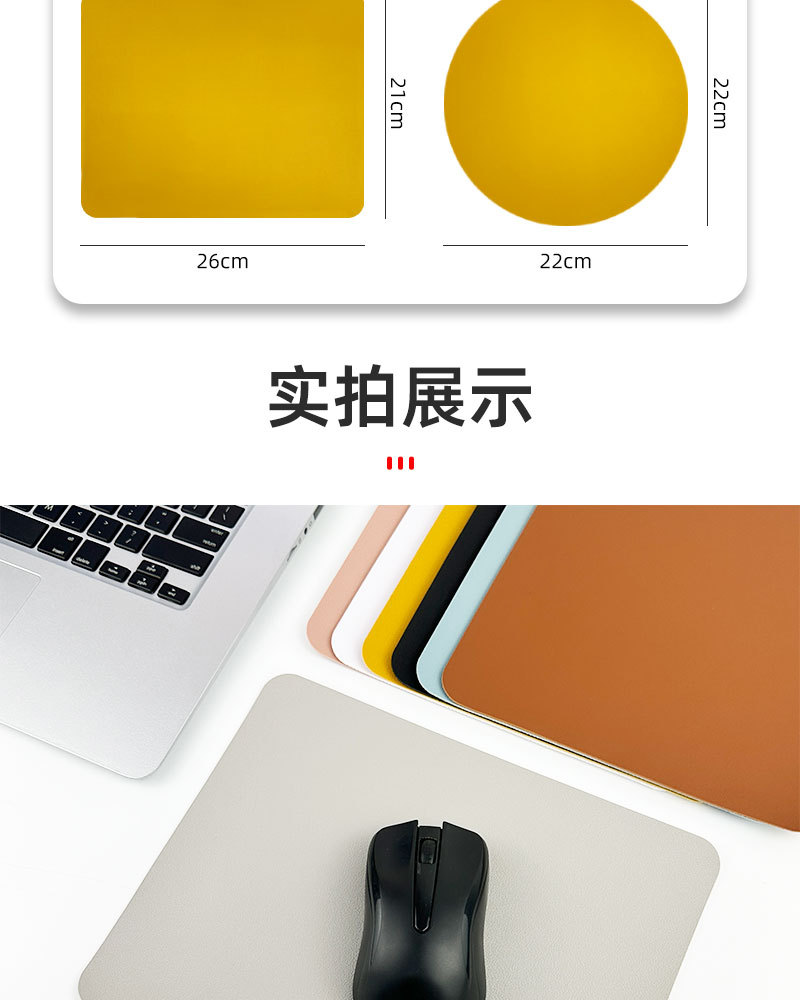 跨境现货pu皮加厚鼠标垫皮革耐脏多色方形圆形皮质鼠标垫可定LOGO