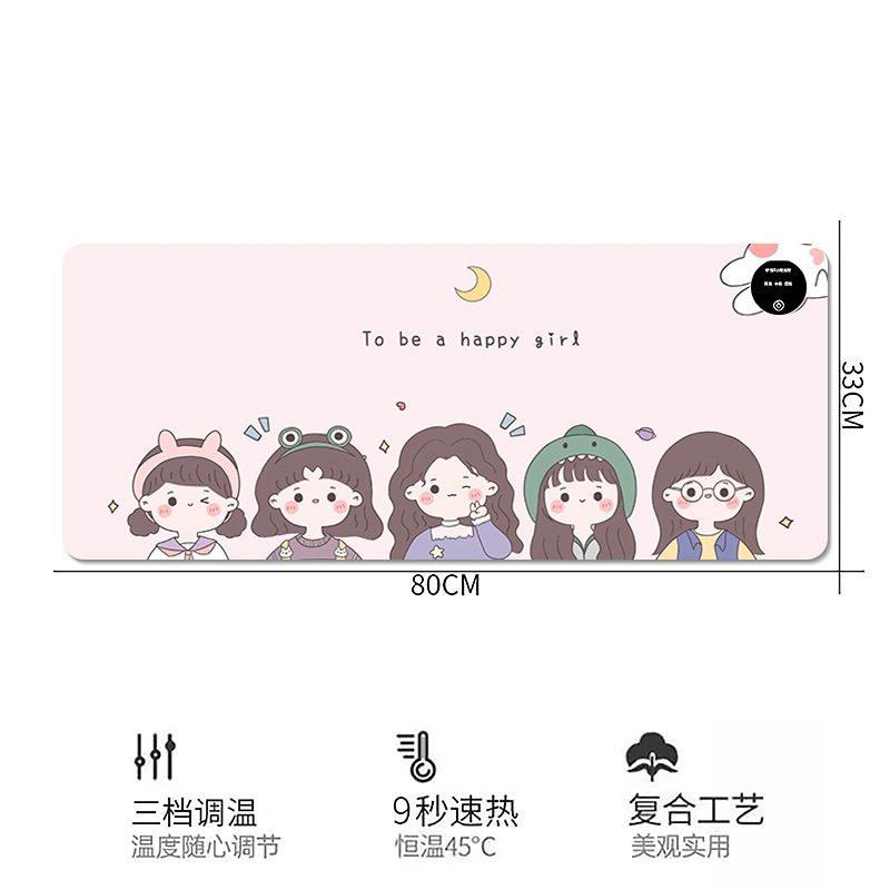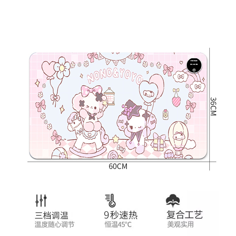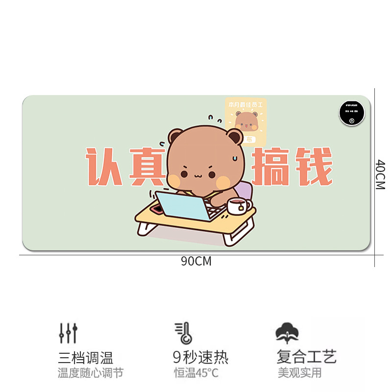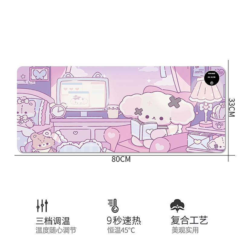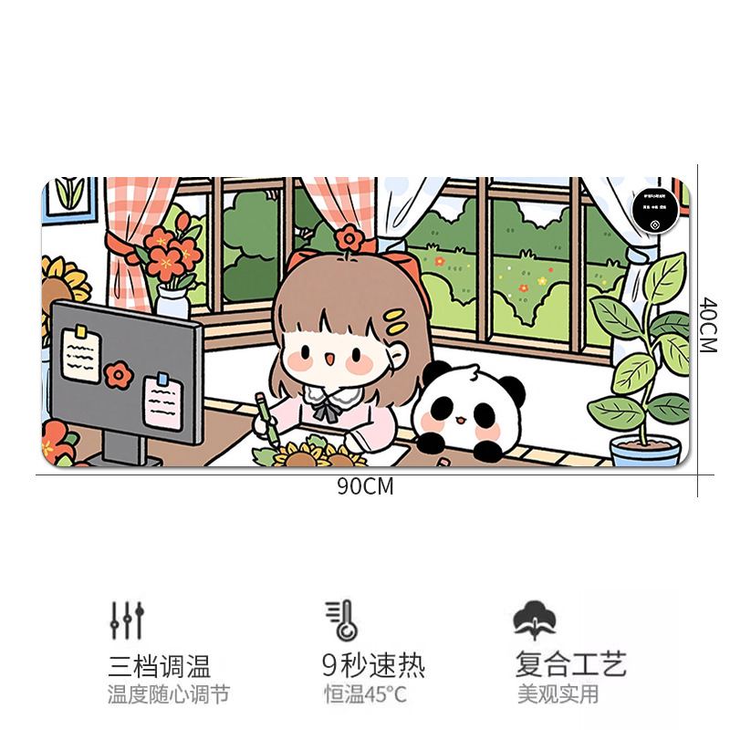 发热鼠标垫大号卡通键盘加热桌垫办公室电脑桌面垫写作业暖桌