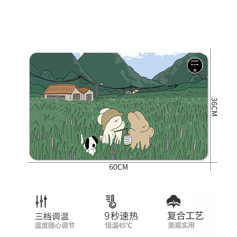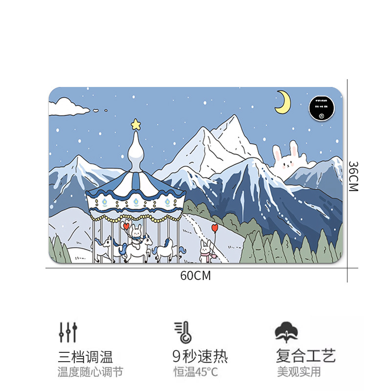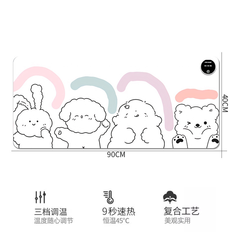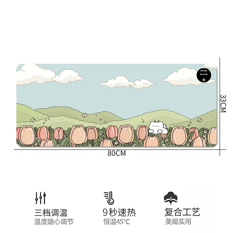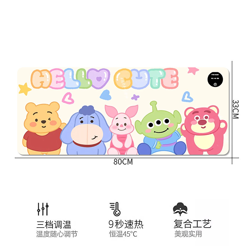 发热鼠标垫大号卡通键盘加热桌垫办公室电脑桌面垫写作业暖桌