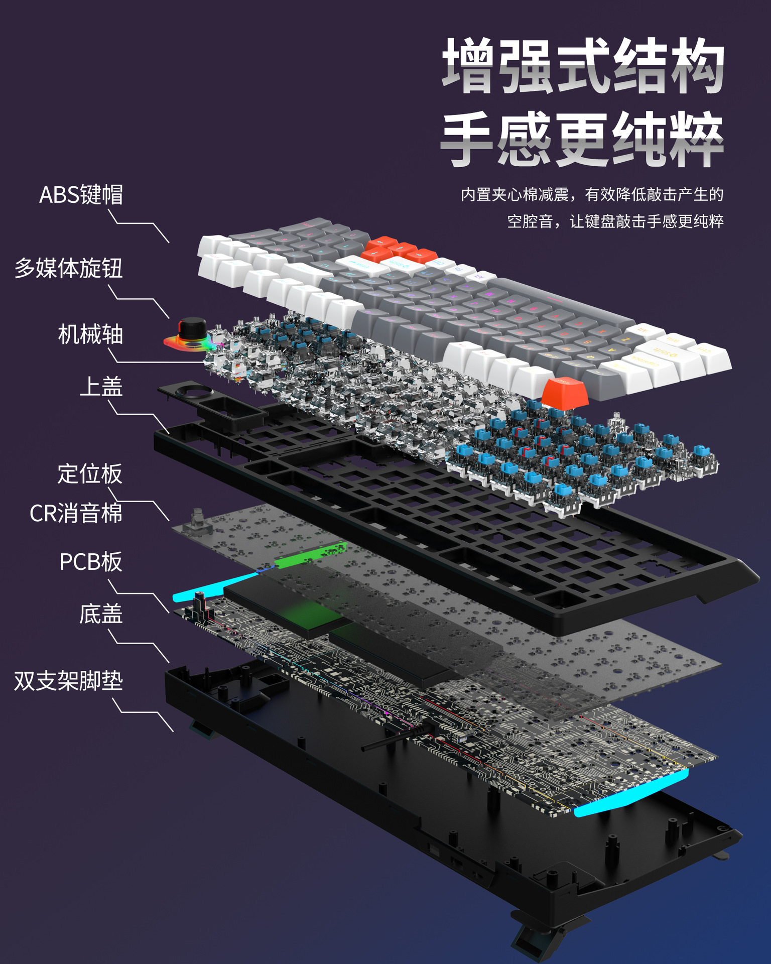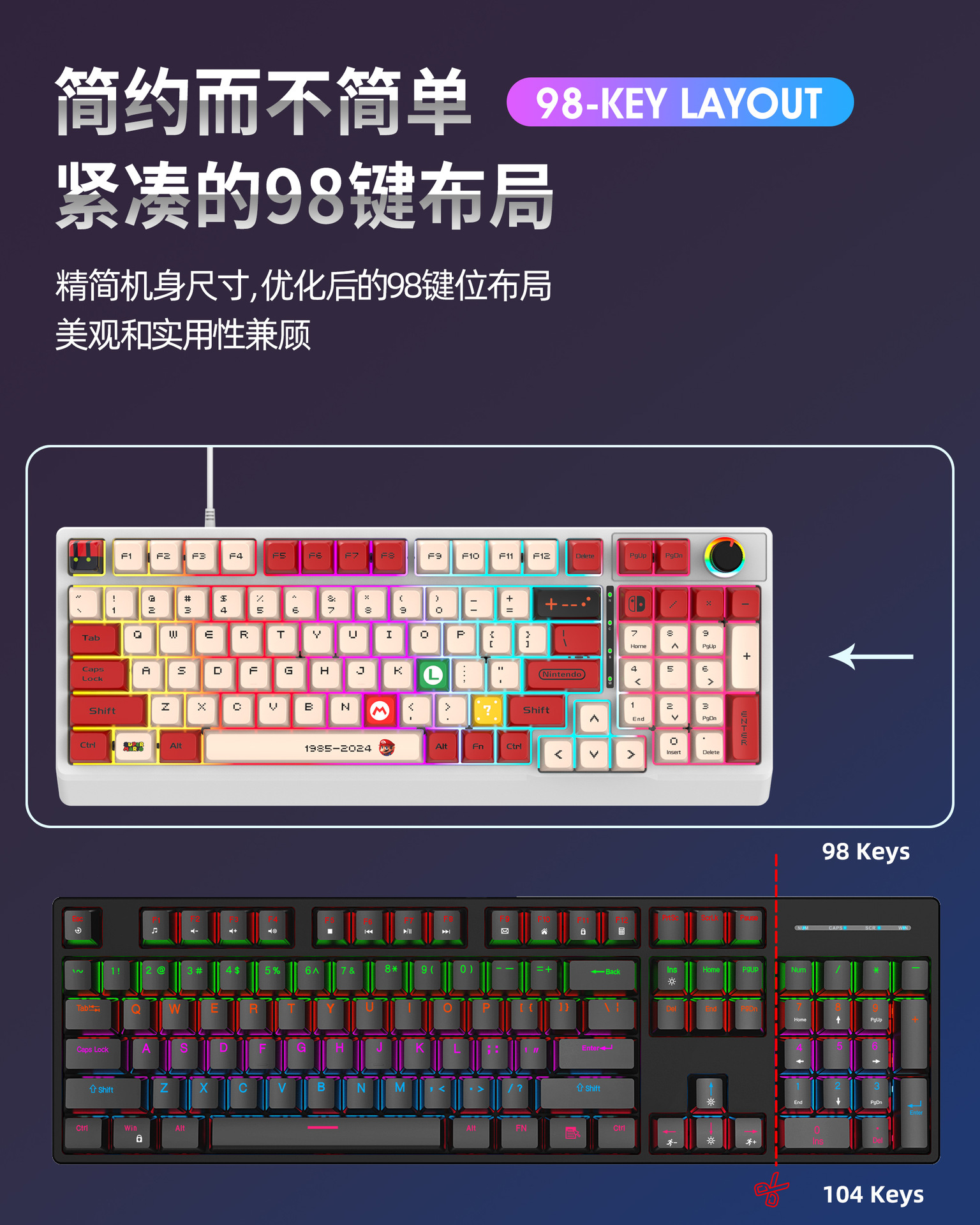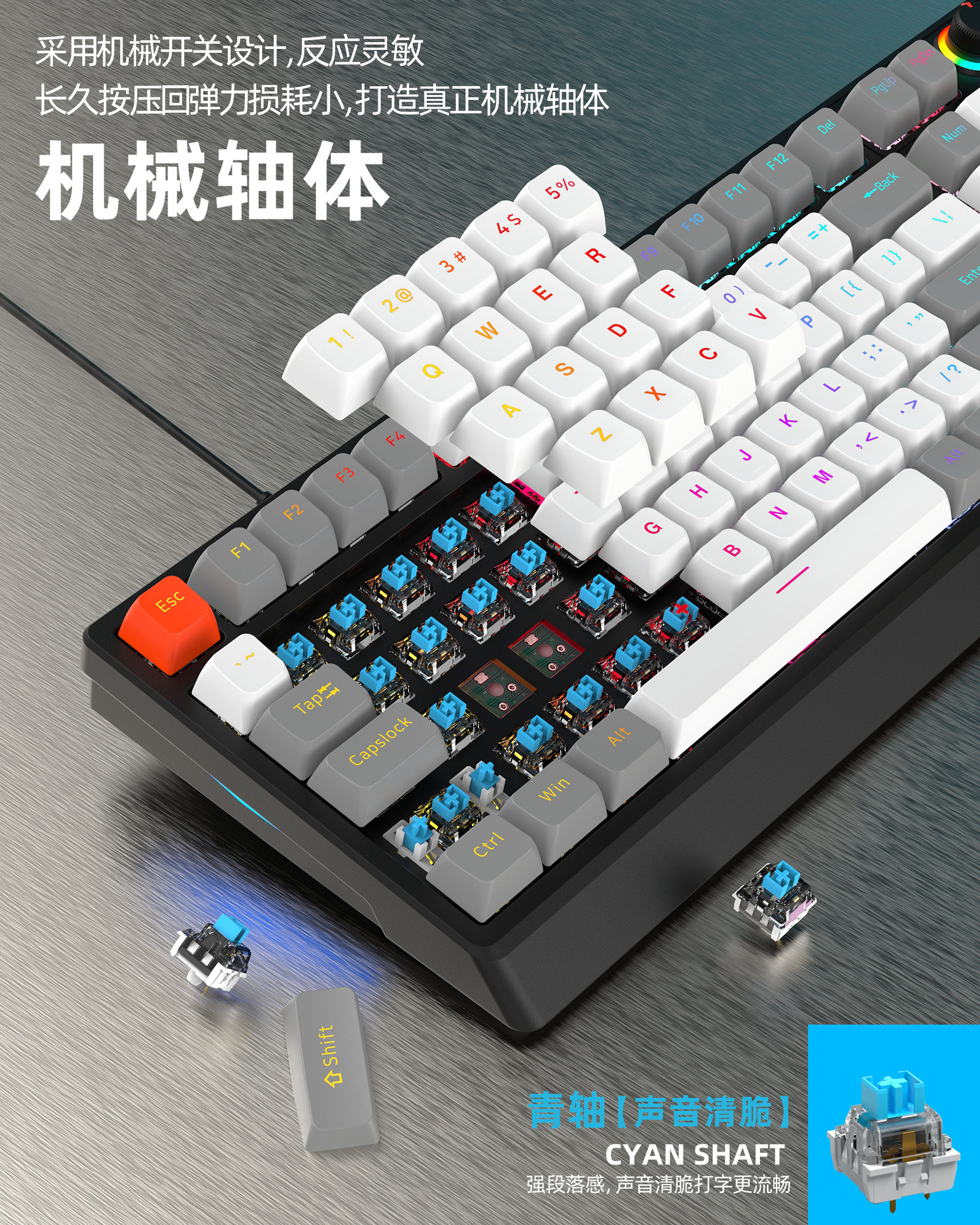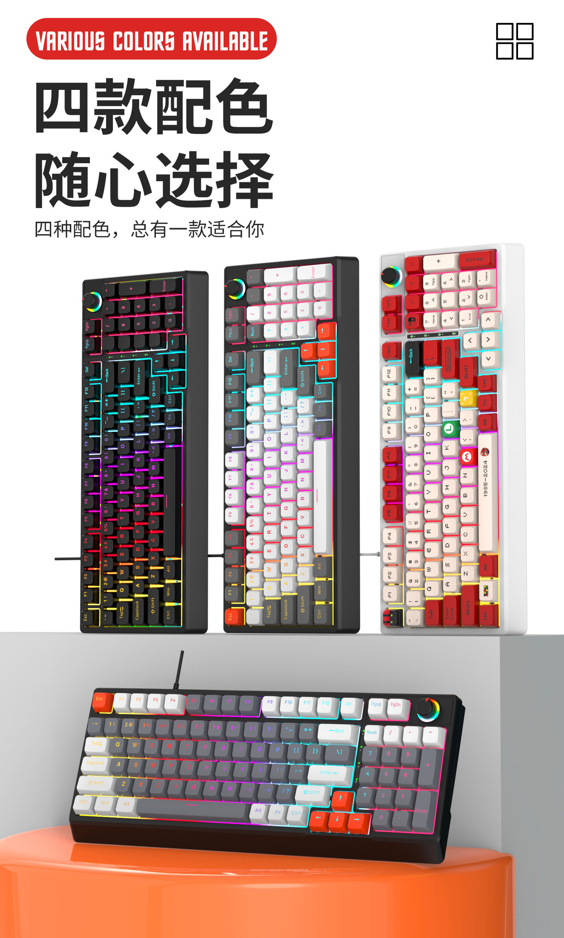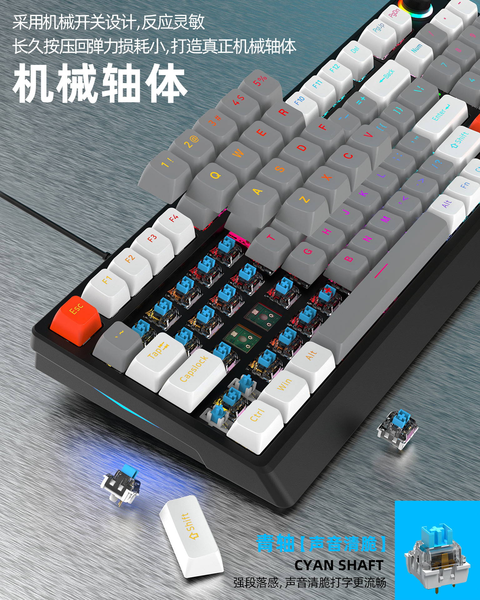 工厂现货K98真机械键盘 青轴红轴有线双色注塑热升华键帽游戏外设