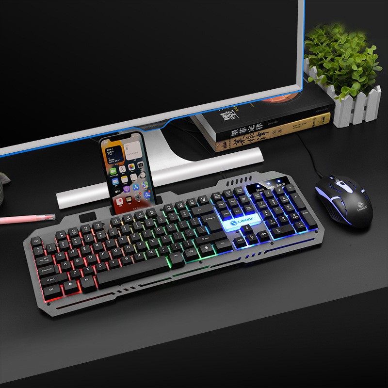 博士顿 悬浮式彩虹背光电脑USB有线键盘鼠标套装 DIY装机配