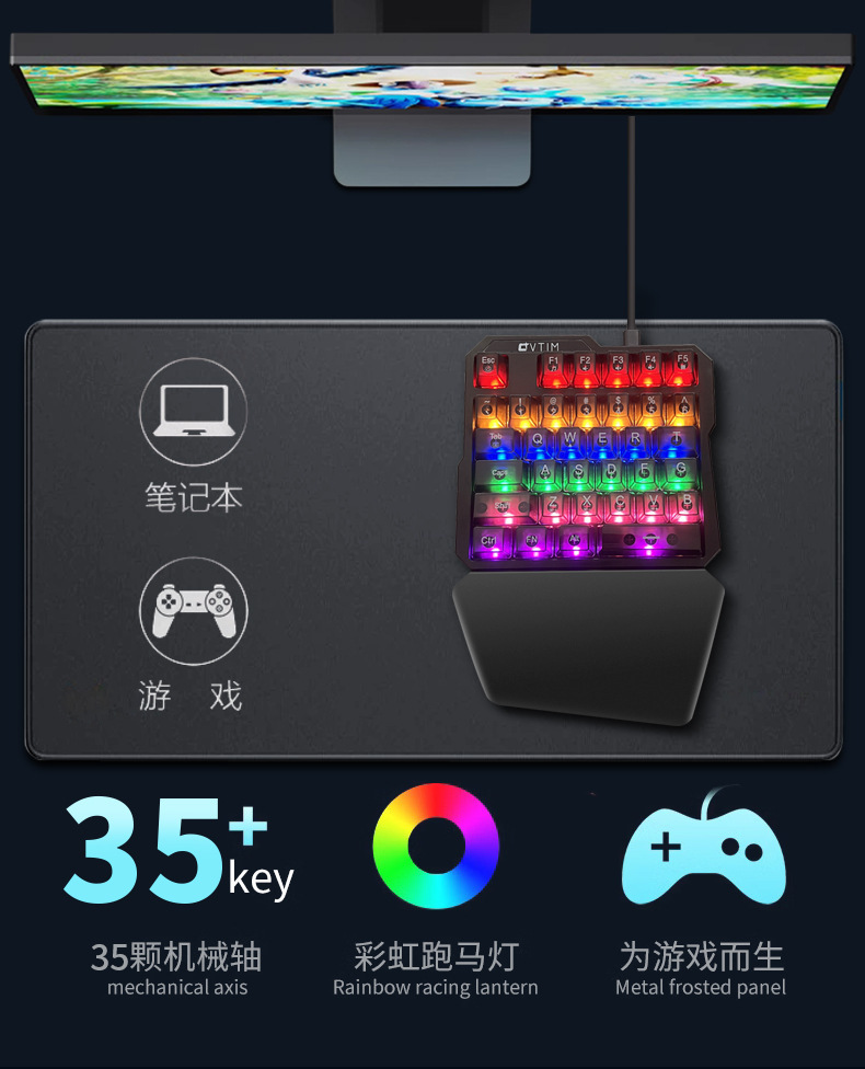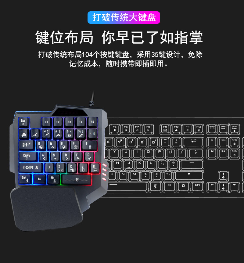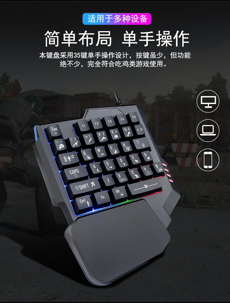 吃鸡lol绝地求生真机械单手键盘RGB有线发光电竞游戏左手游戏键盘