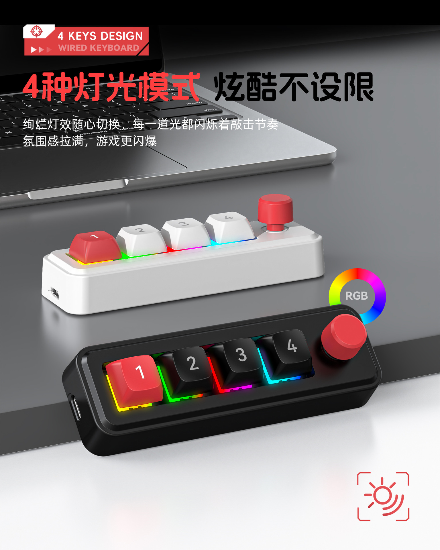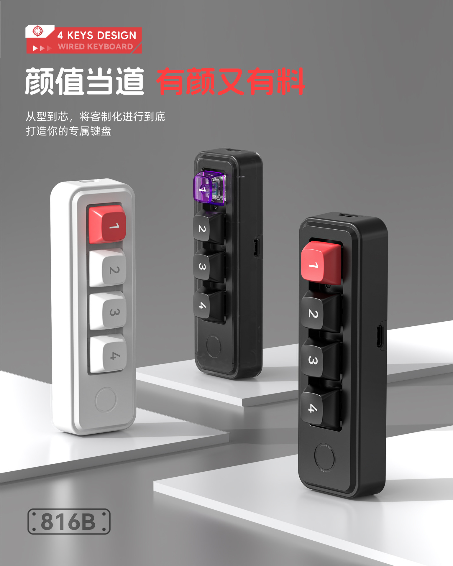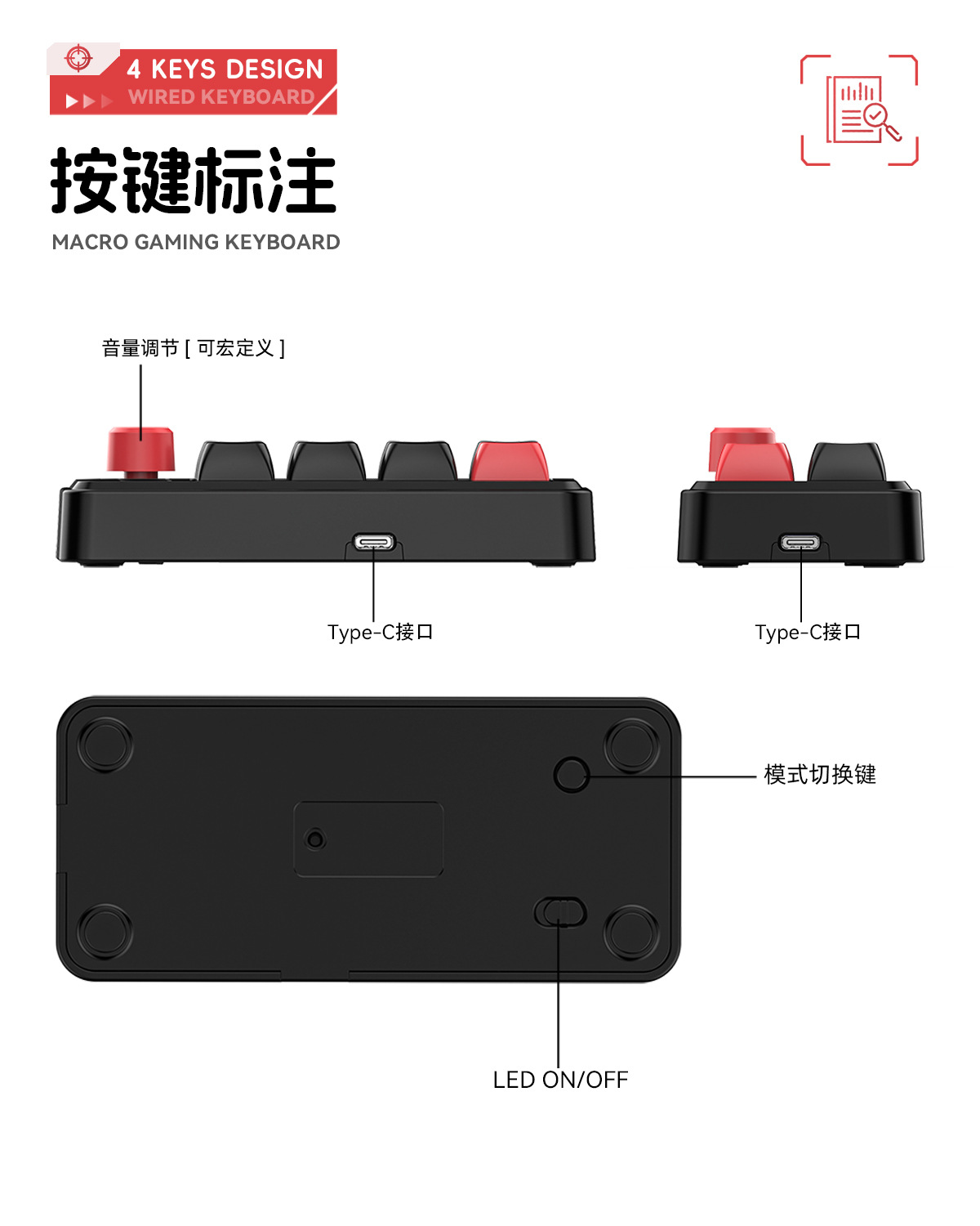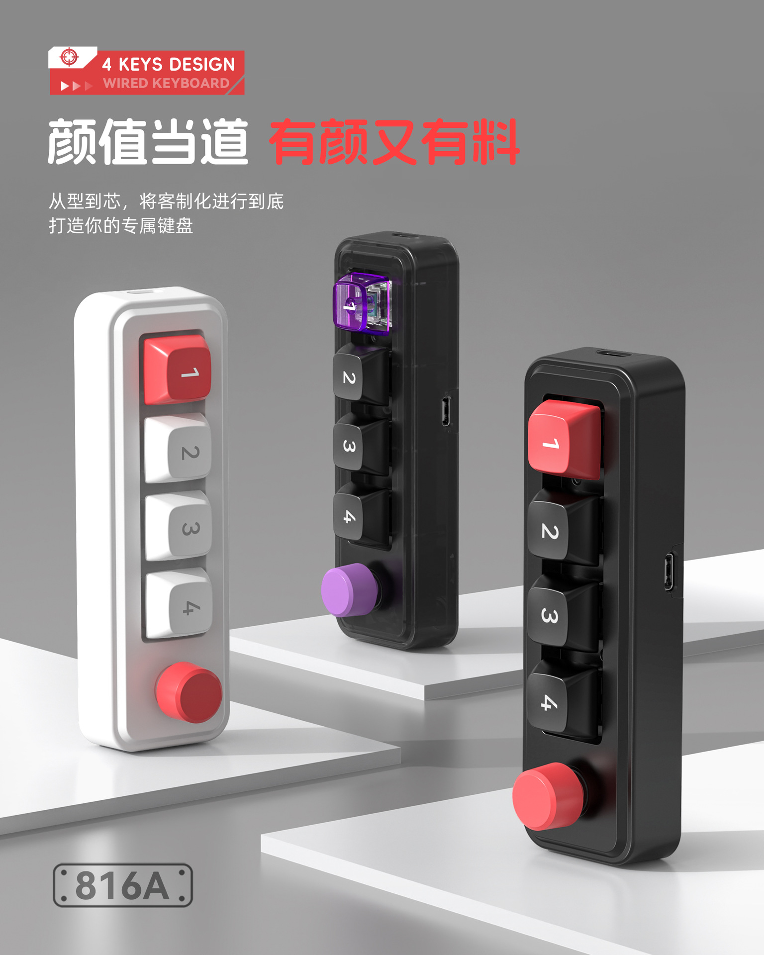 4键有线热插拔宏定义游戏机械小键盘源头厂家