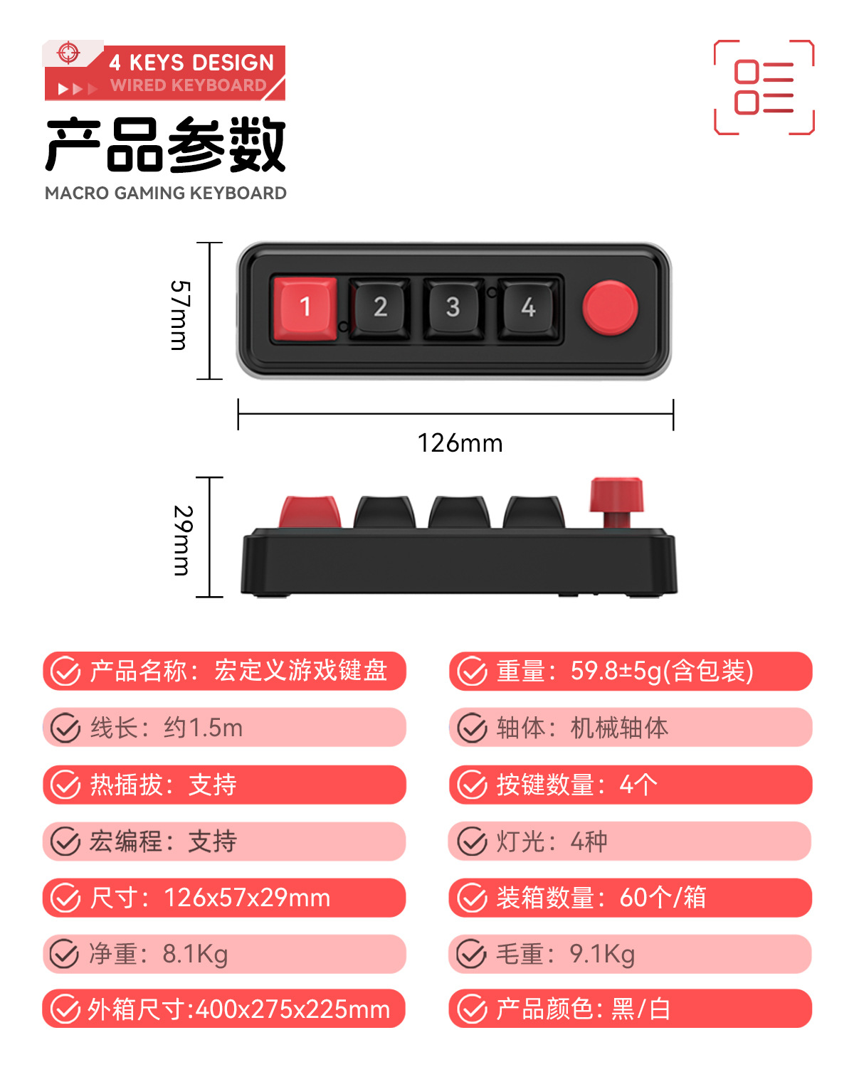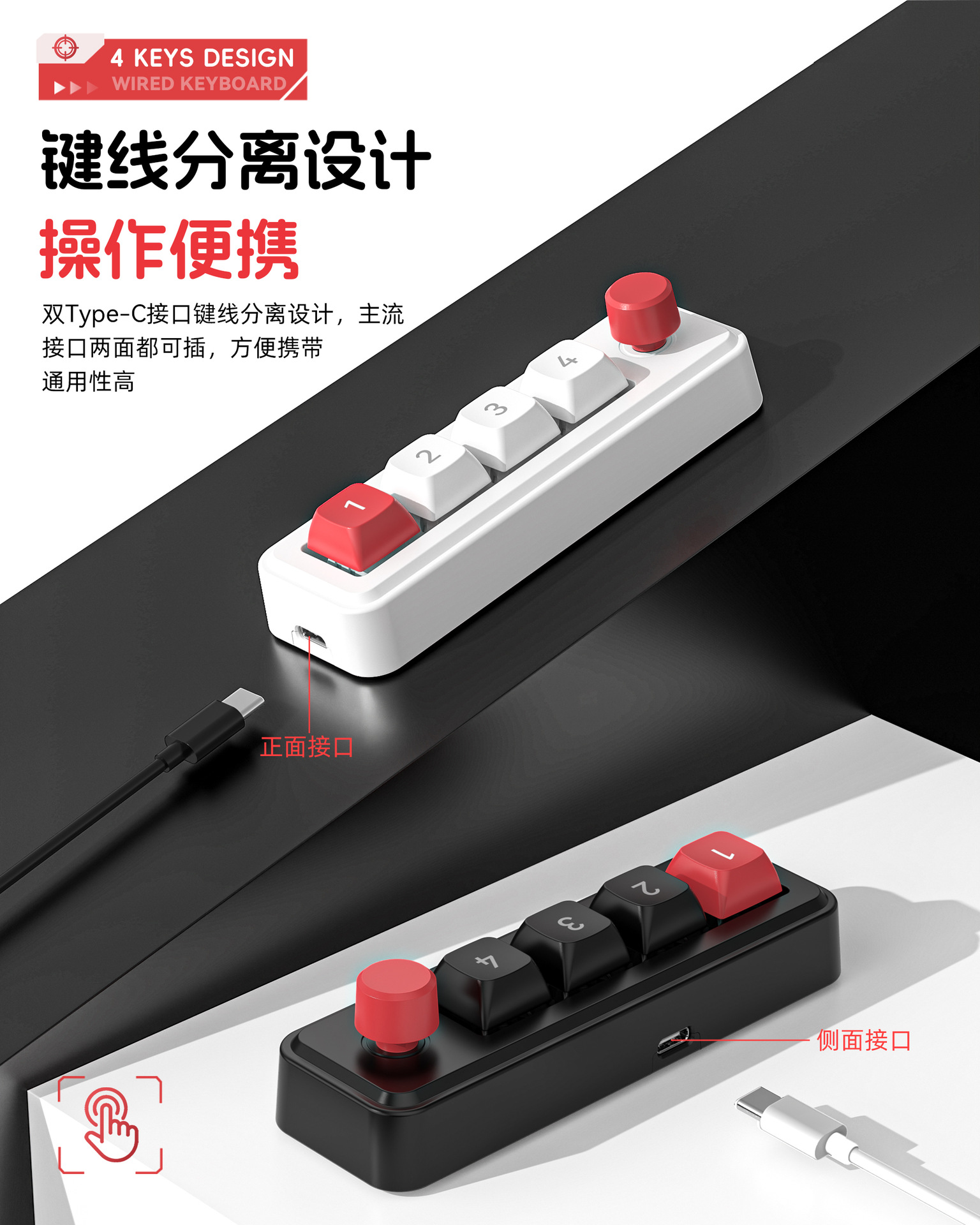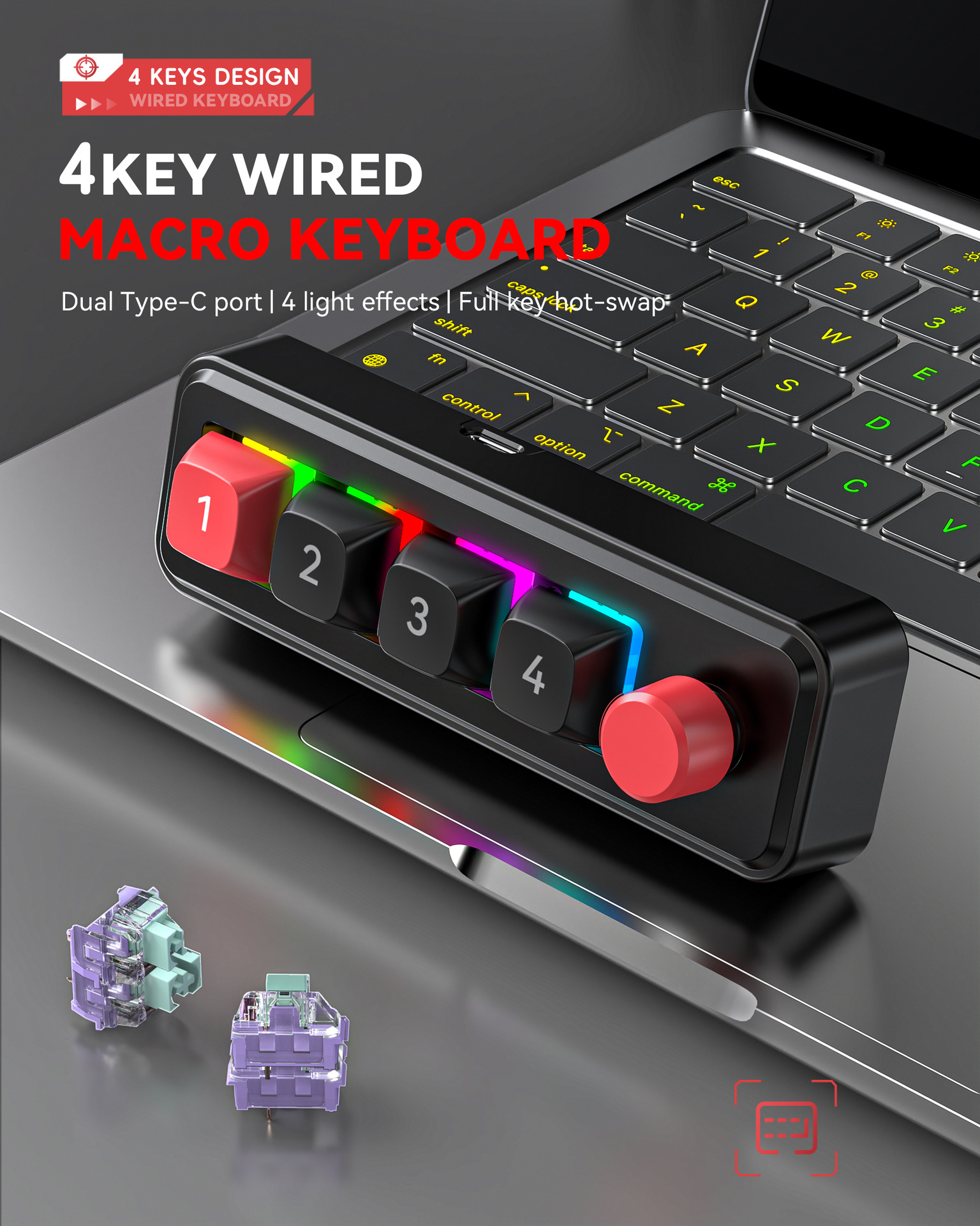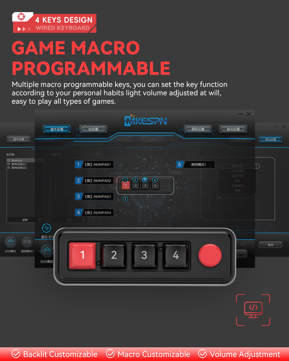 4键有线热插拔宏定义游戏机械小键盘源头厂家