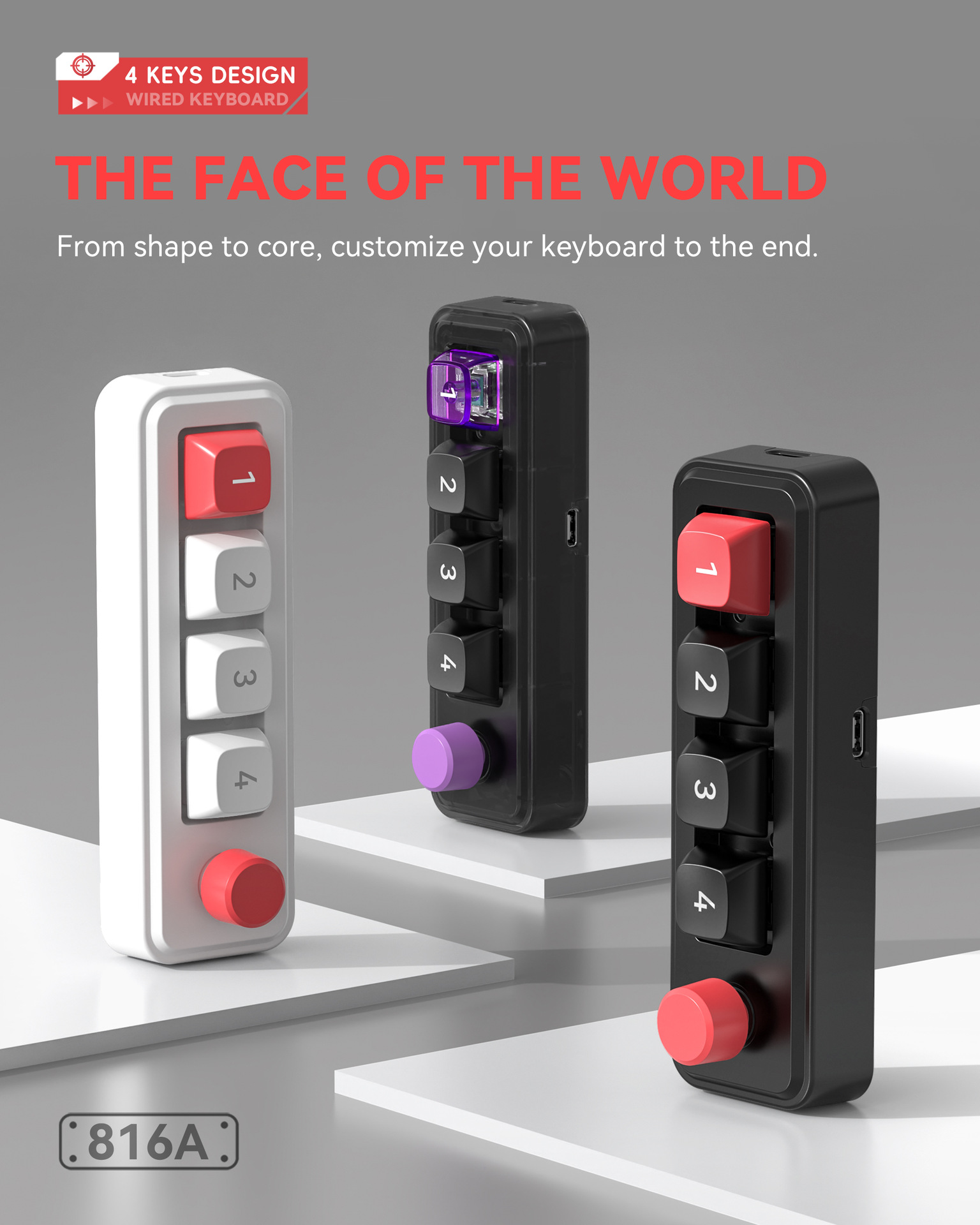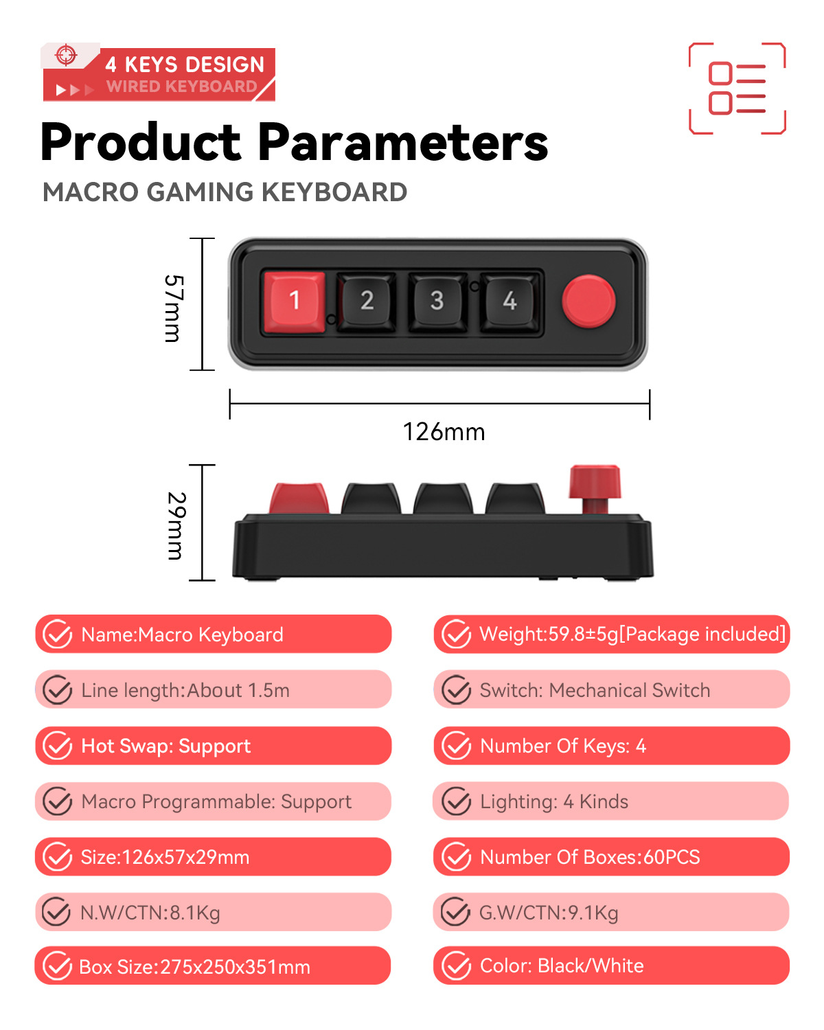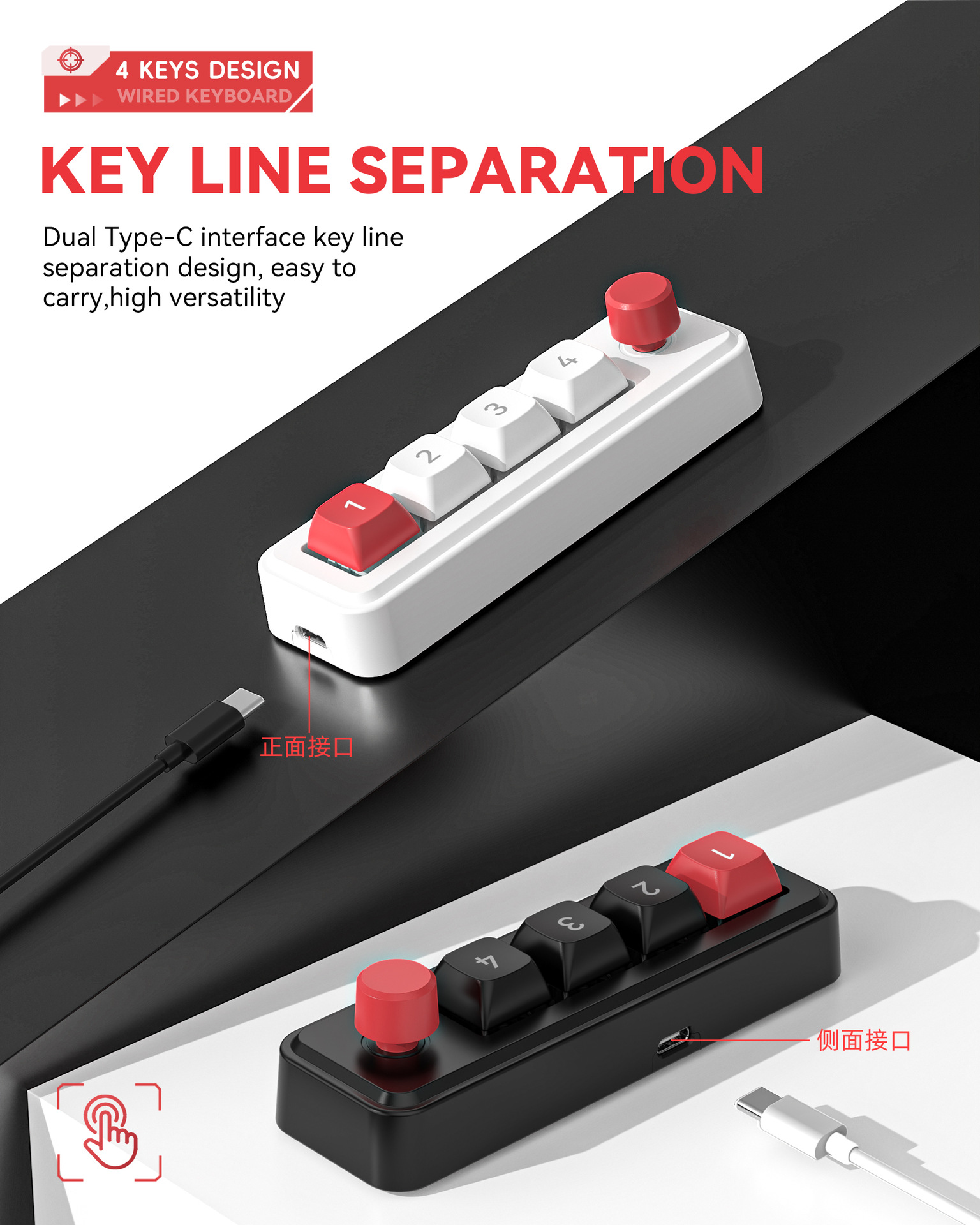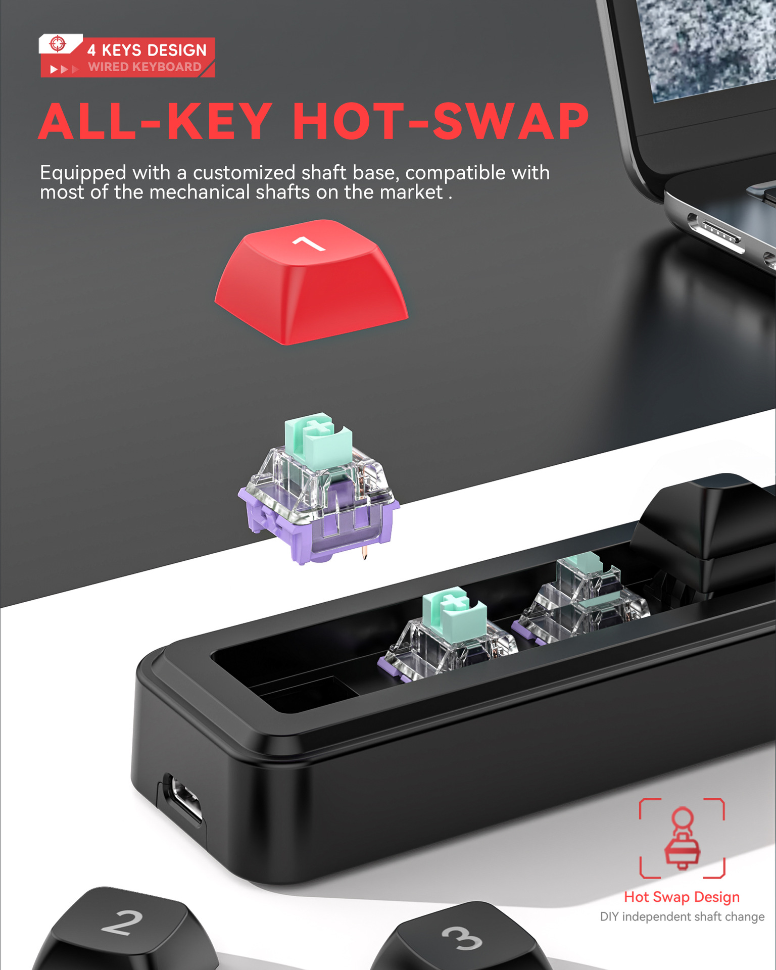 4键有线热插拔宏定义游戏机械小键盘源头厂家