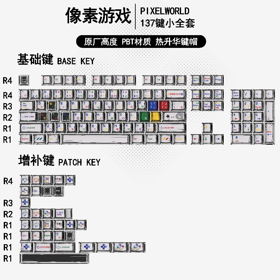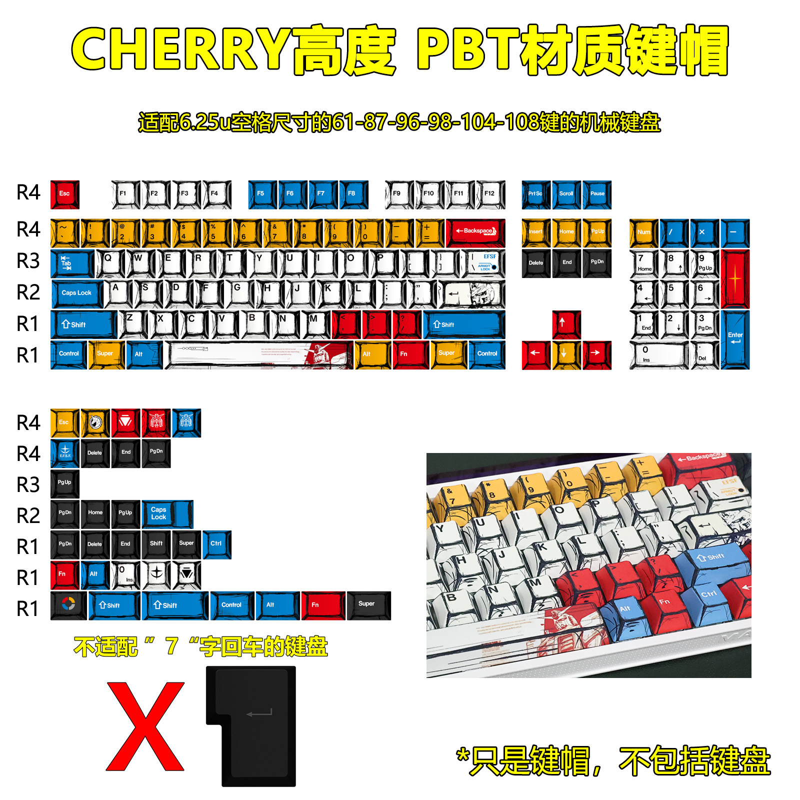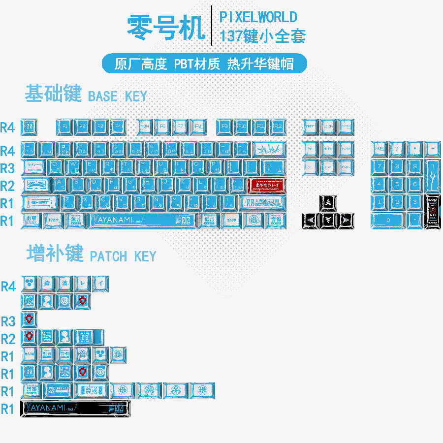 高达漫画百混灯键帽原厂高度136键全套经典简约机械键盘键帽键喵