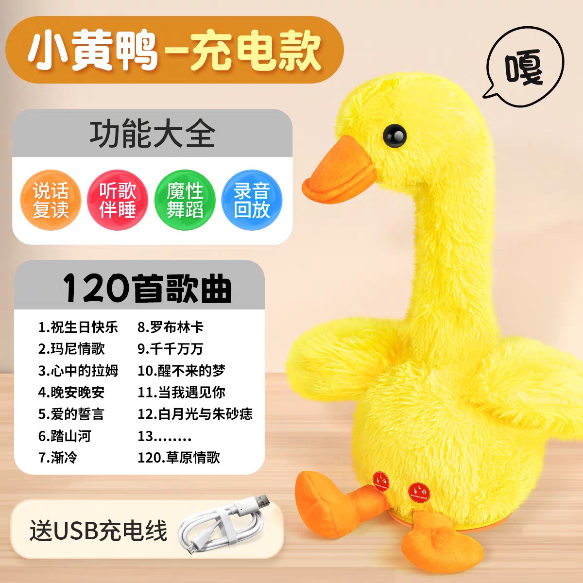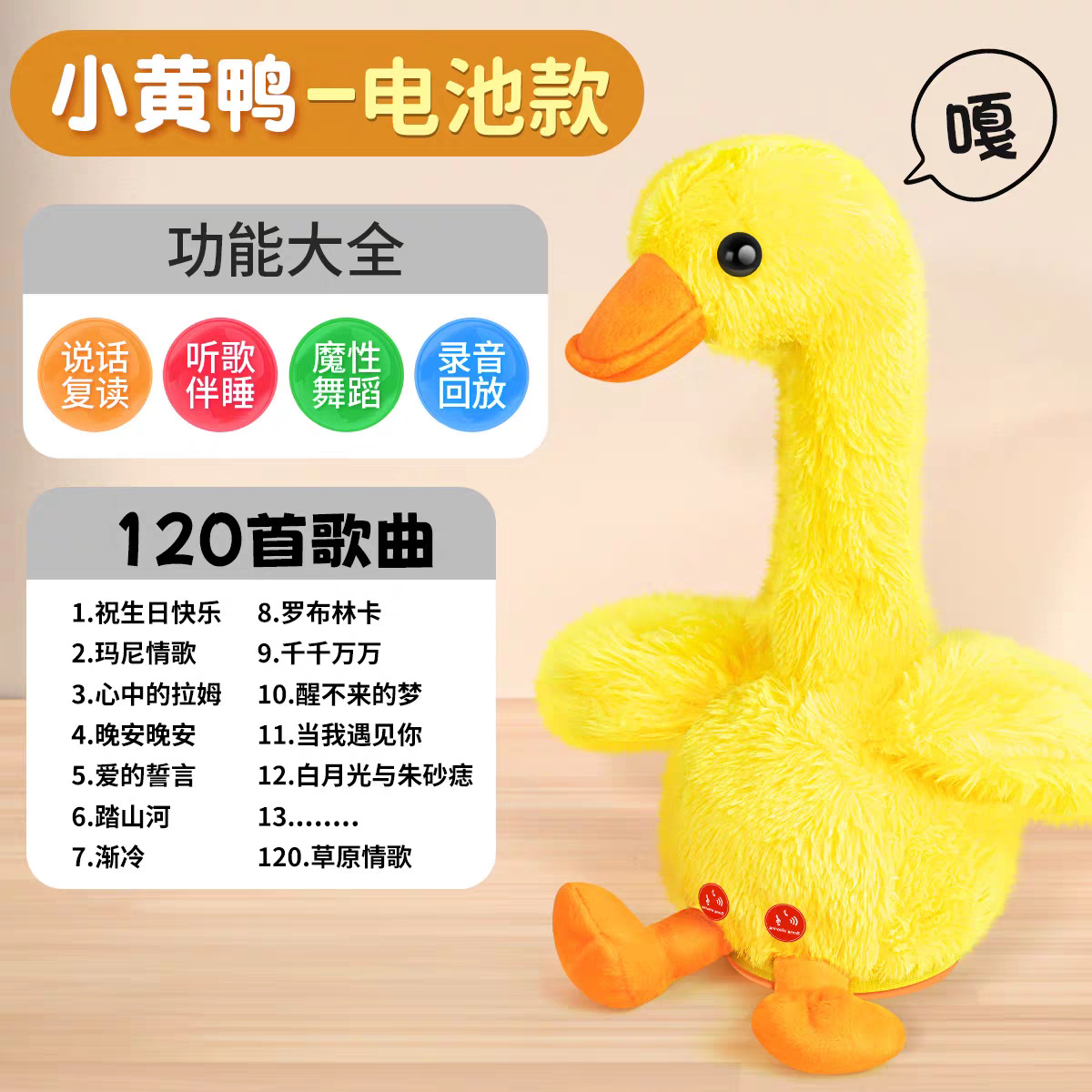 小黄鸭公仔毛绒玩具情人节宝宝学话哄娃神器会跳舞的复读鸭子玩偶