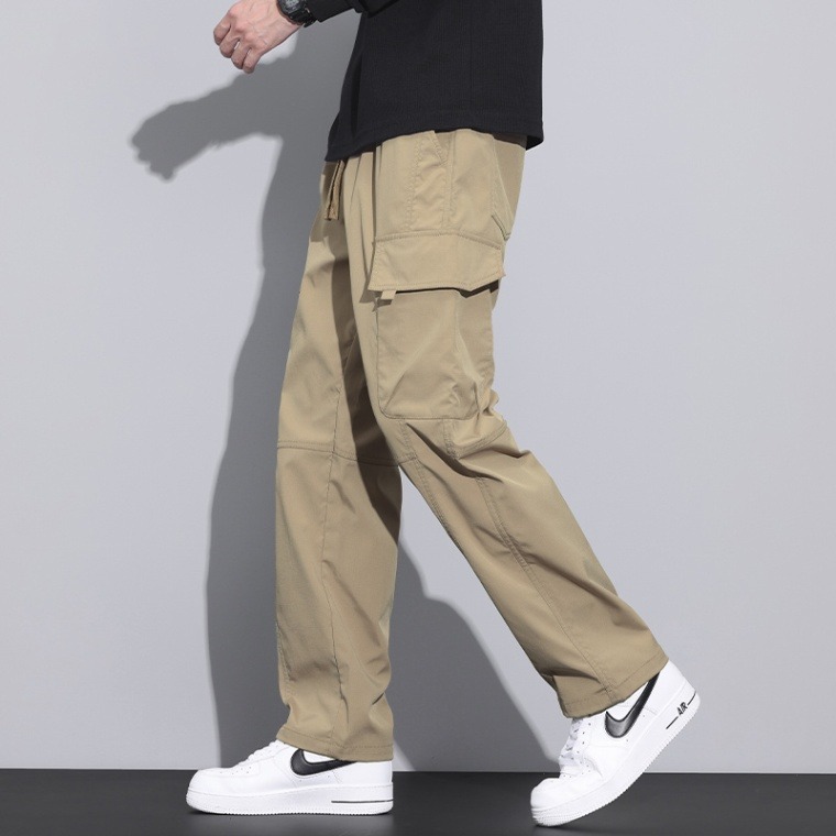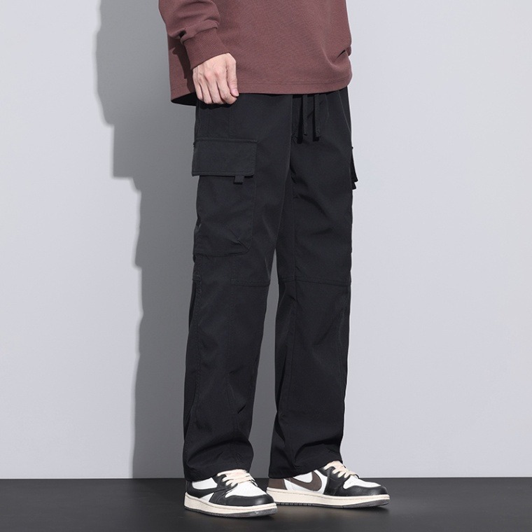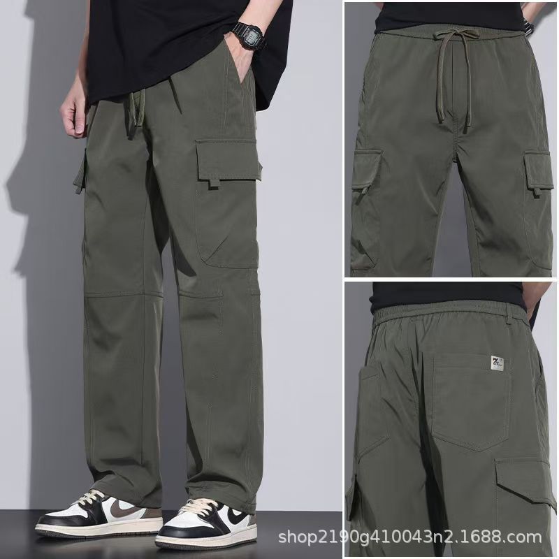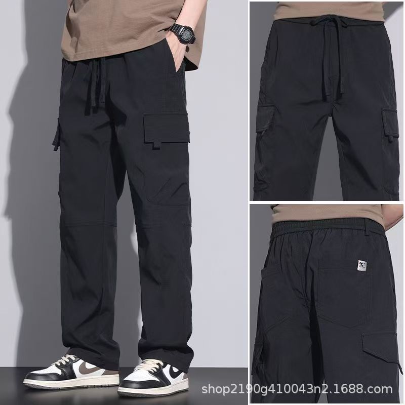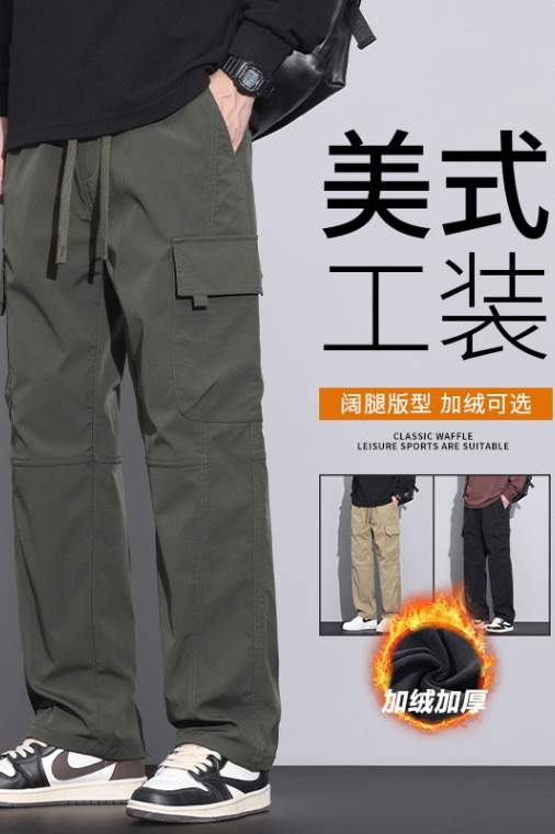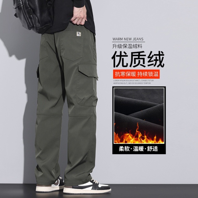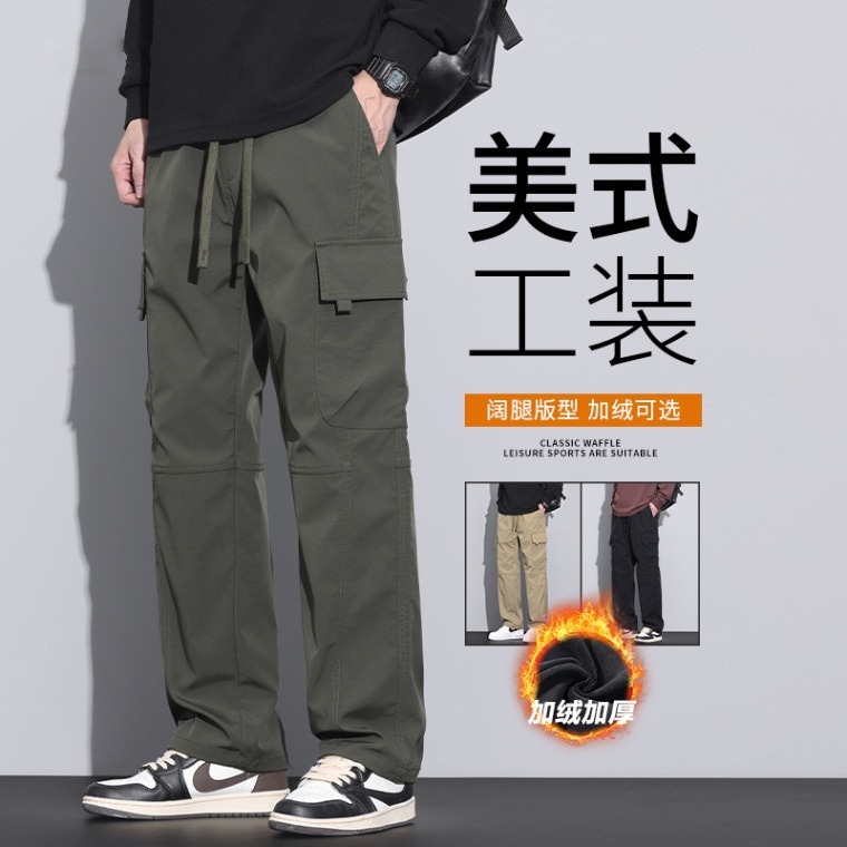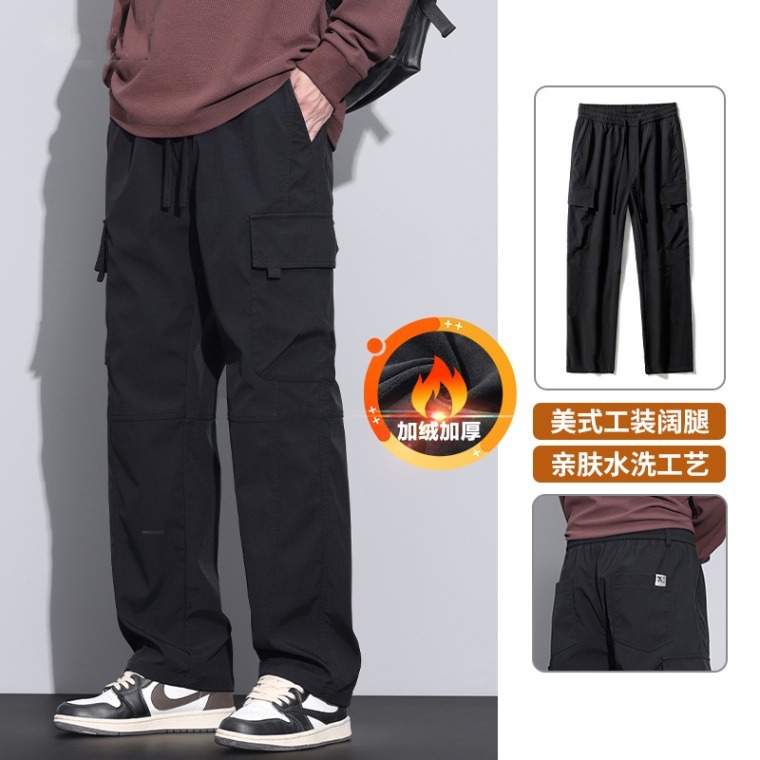 加绒裤子男冬季加厚保暖外穿冲锋裤宽松直筒运动松紧腰休闲工装裤