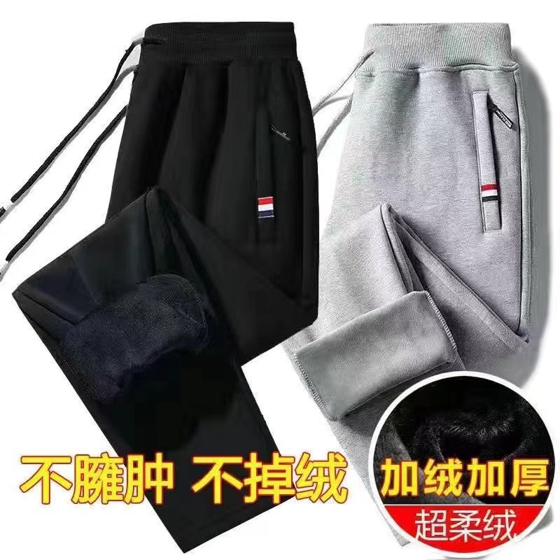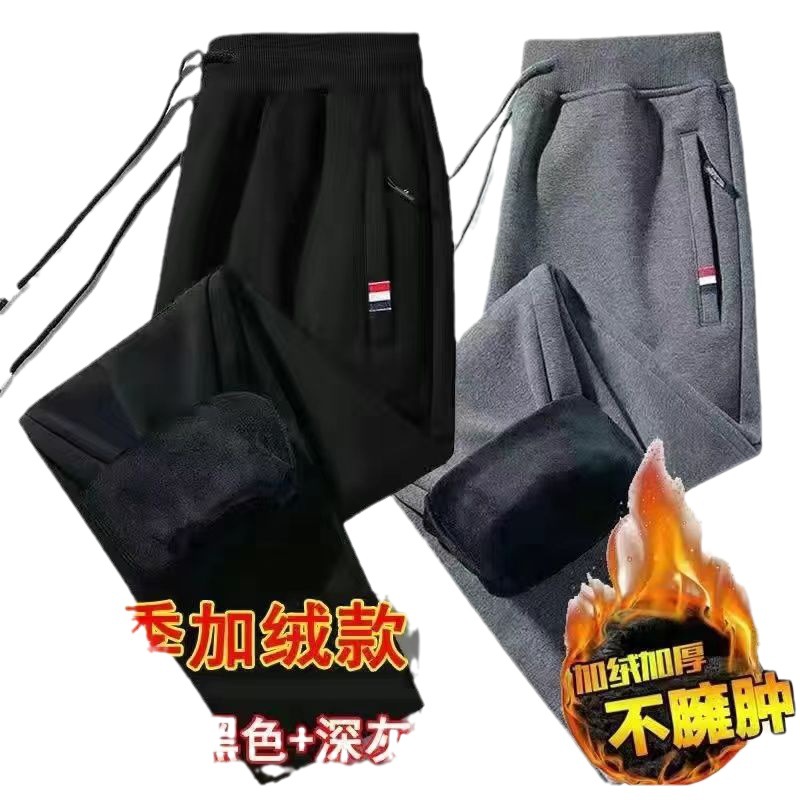 运动裤外穿男士加绒裤子秋冬季新款弹力休闲裤宽松大码保暖卫裤潮