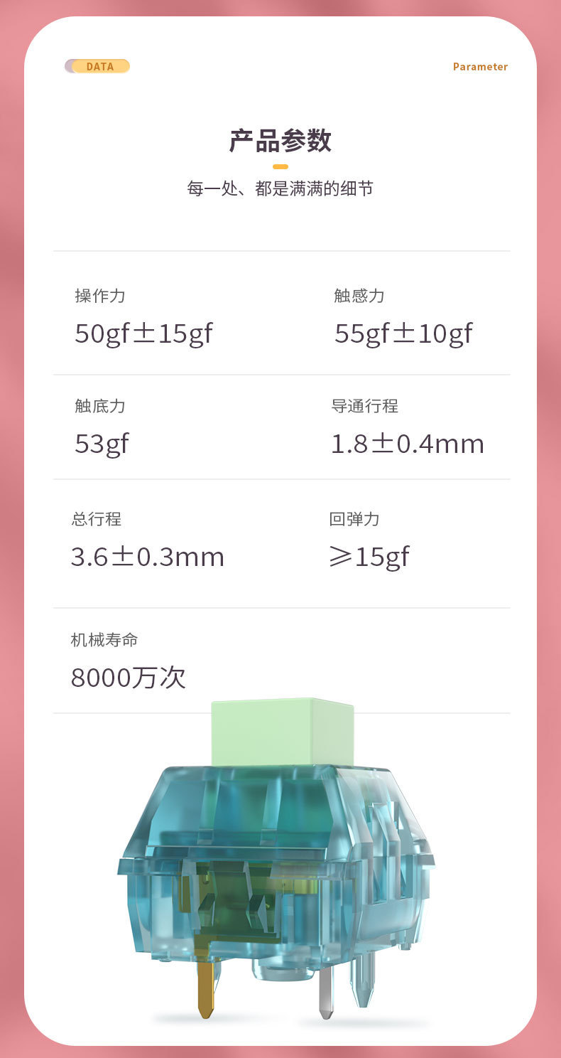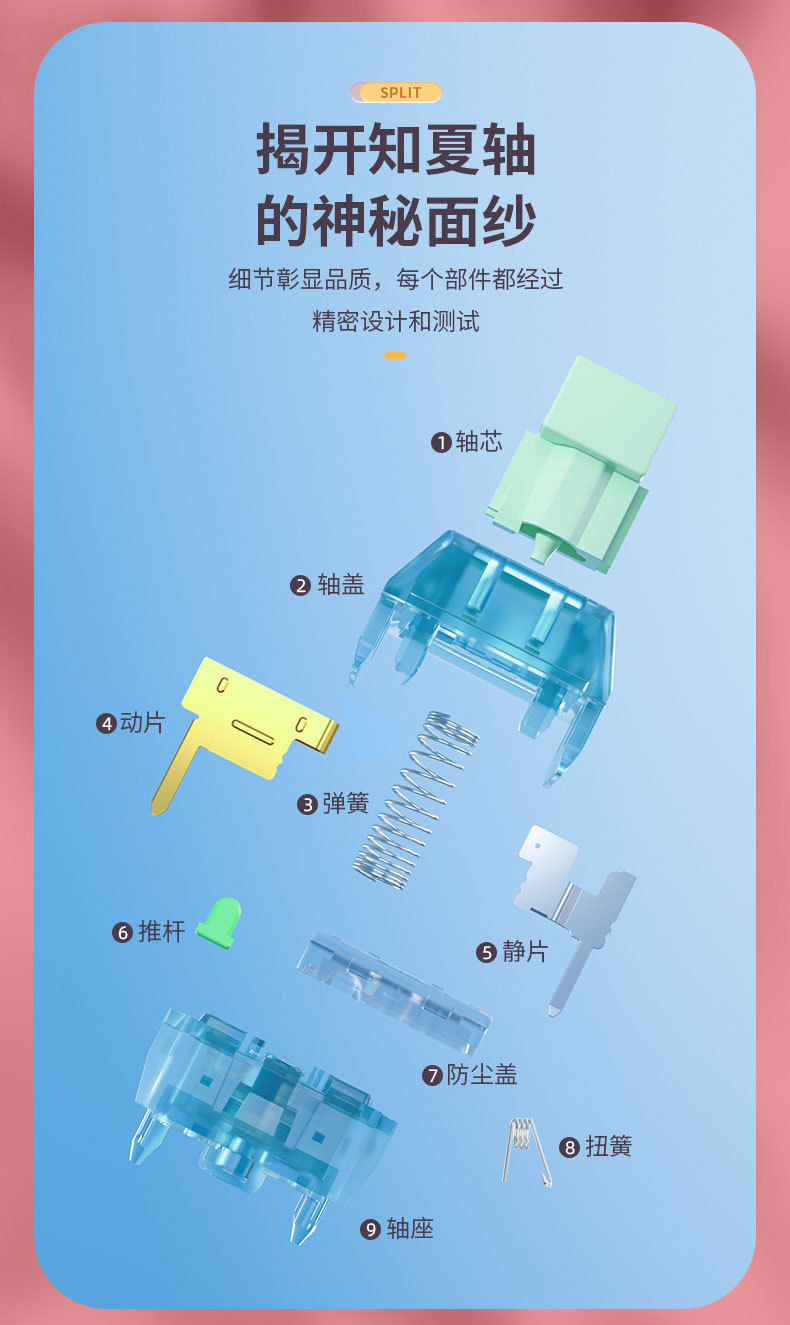 Kailh凯华BOX知夏清脆空灵段落热拔插客制化机械键盘类青轴5Pin脚