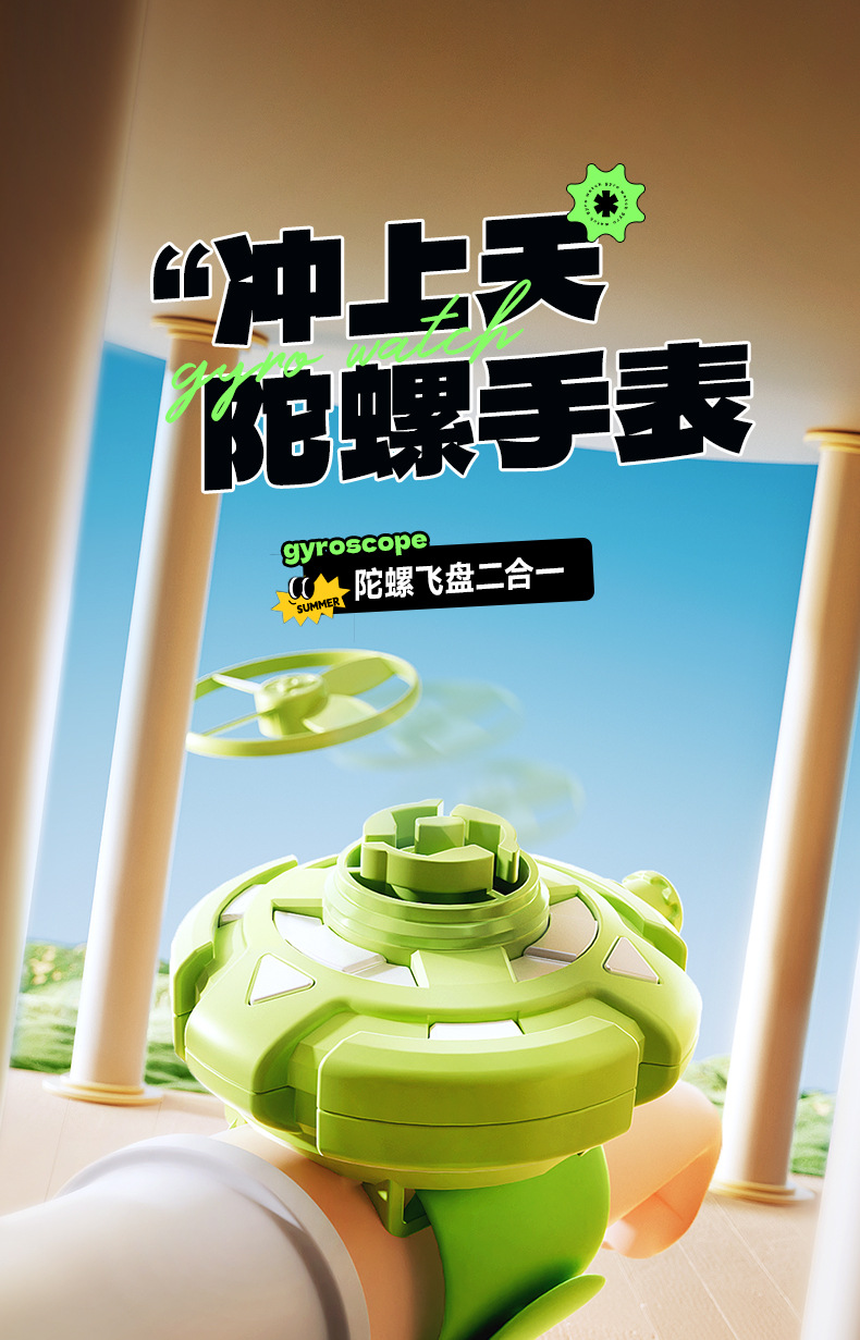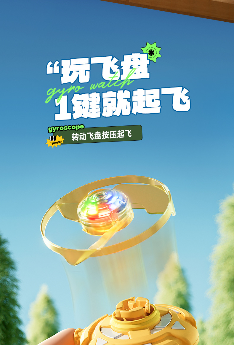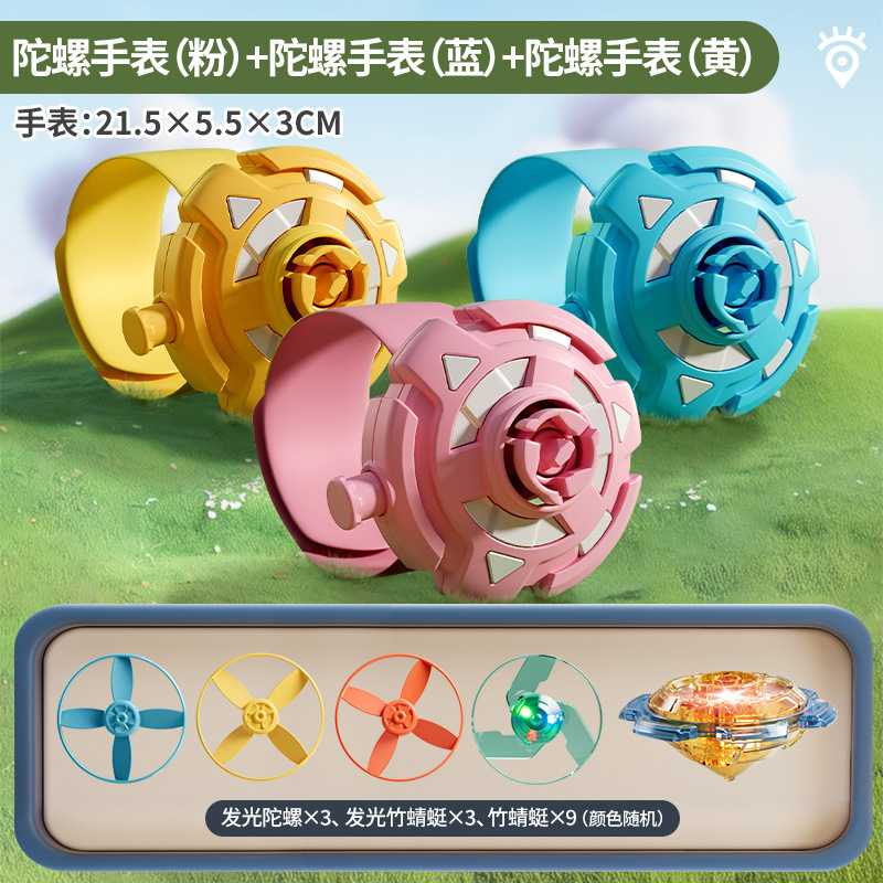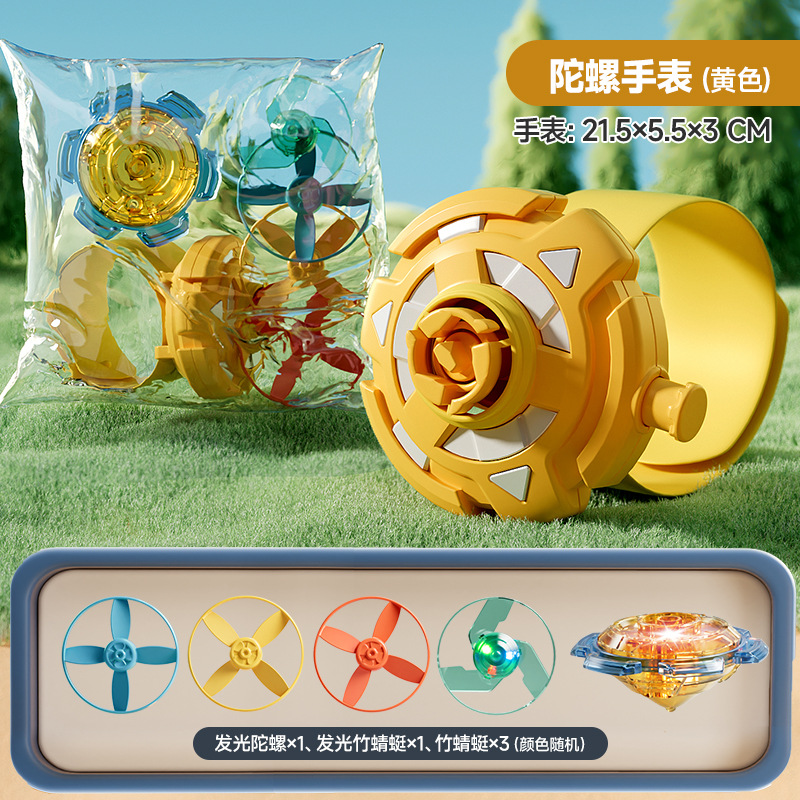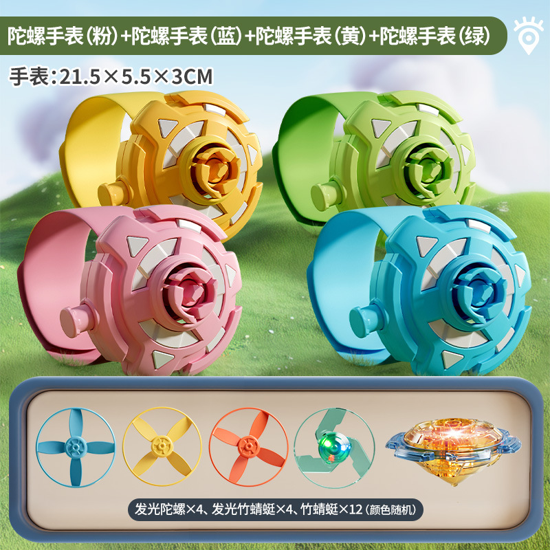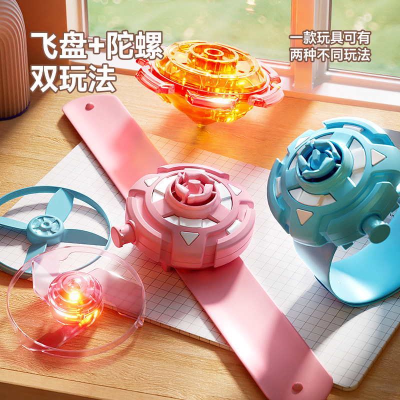 手表飞碟发射器弹射手环旋转飞盘夜光陀螺竹蜻蜓玩具儿童多人对战