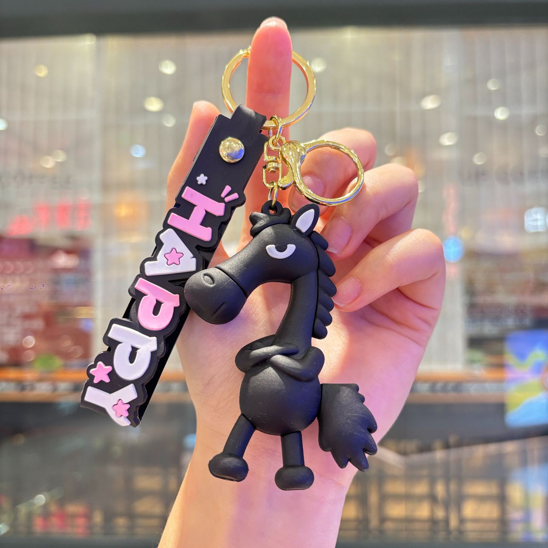 跨境爆款马年吉祥物天选高冷黑马钥匙扣公仔挂件情侣包包挂饰礼品