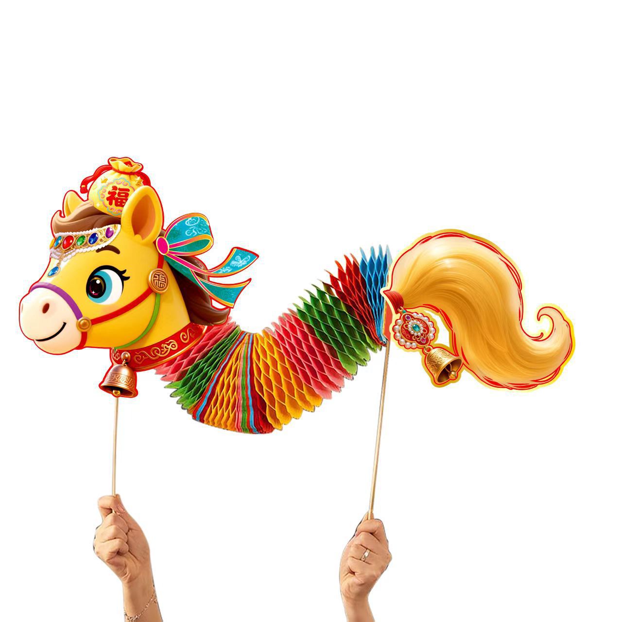 2026新款马年装饰手提蜂窝舞龙马剪纸挂件过新年元旦春节儿童礼物