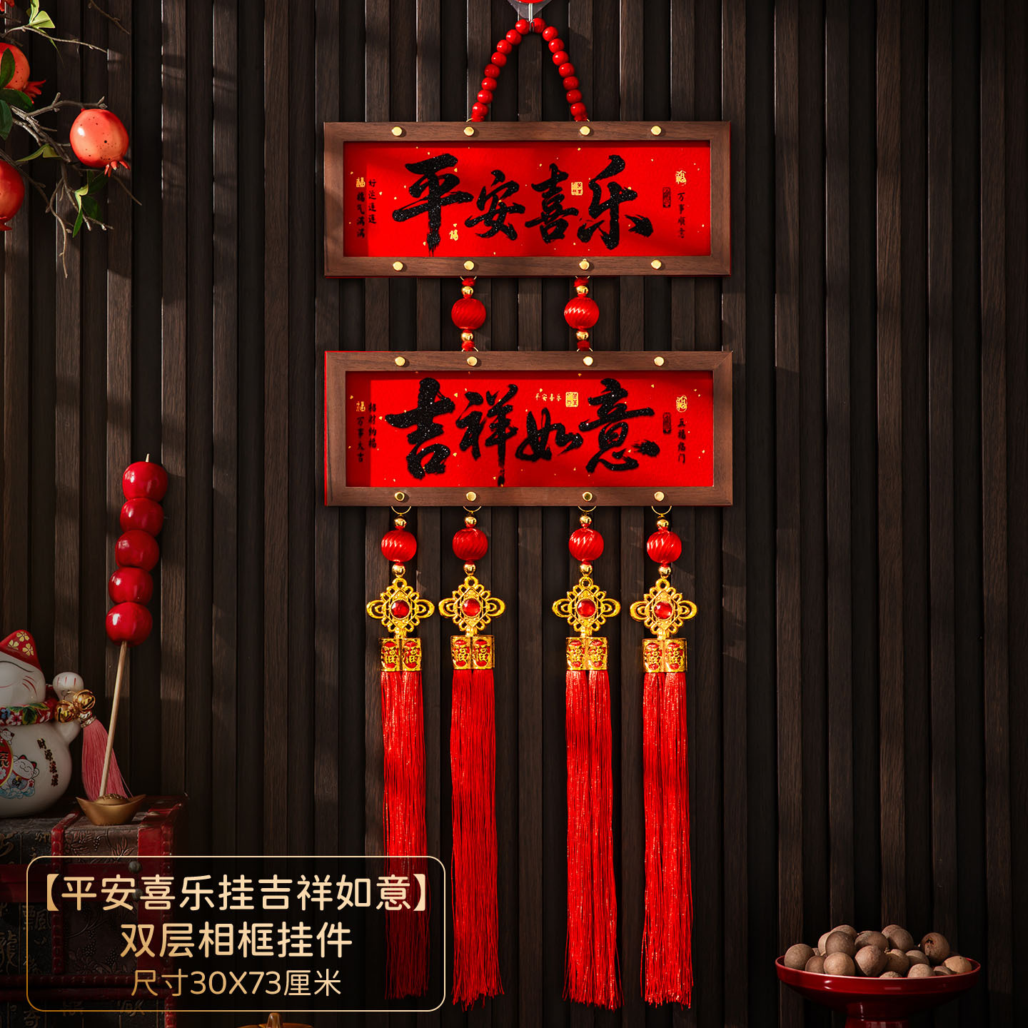 马年新年春节木挂件客厅玄关挂饰商场物业户外树木布置元旦装饰