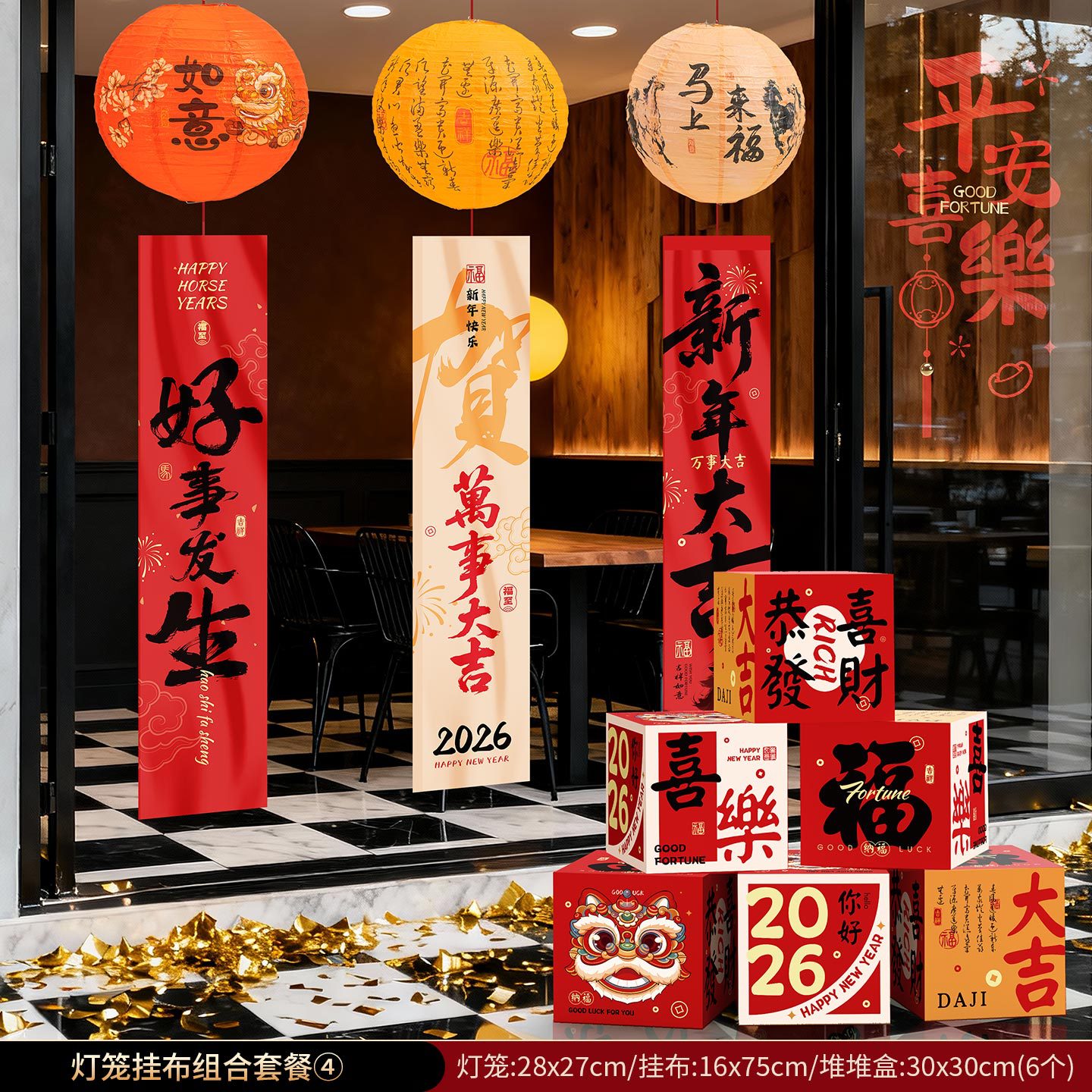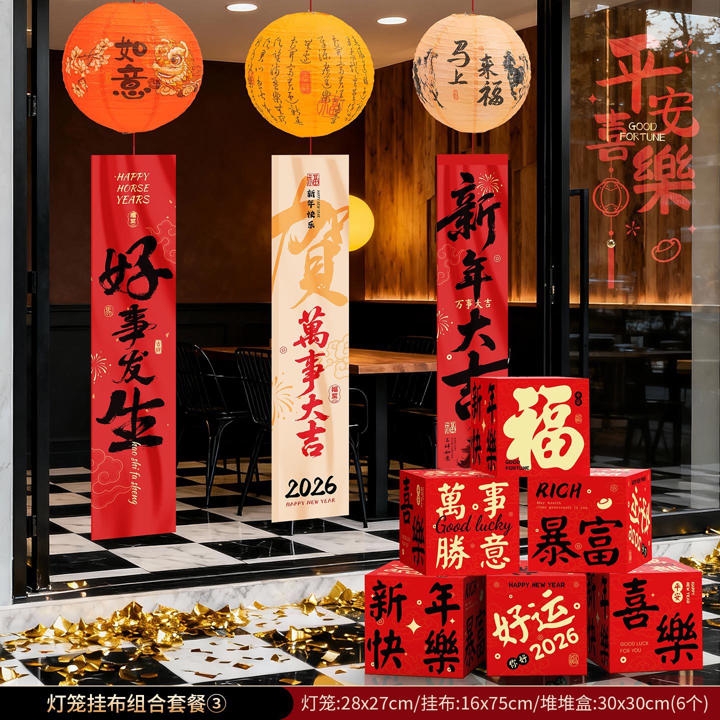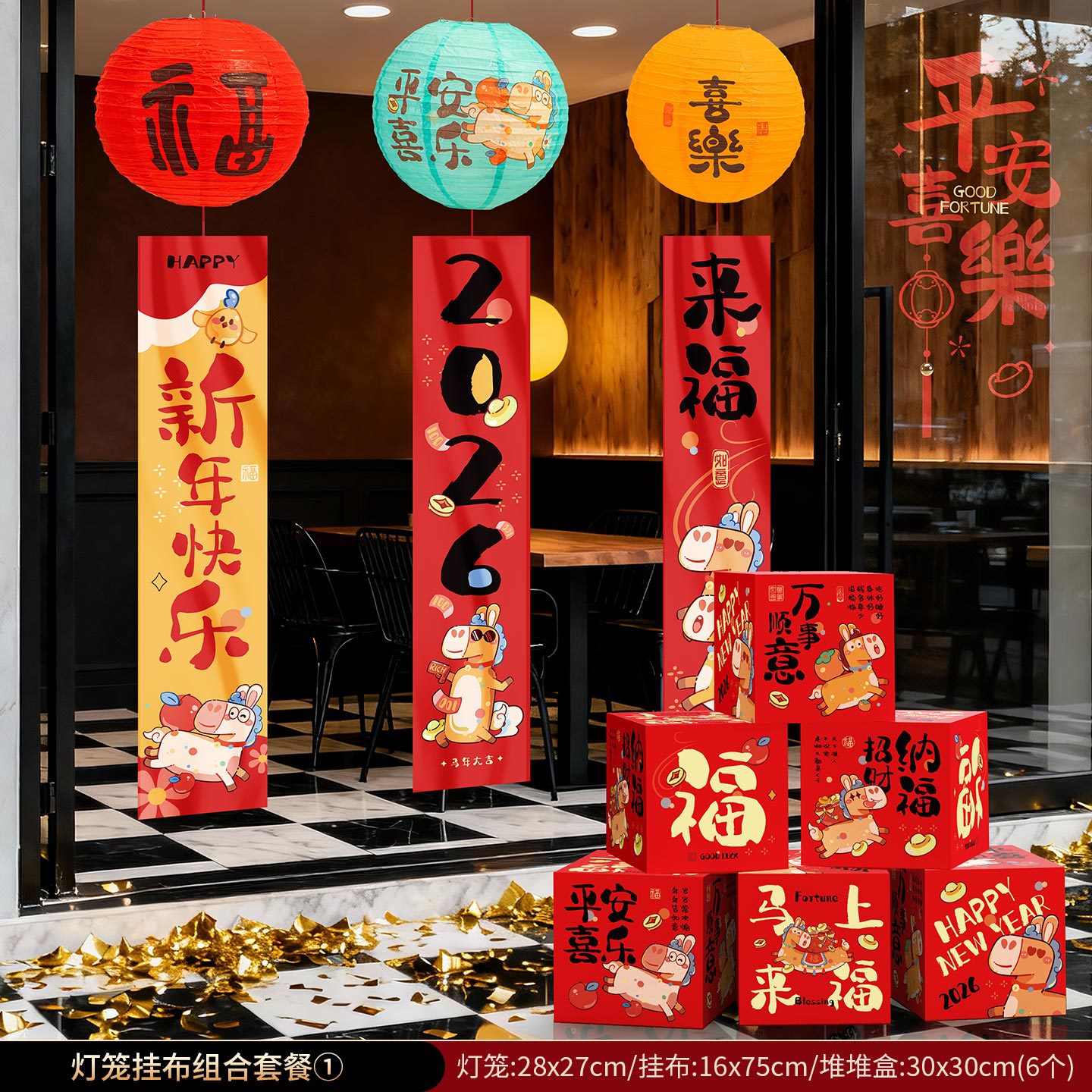 2026马年装饰条幅新年挂件灯笼堆盒春节商场背景墙过年氛围布置品