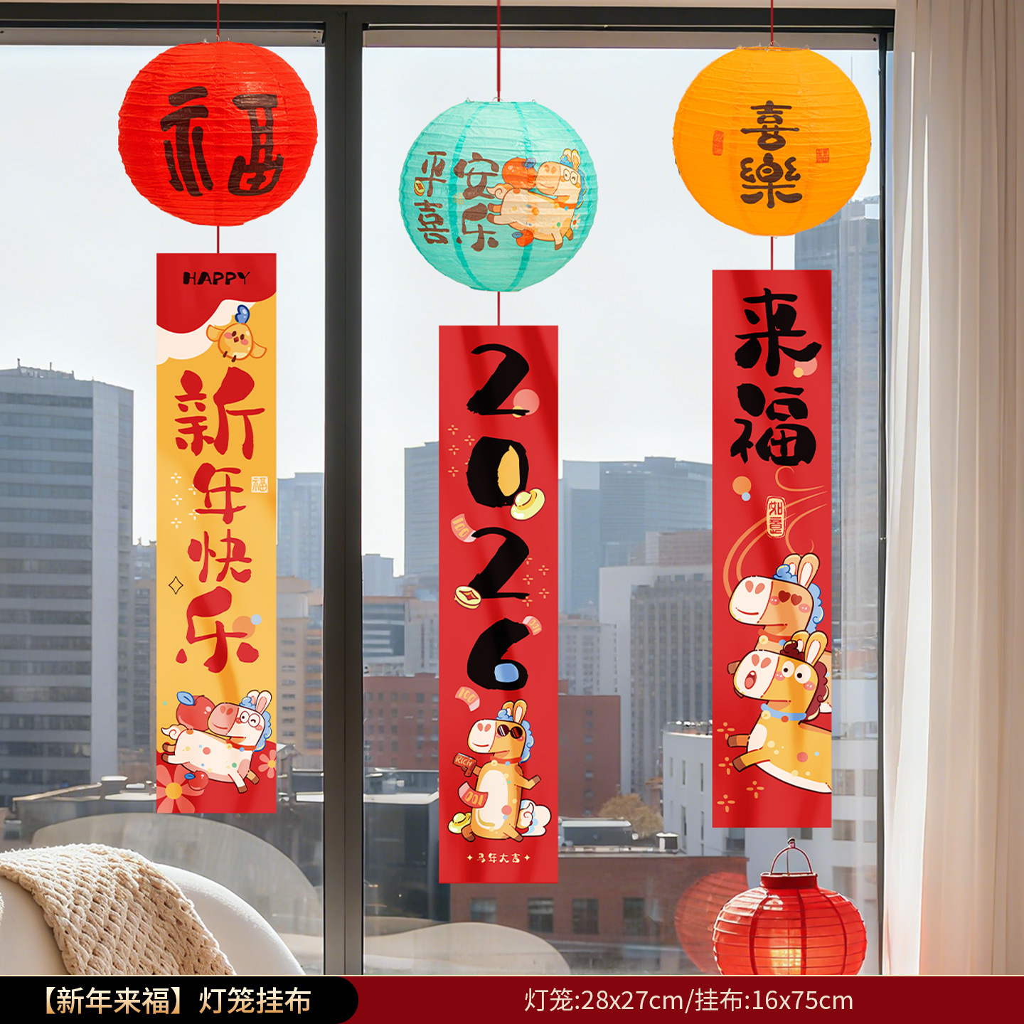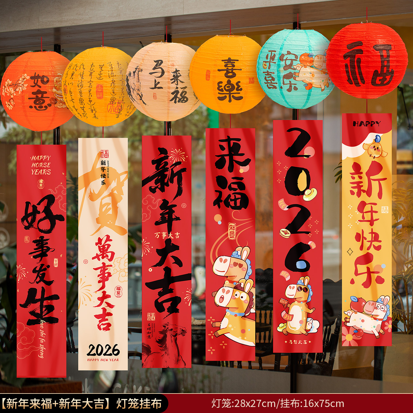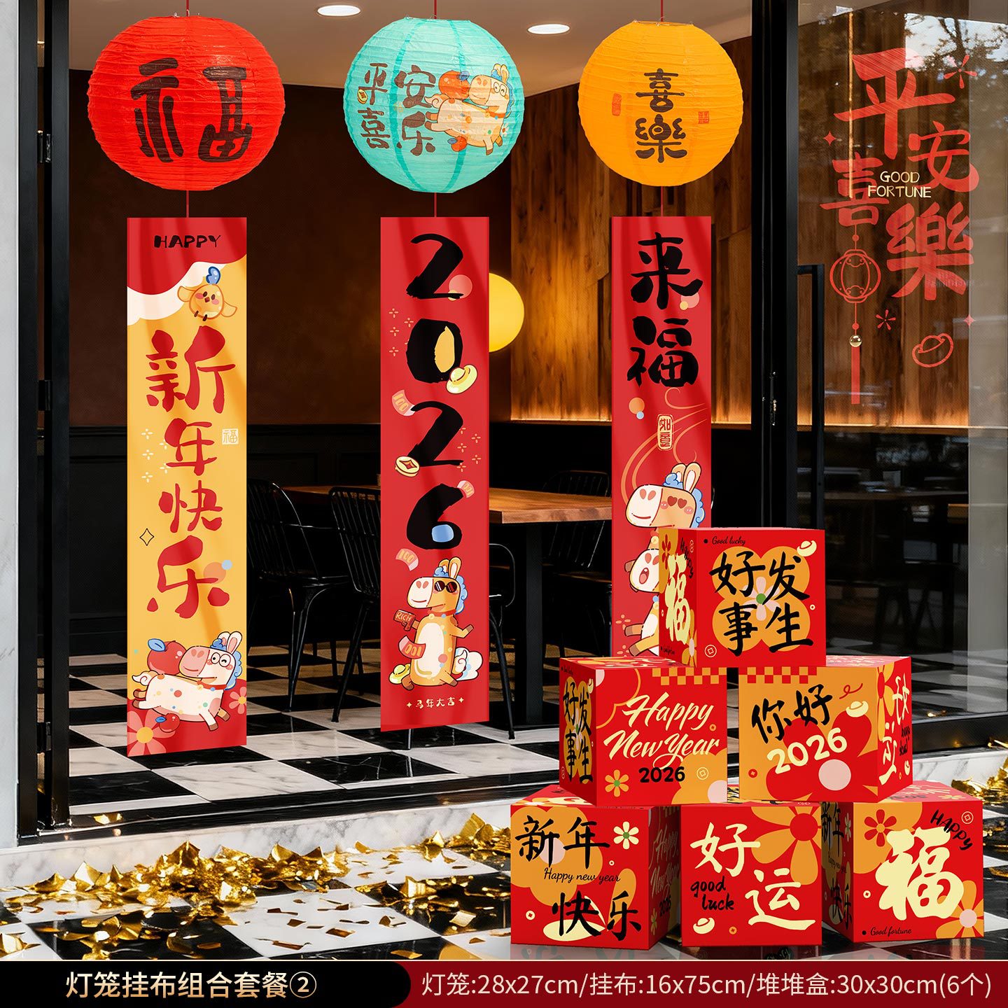 2026马年装饰条幅新年挂件灯笼堆盒春节商场背景墙过年氛围布置品