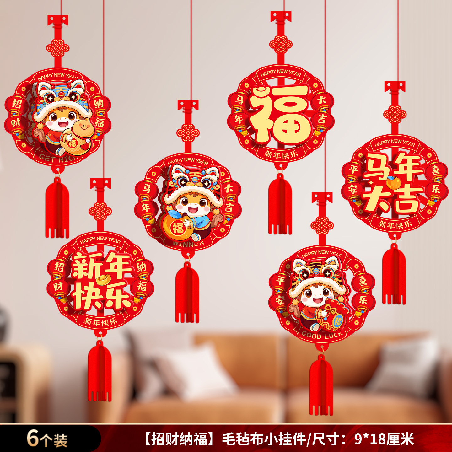 2026马年新款新年春节挂饰福字灯笼串店铺装饰用品场景布置小挂件