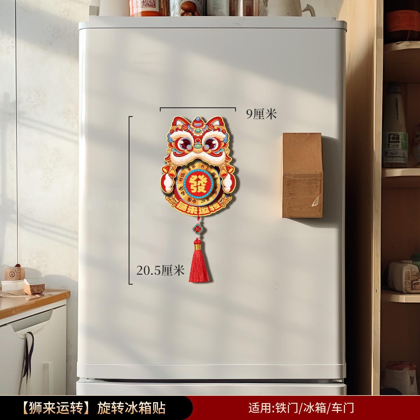 2026旋转醒狮立体冰箱贴新款新年春节过年磁吸福字挂件氛围装饰