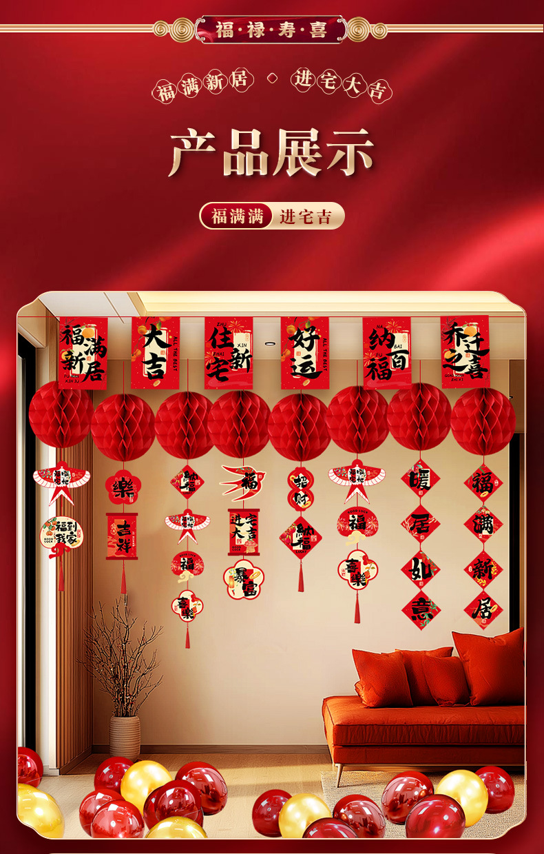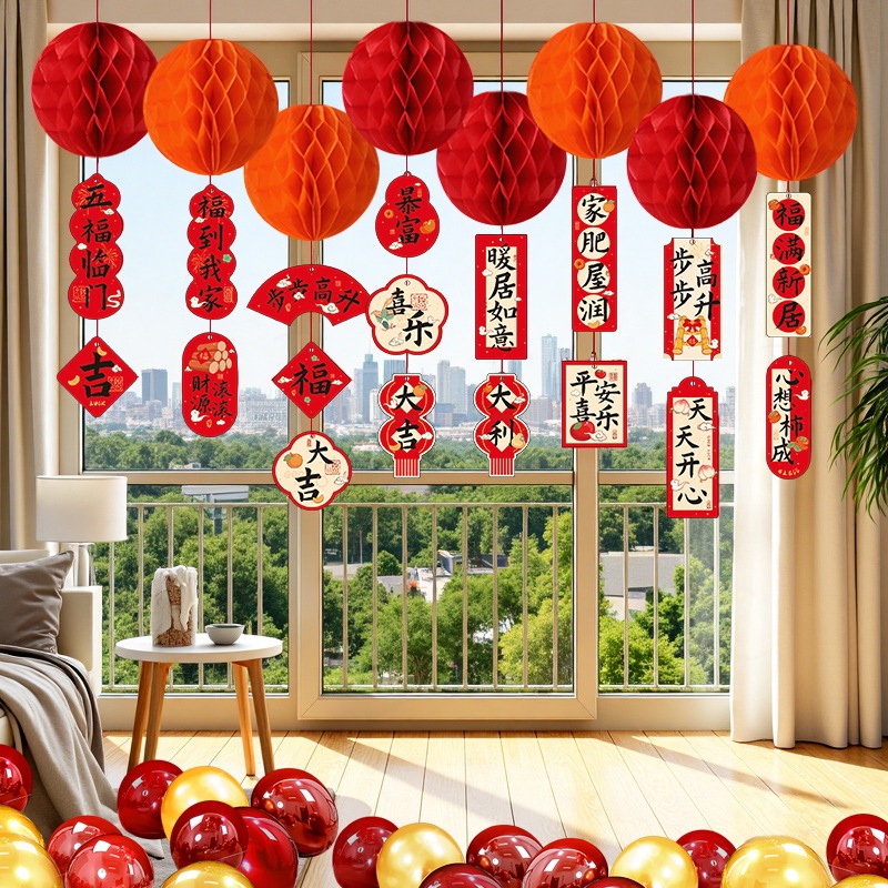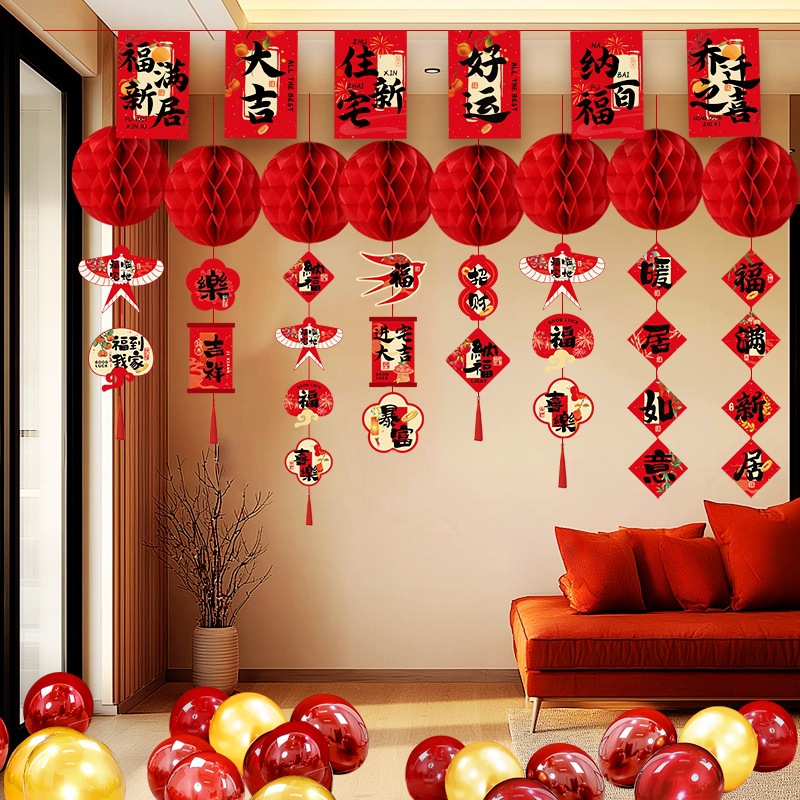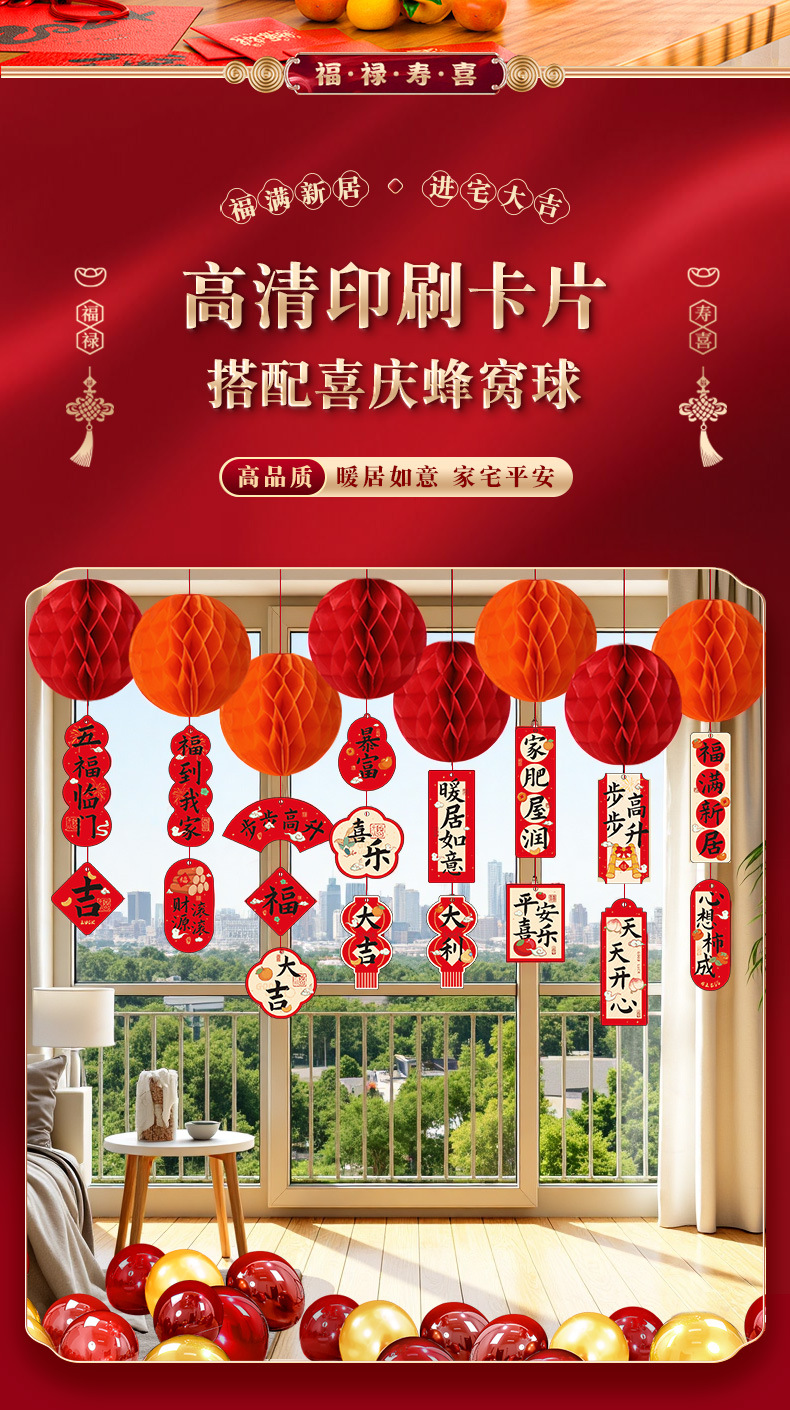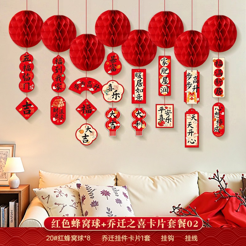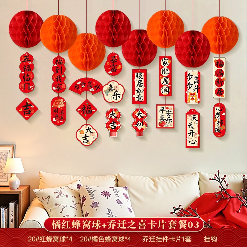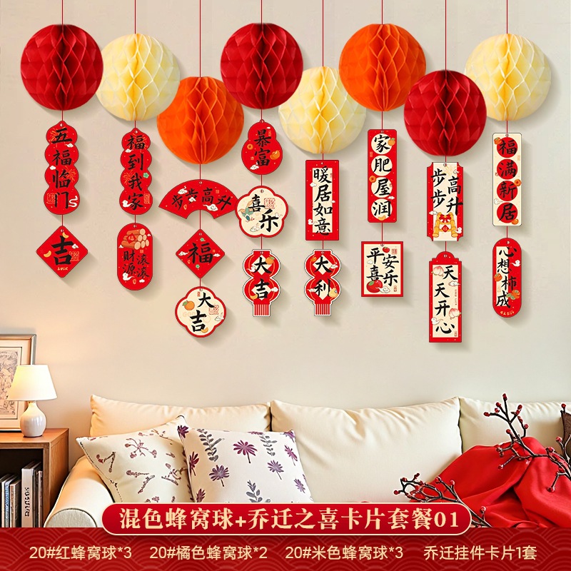 2025装饰蜂窝球乔迁之喜灯笼挂件新居新房入宅搬家氛围仪式布置用