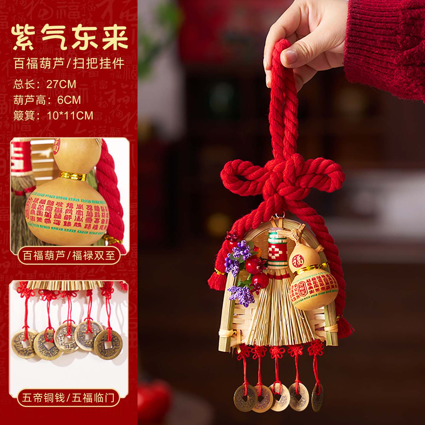 2026马年挂饰万字结簸箕门挂氛围场景布置新春节门把手挂件装饰品