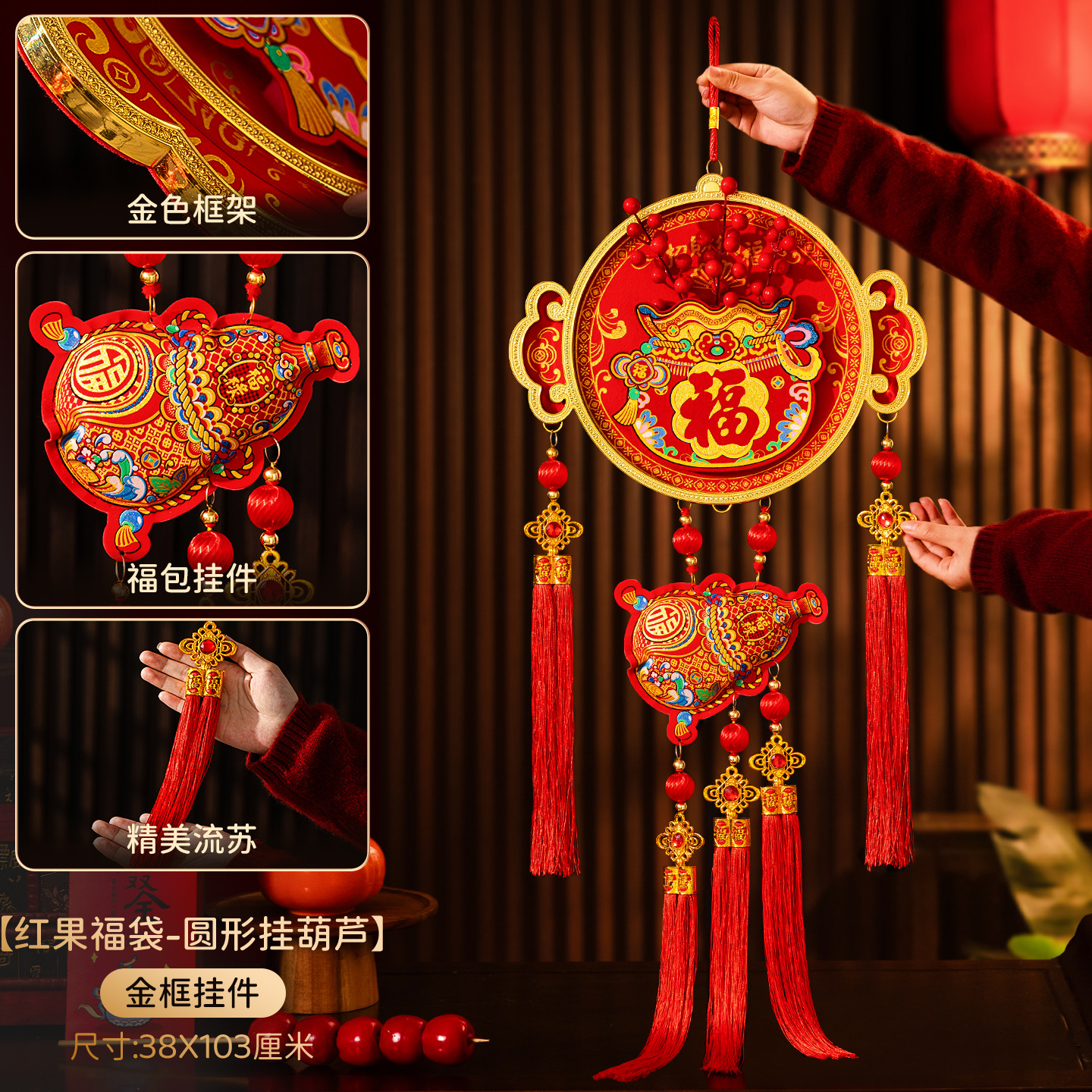 2026新年新款福字挂件春节客厅玄关创意红果福禄挂饰过年家用装饰
