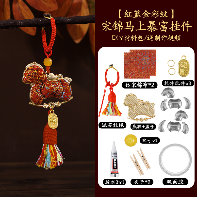 马年宋锦小马挂件diy手工成品材料包马上有钱挂饰吊坠活动礼品