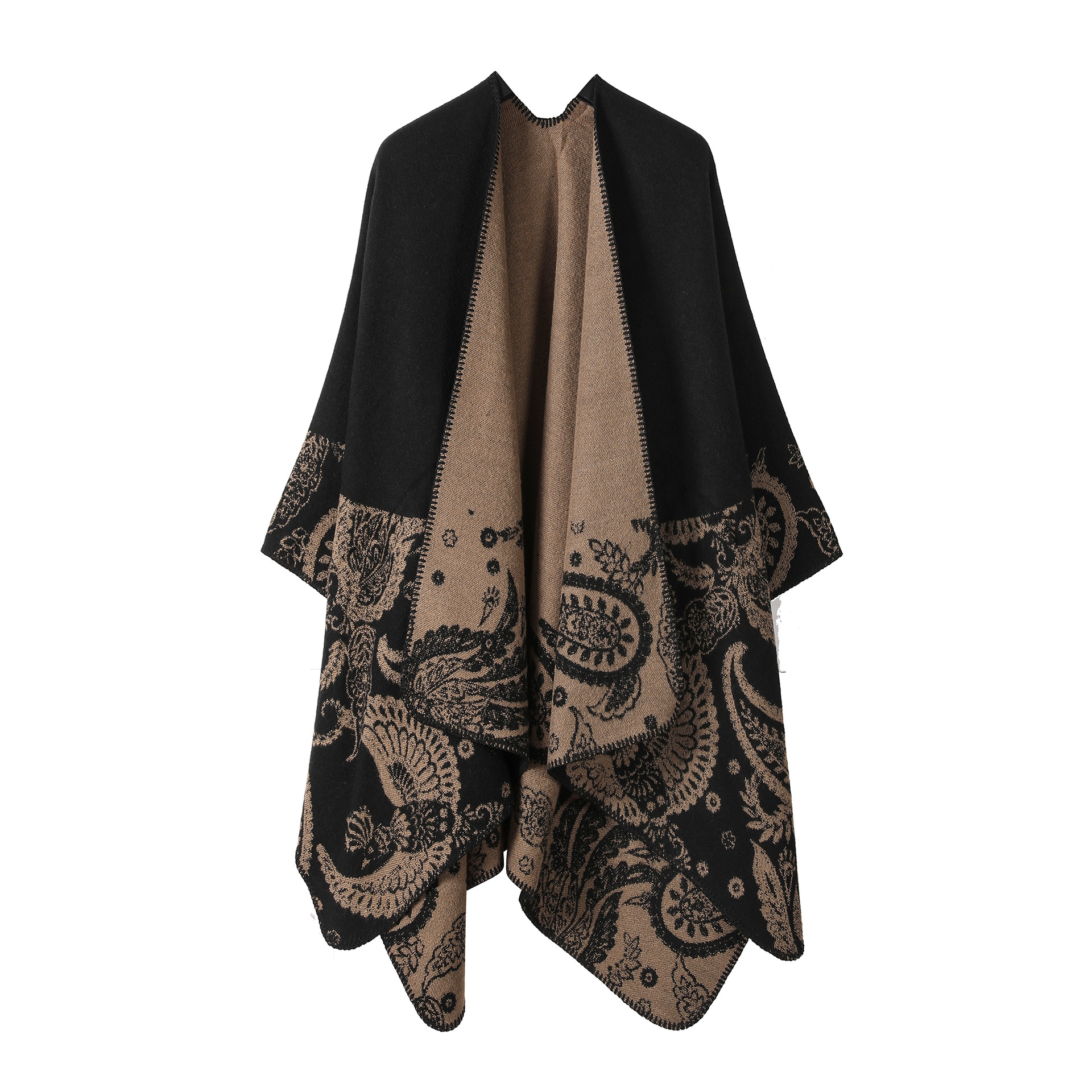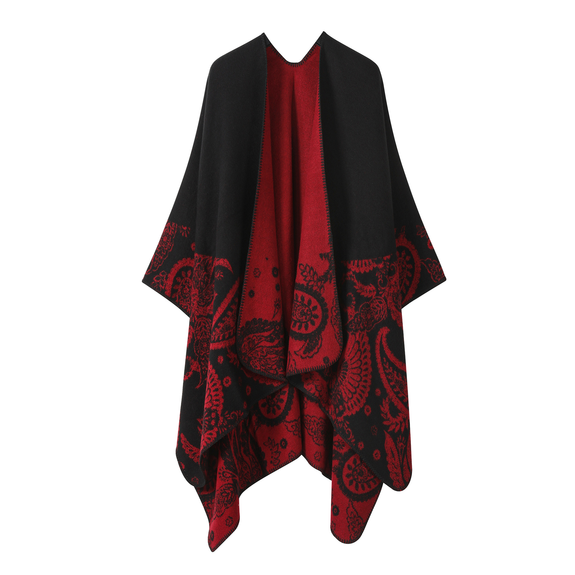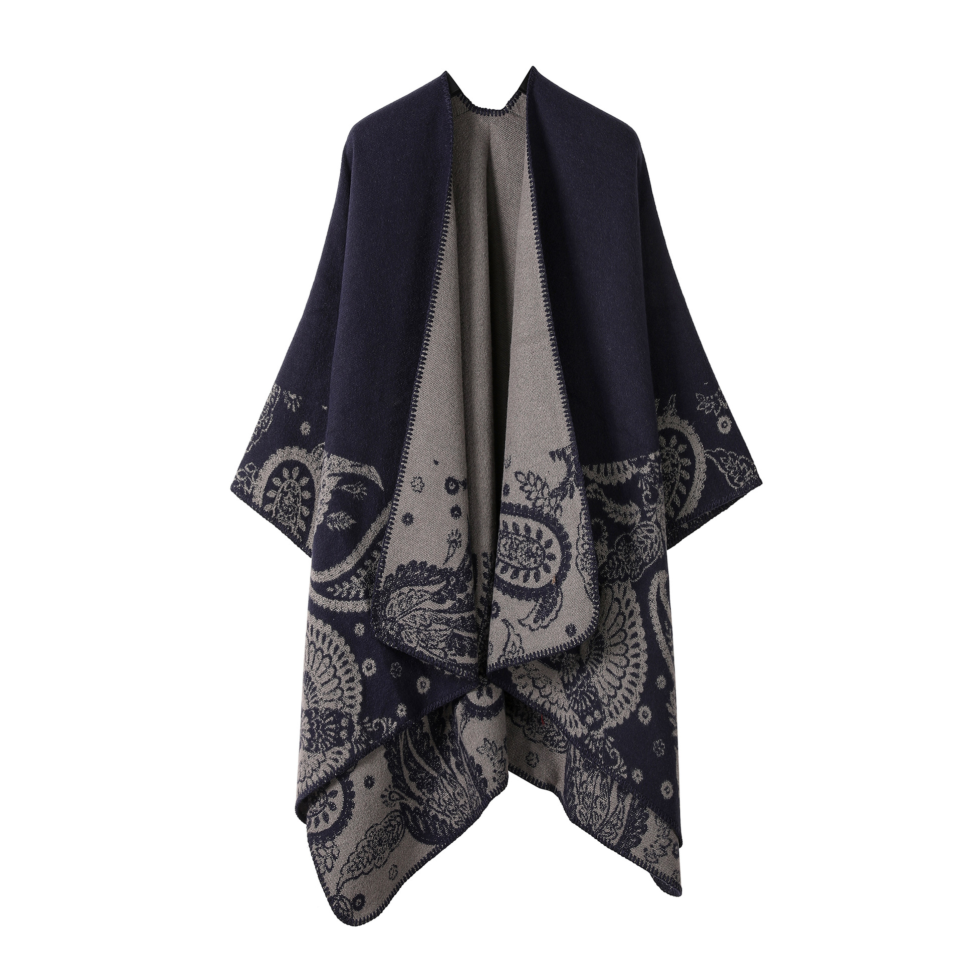 厂家现货批发女士开叉斗篷披肩古典风格双面流苏旅游保暖披风新款