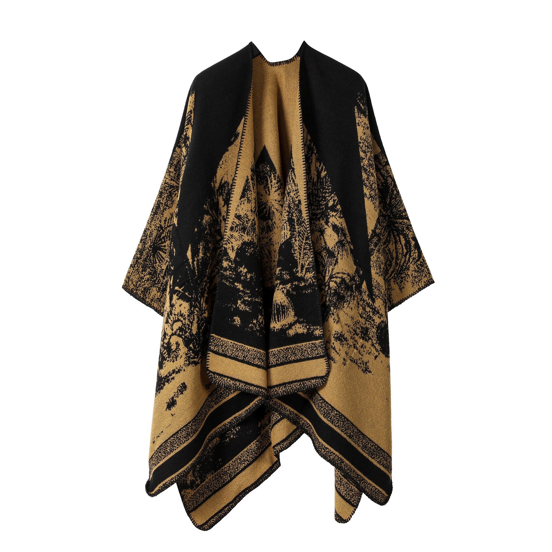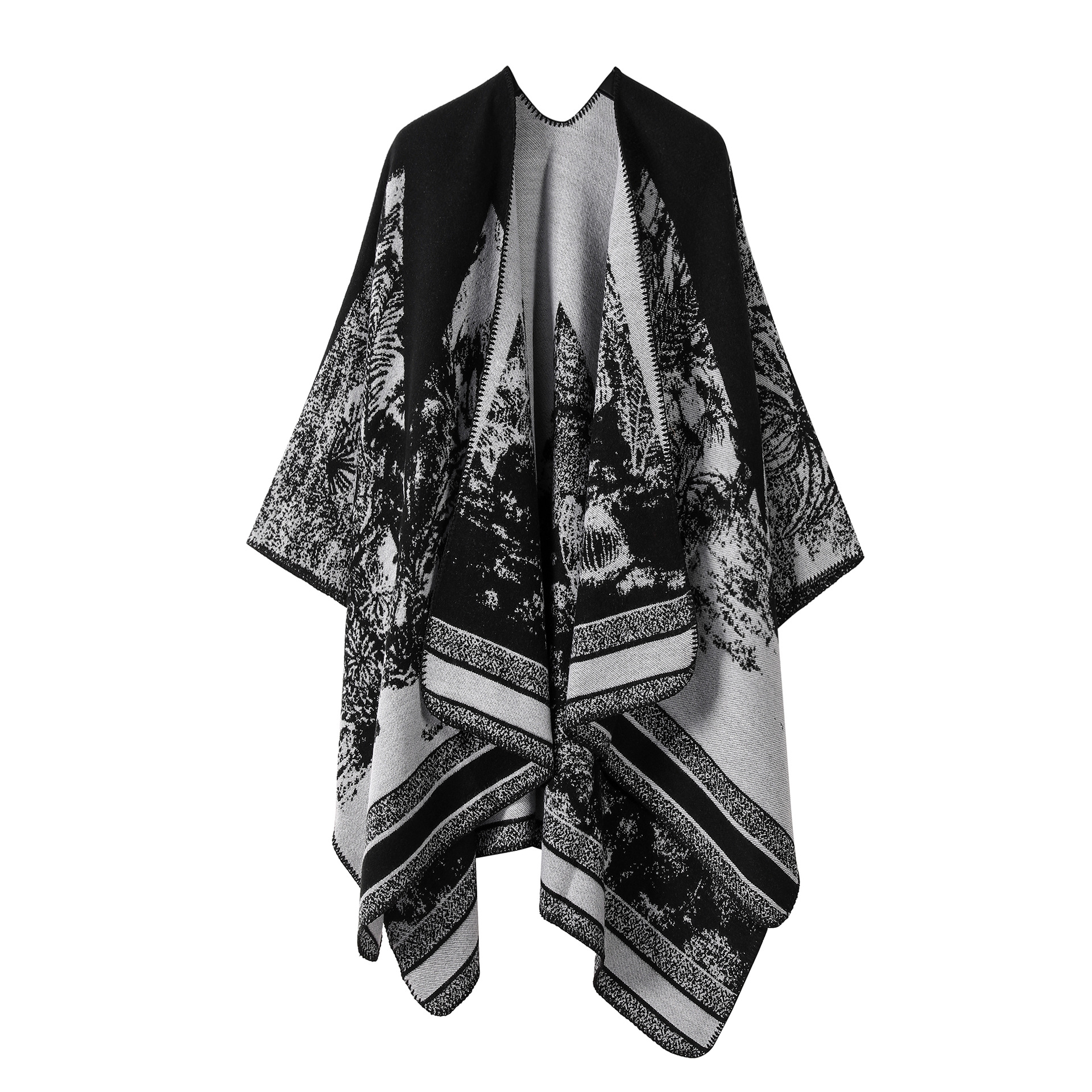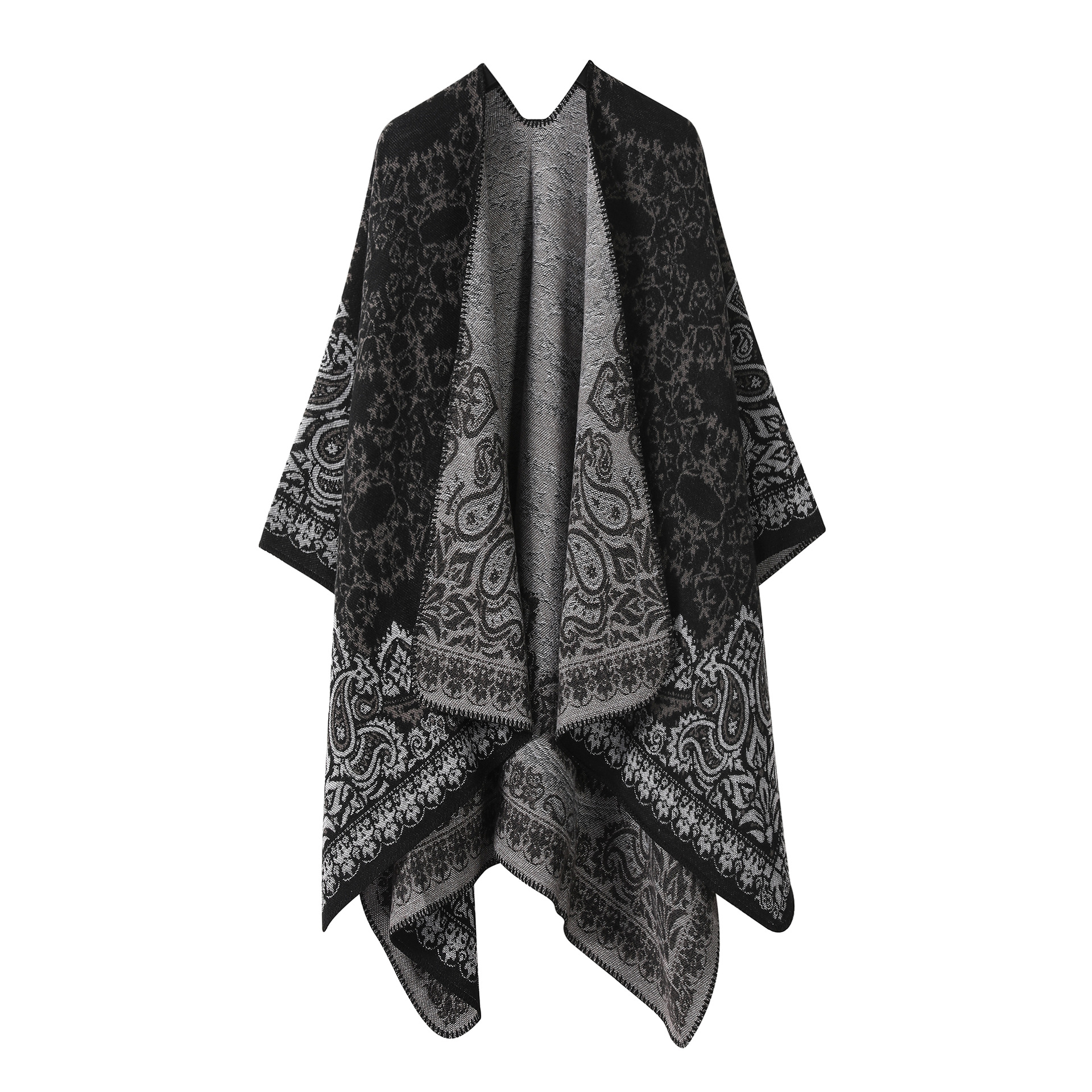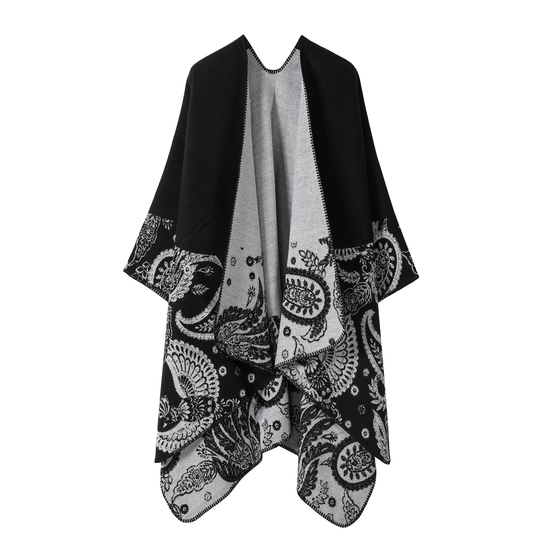 厂家现货批发女士开叉斗篷披肩古典风格双面流苏旅游保暖披风新款