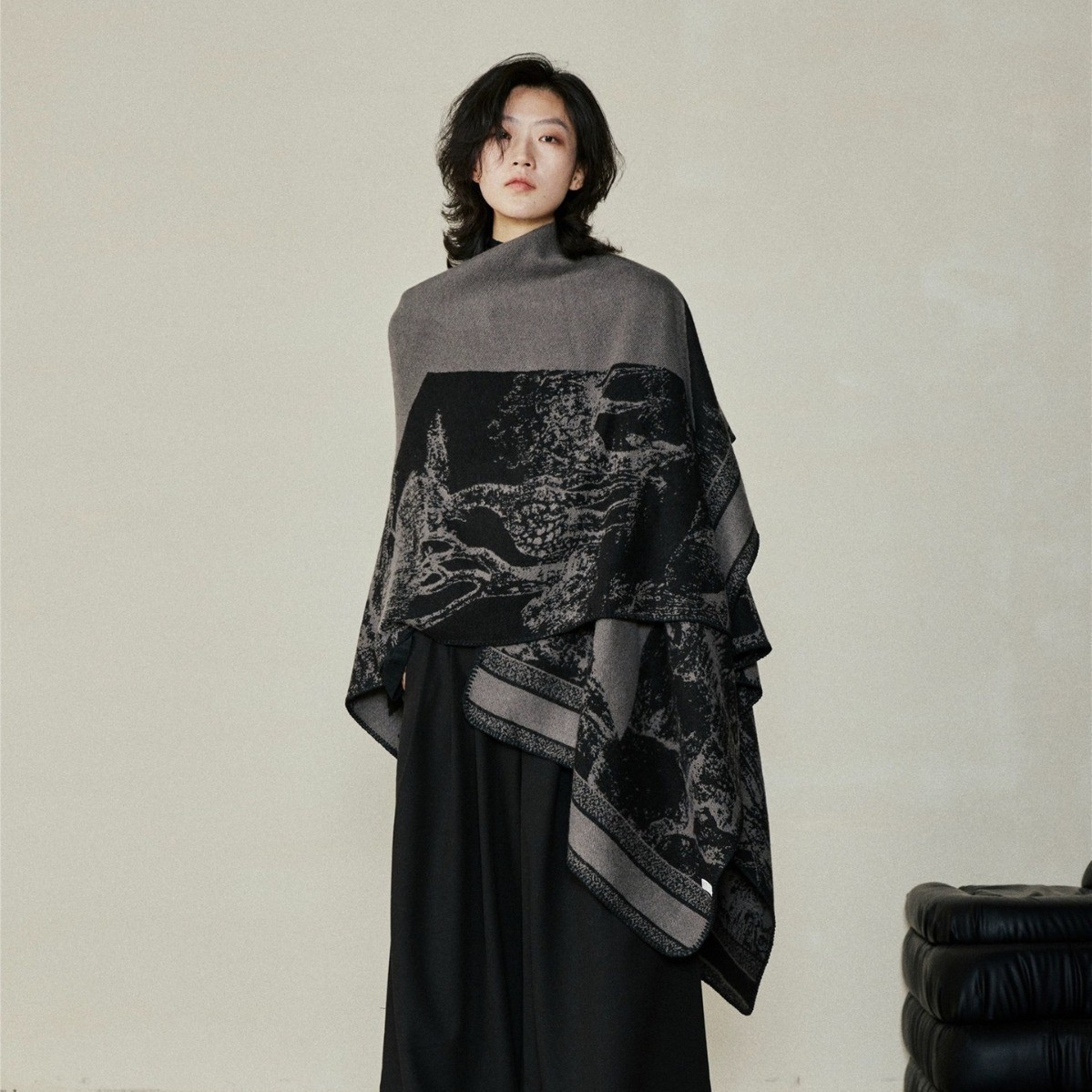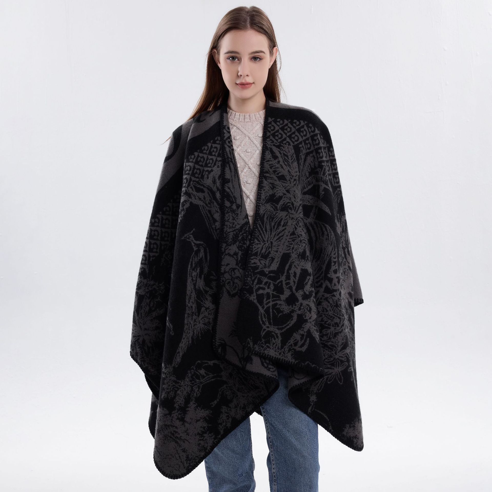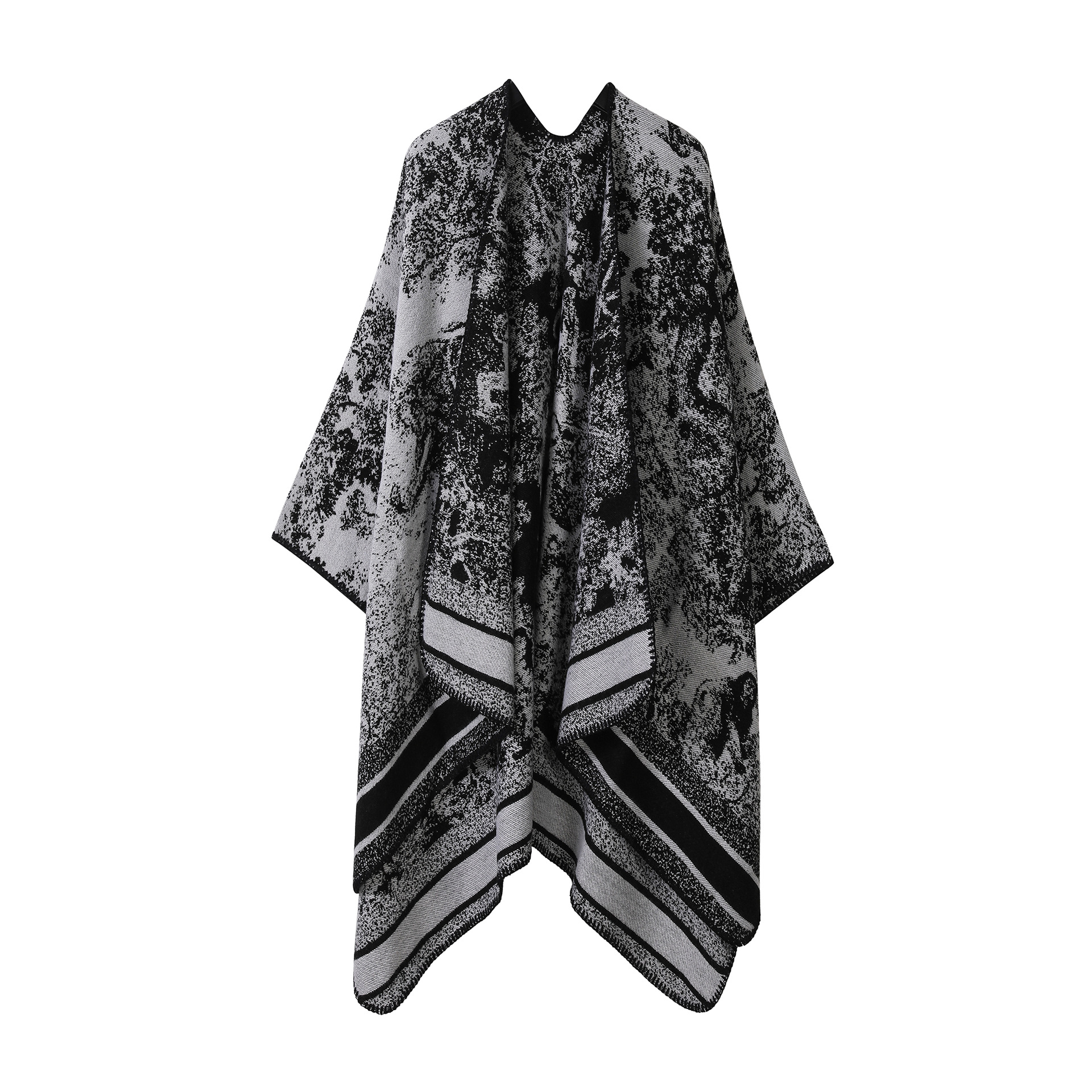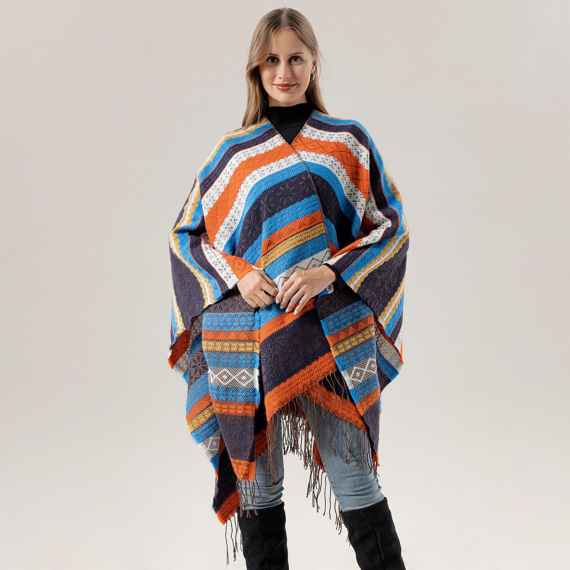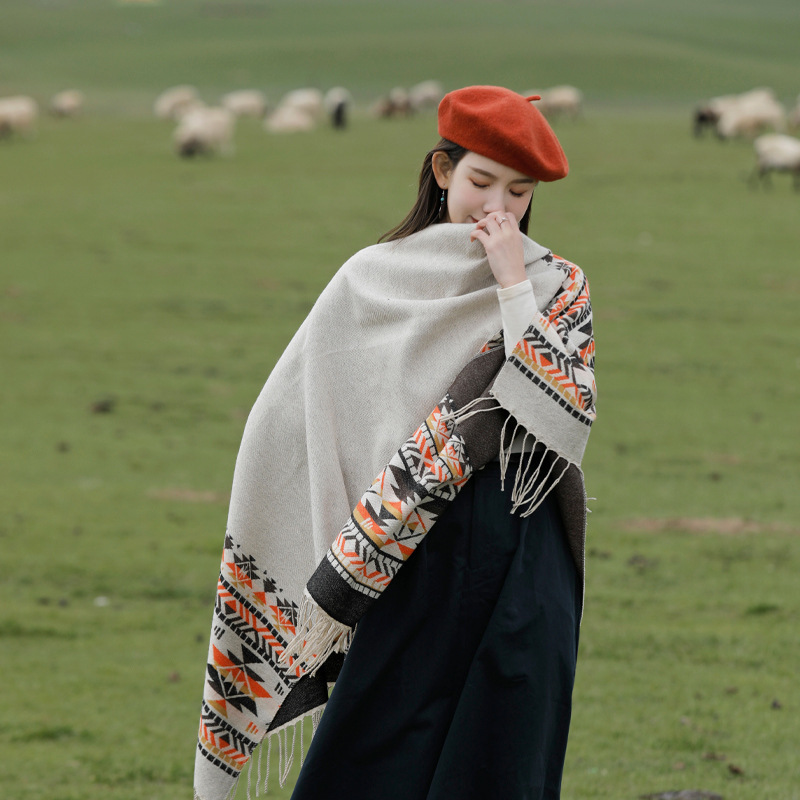 新款民族风披肩高级感水墨画披风川西旅游穿搭仿羊绒流苏斗篷女生