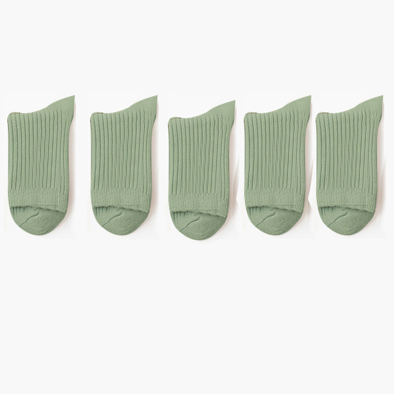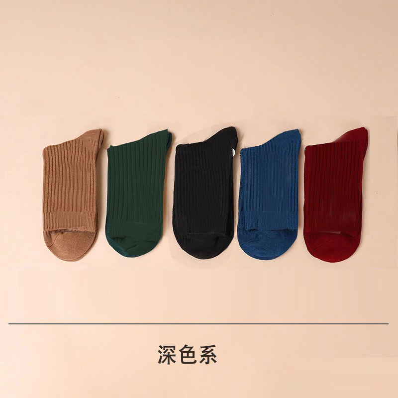 诸暨女士袜子纯色休闲中筒棉袜秋冬季加厚保暖透气双针女袜批发