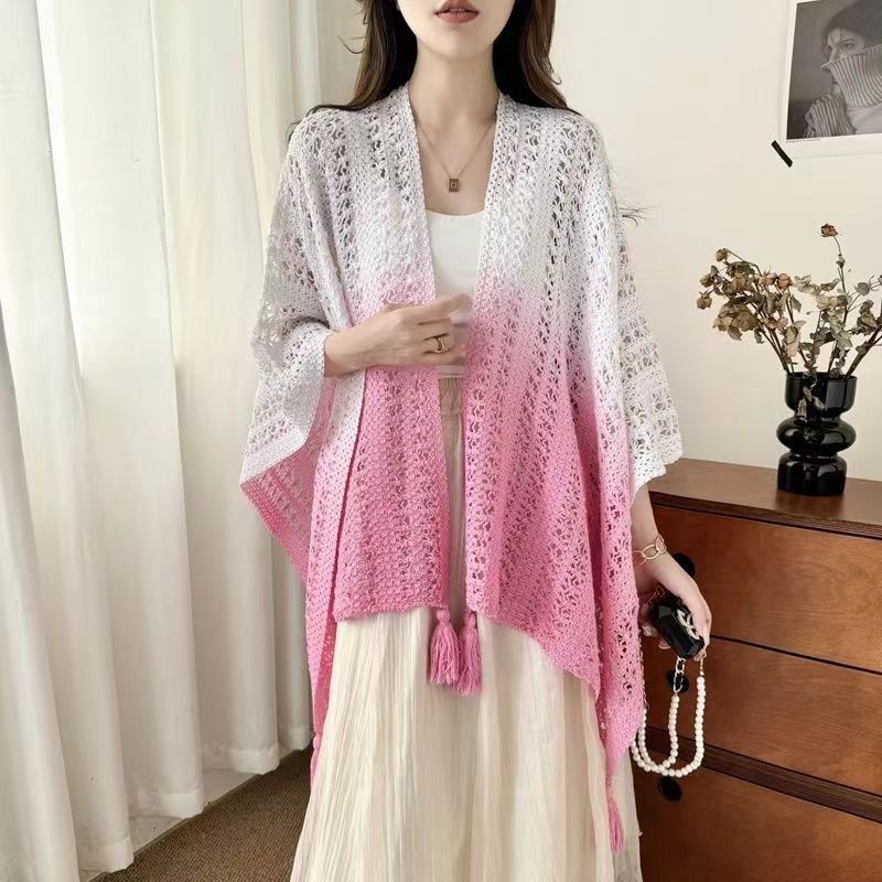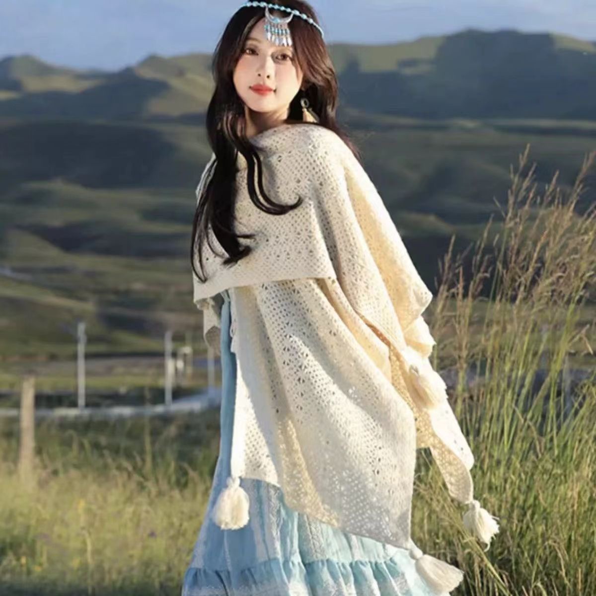 披肩女云南民族风扎染度假针织斗篷草原旅游拍照披风汉服外搭旗袍