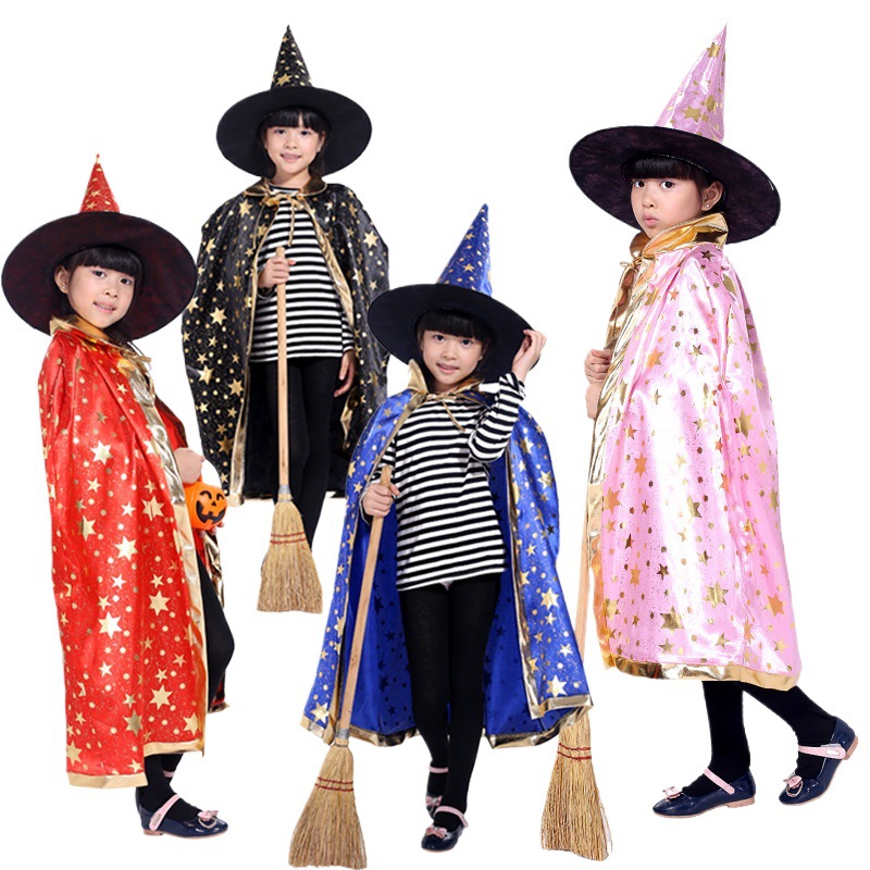 万圣节披风 六一儿童节化妆舞会演出装扮色丁布 五星披风斗篷套装