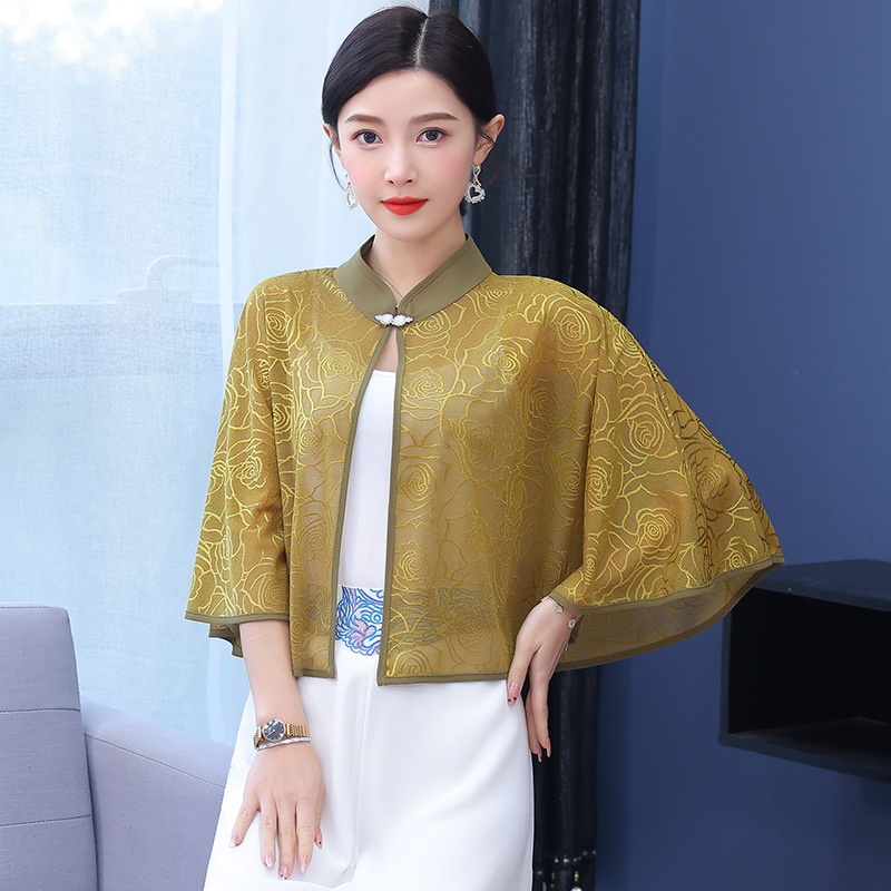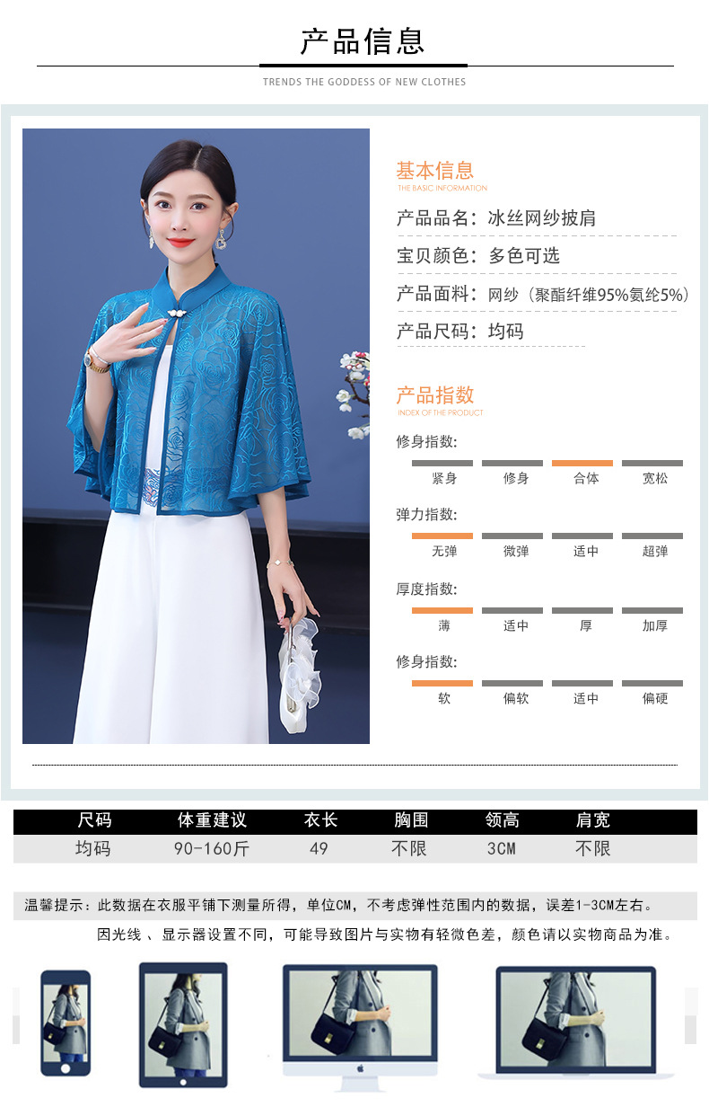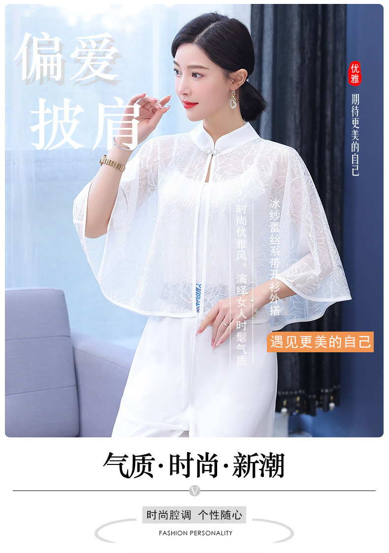 芙黛怡21201新玫瑰百搭披肩配裙子旗袍吊带裙外穿防晒斗篷立领夏