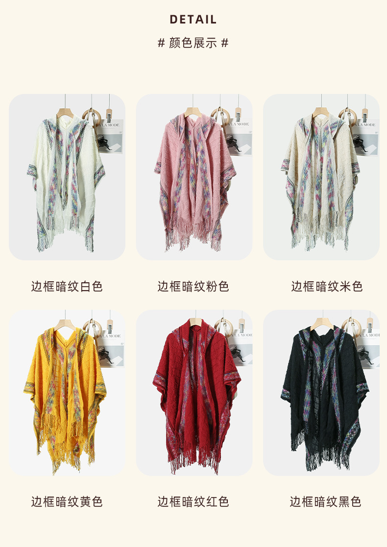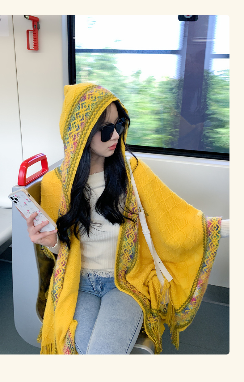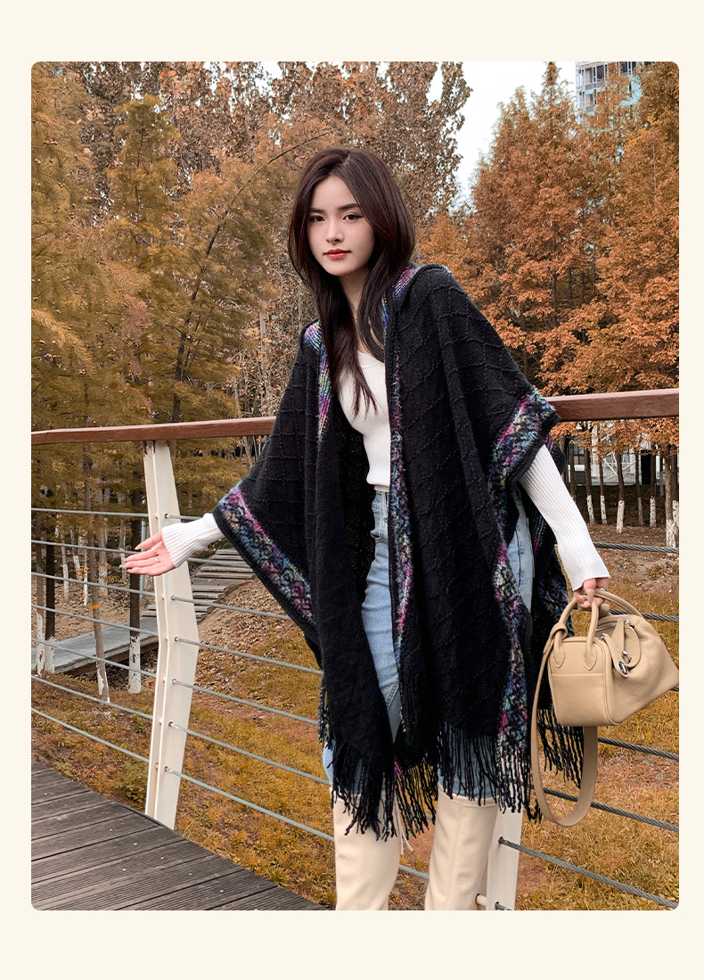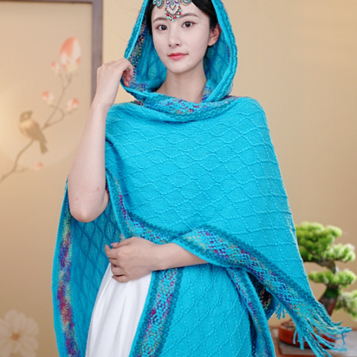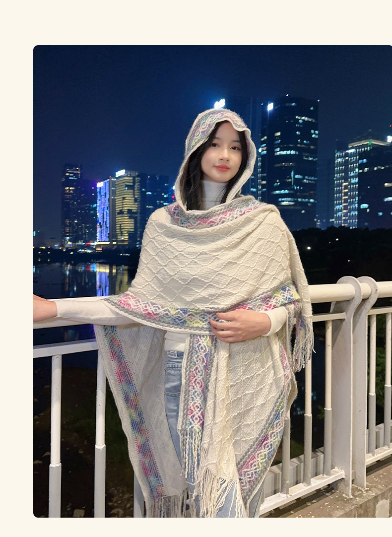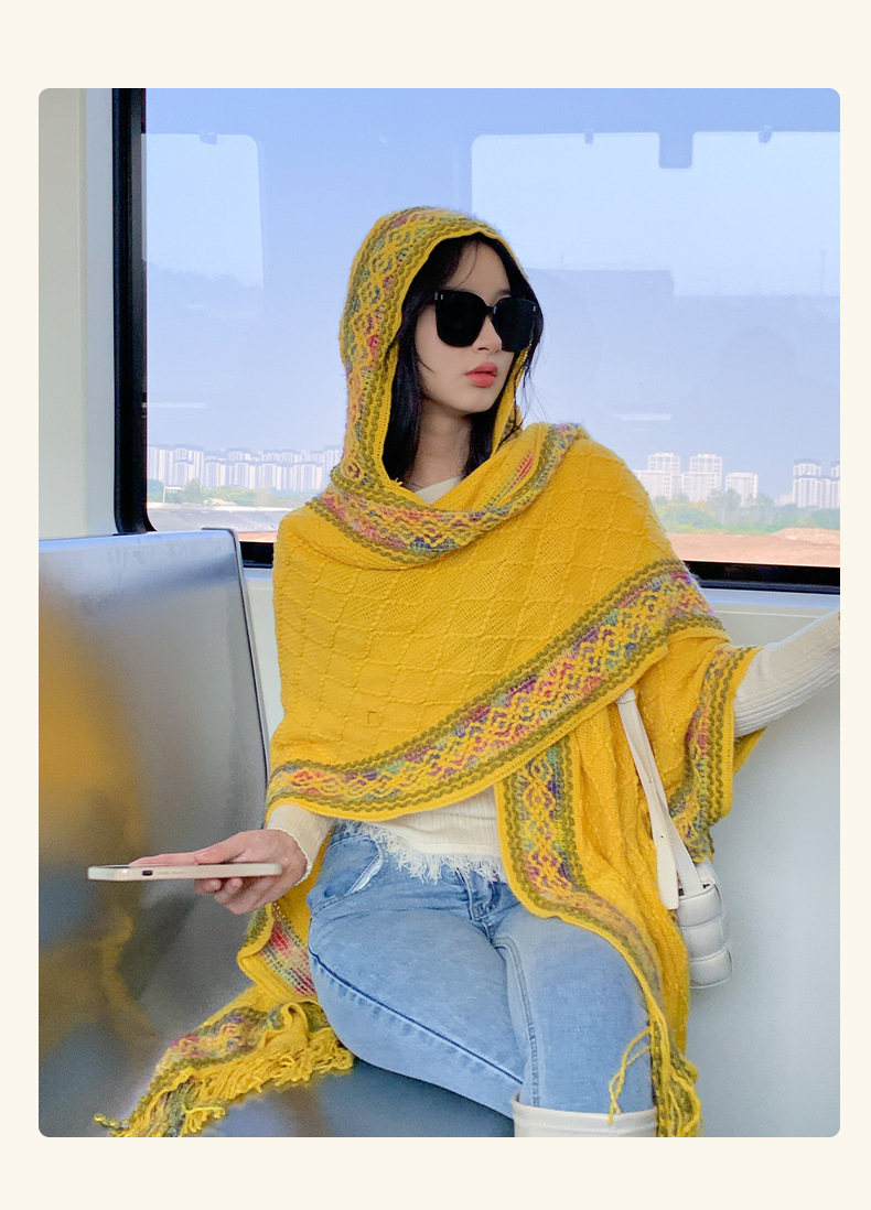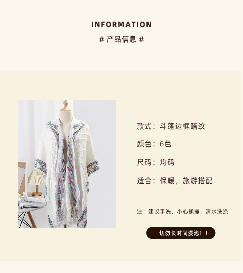 休闲百搭个性边框暗纹披肩围巾简约时尚百搭舒适透气保暖连帽斗篷