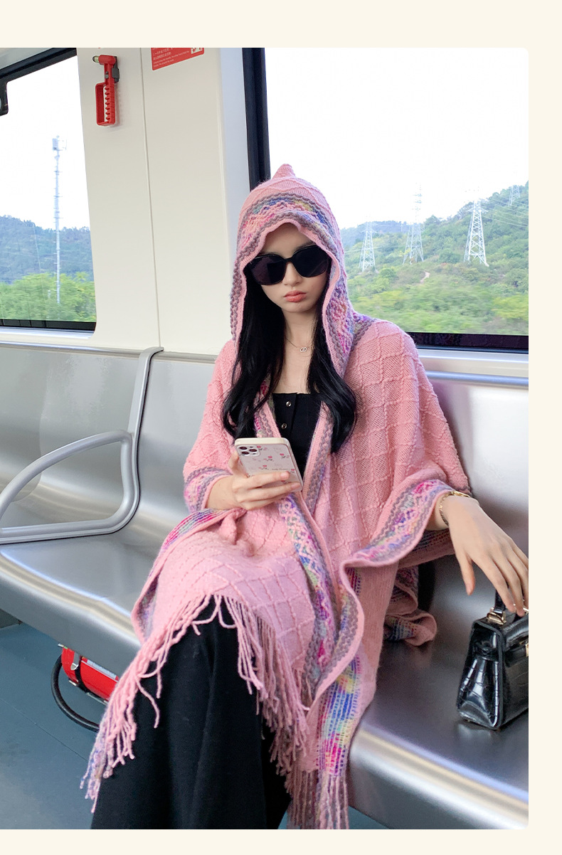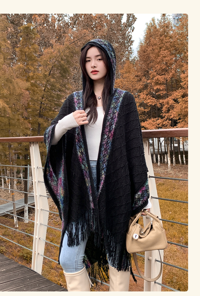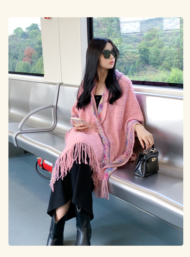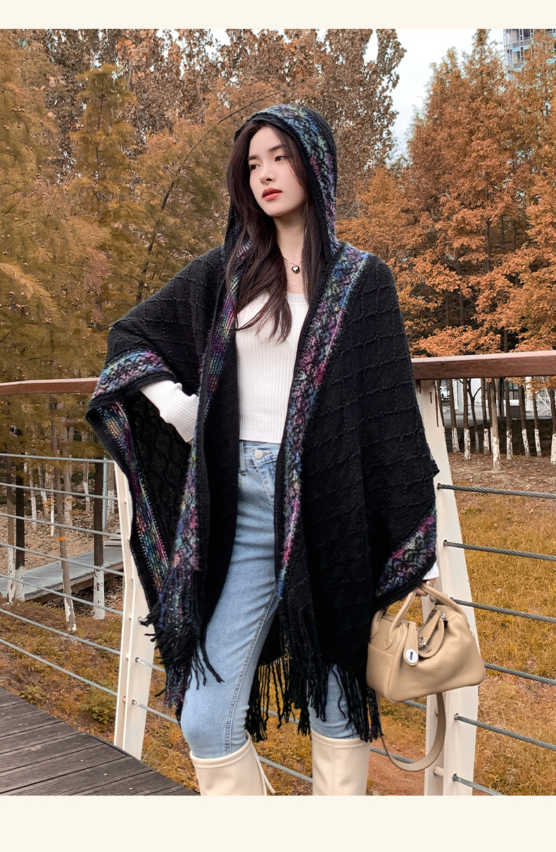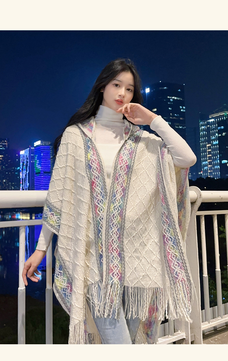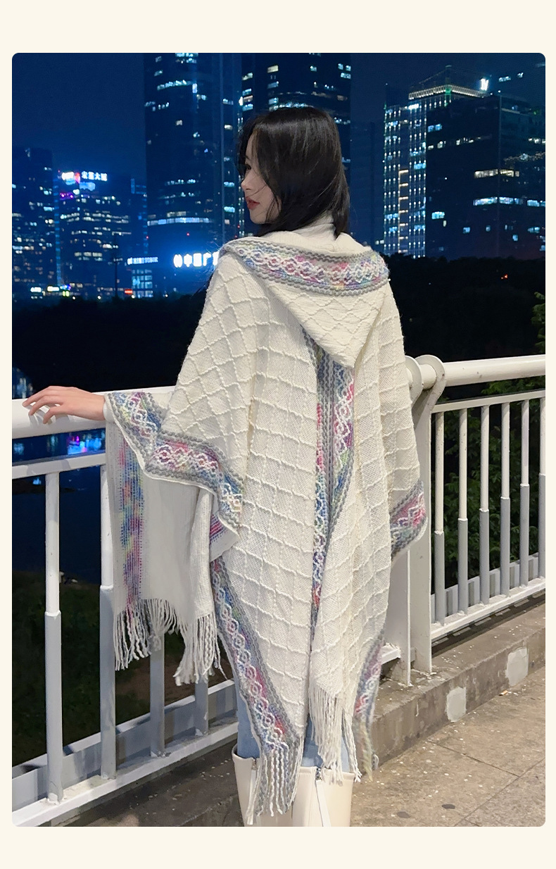 休闲百搭个性边框暗纹披肩围巾简约时尚百搭舒适透气保暖连帽斗篷