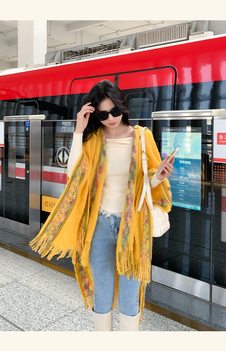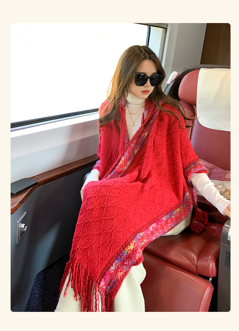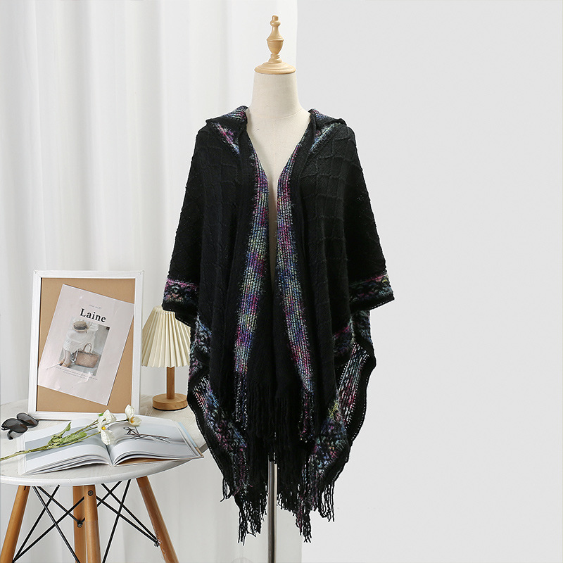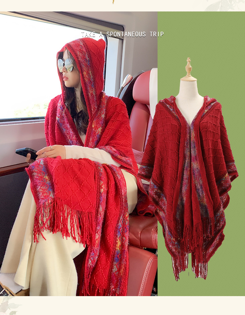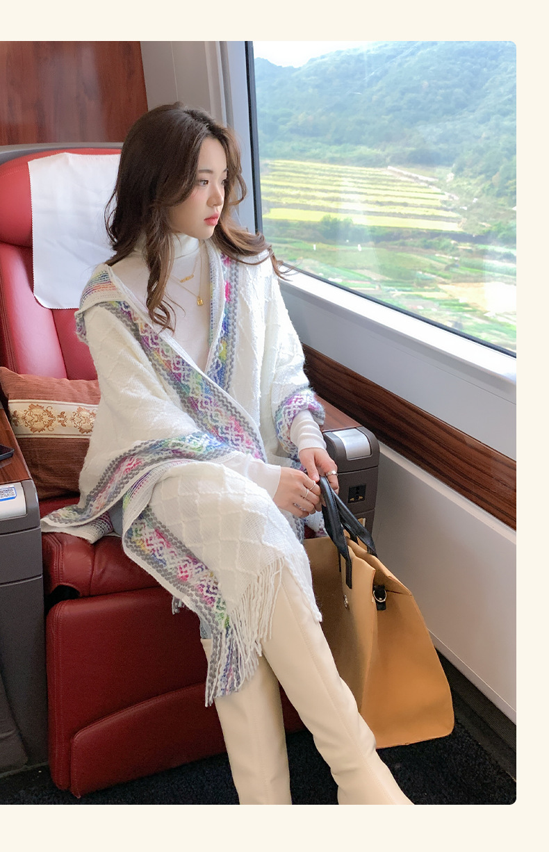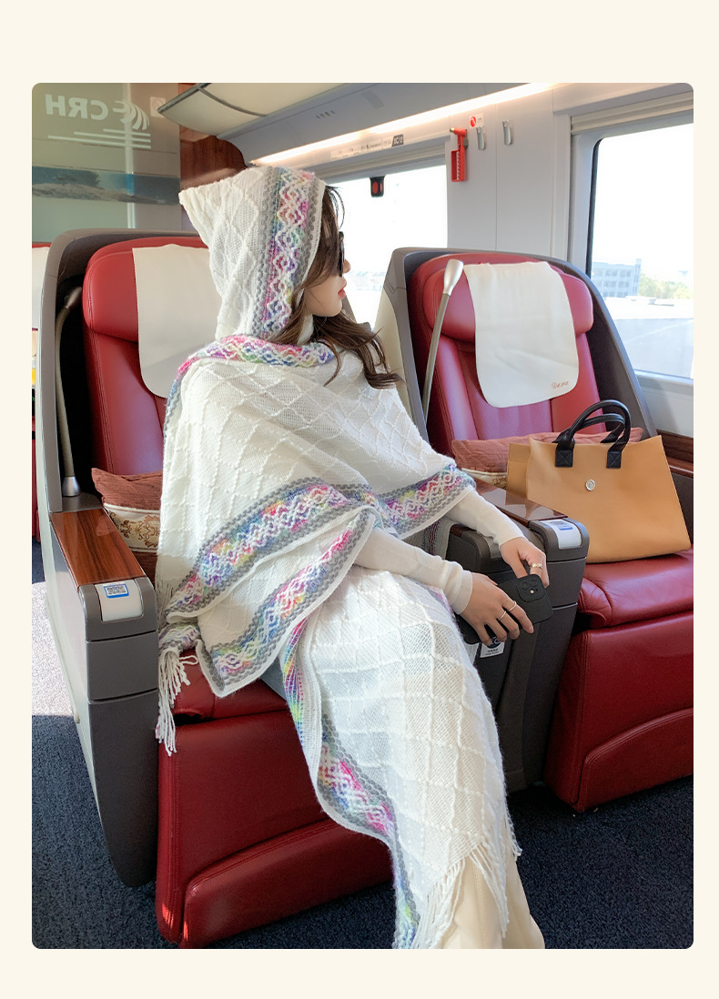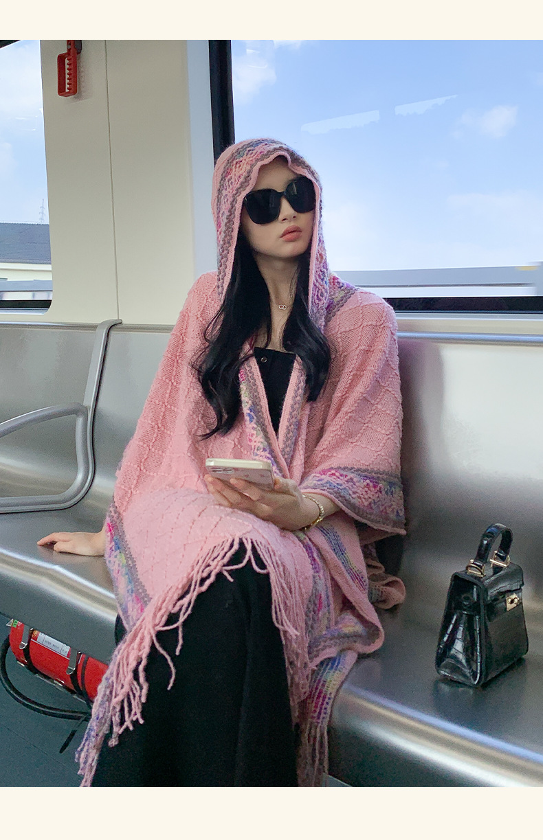 休闲百搭个性边框暗纹披肩围巾简约时尚百搭舒适透气保暖连帽斗篷