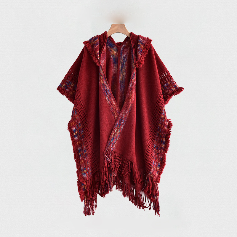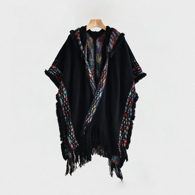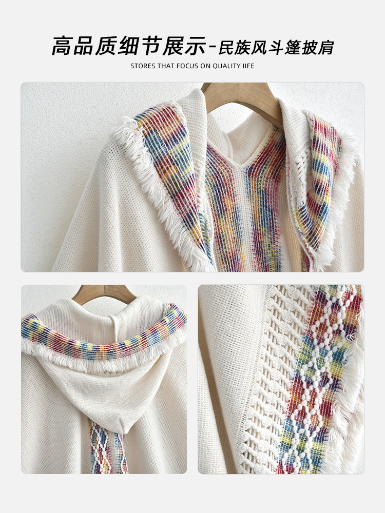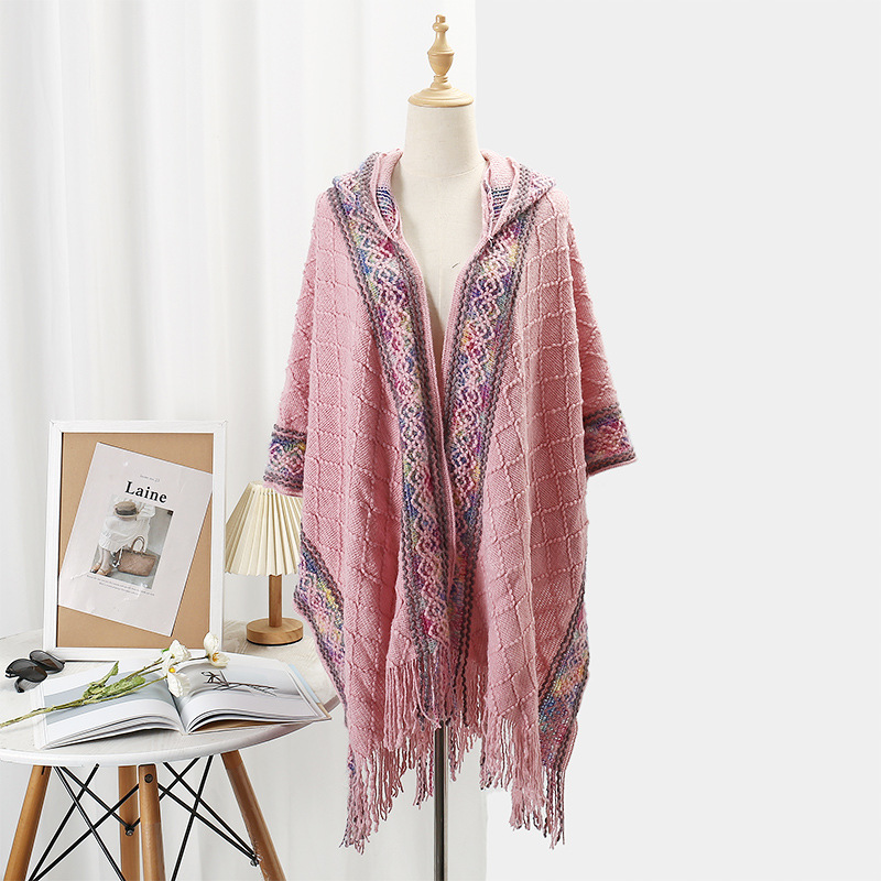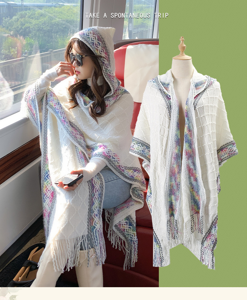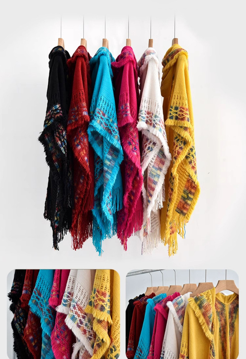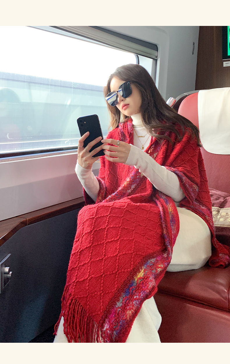 休闲百搭个性边框暗纹披肩围巾简约时尚百搭舒适透气保暖连帽斗篷