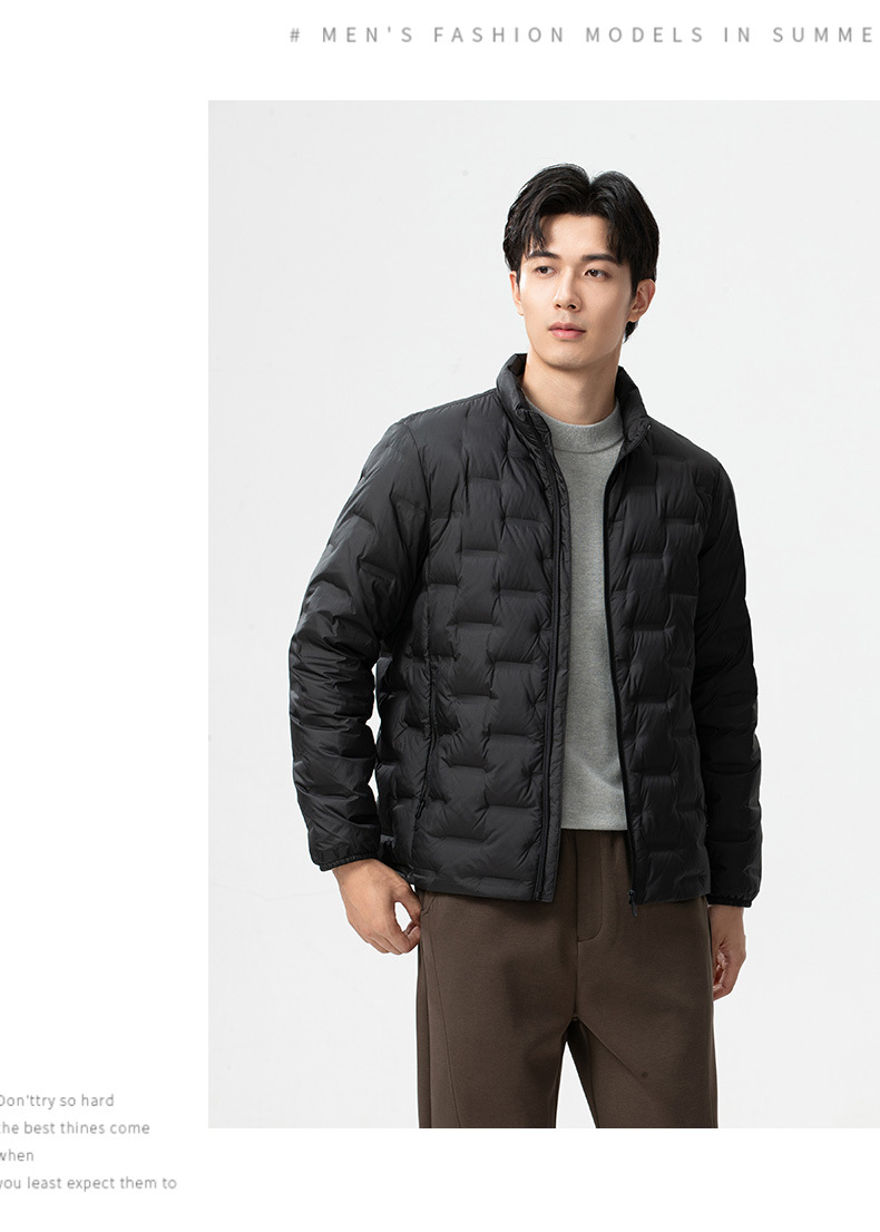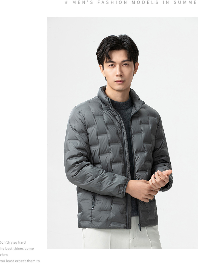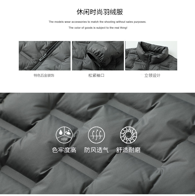 90%绒子含量冬季新款男士加厚中长款羽绒服轻便立领外套轻软保暖a