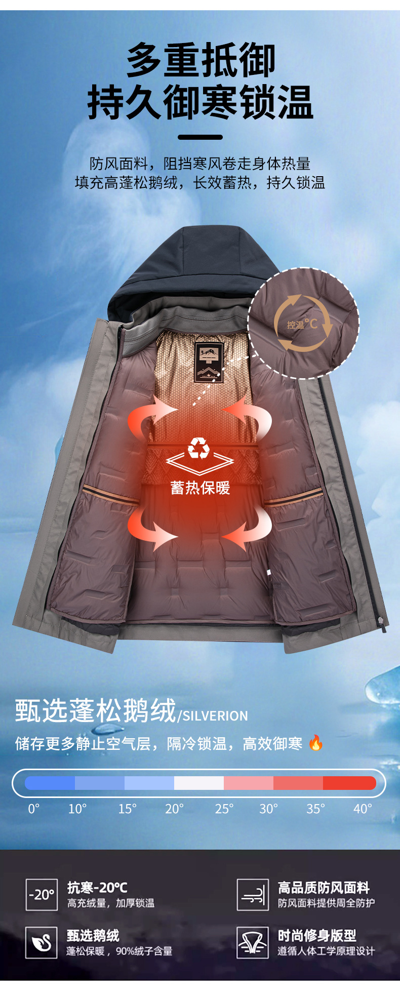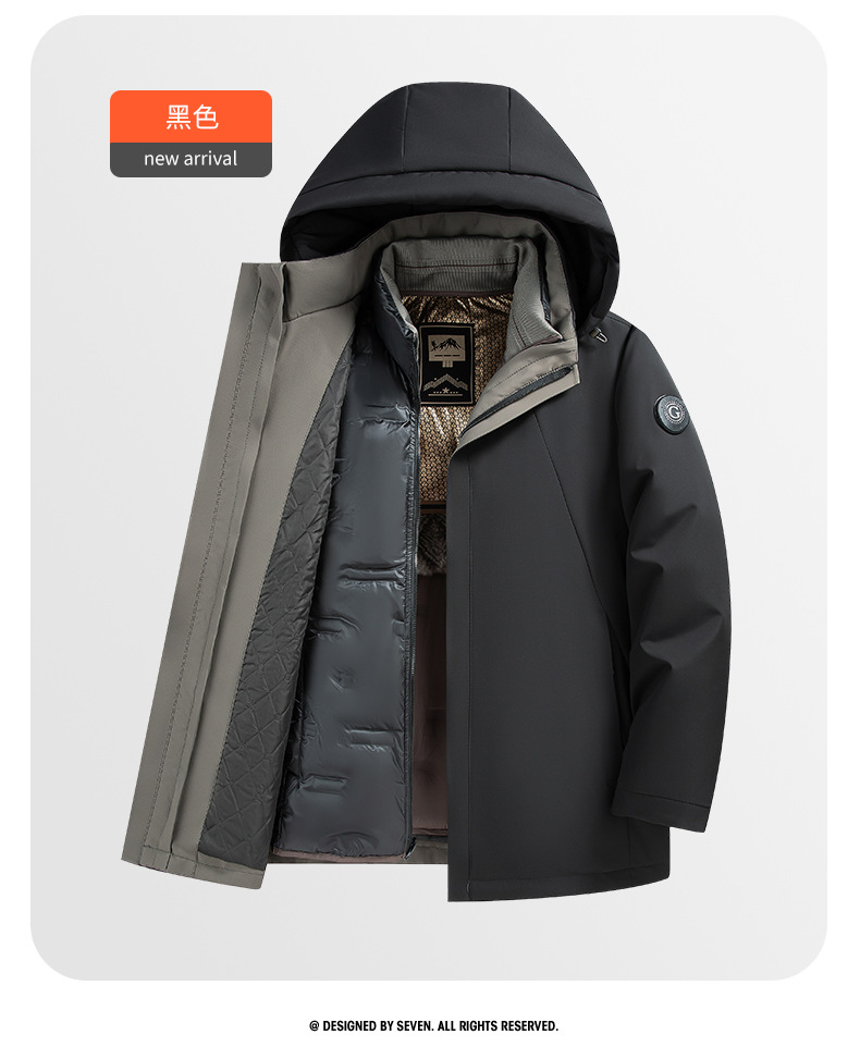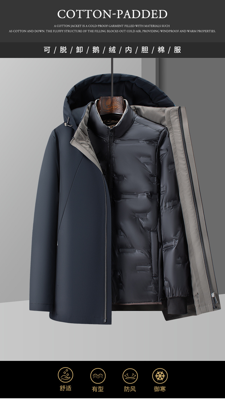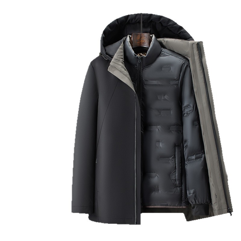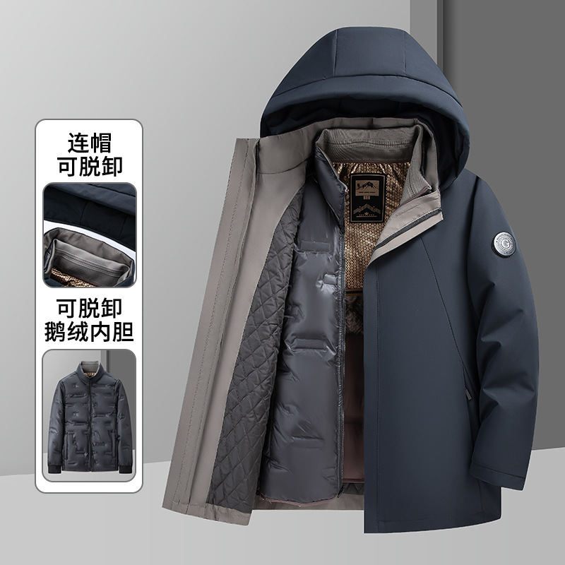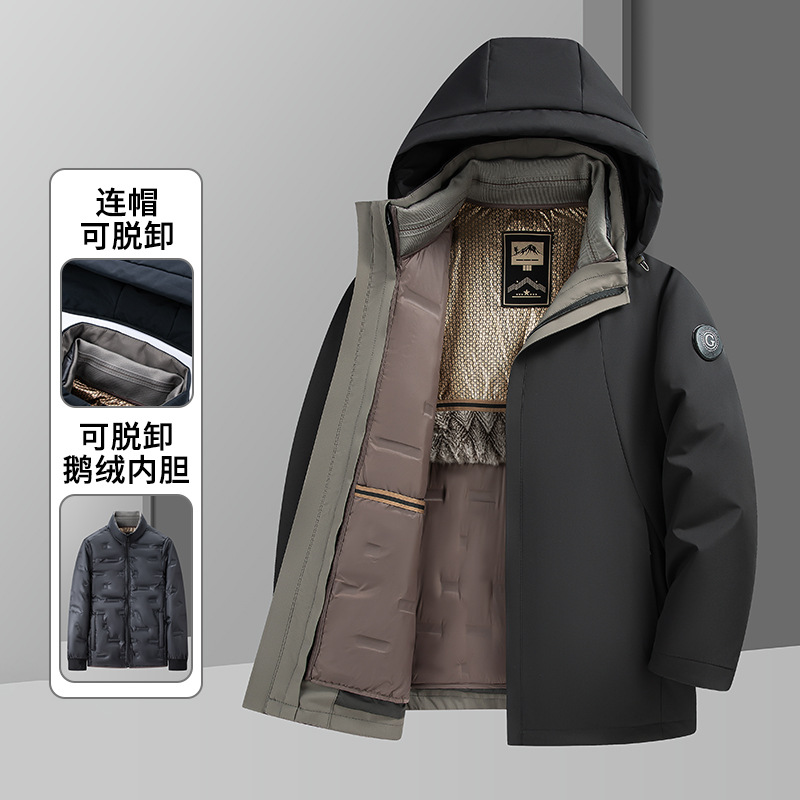 啄木鸟冬季男士中年加厚爸爸装防风保暖可拆卸内胆男款羽绒服外套