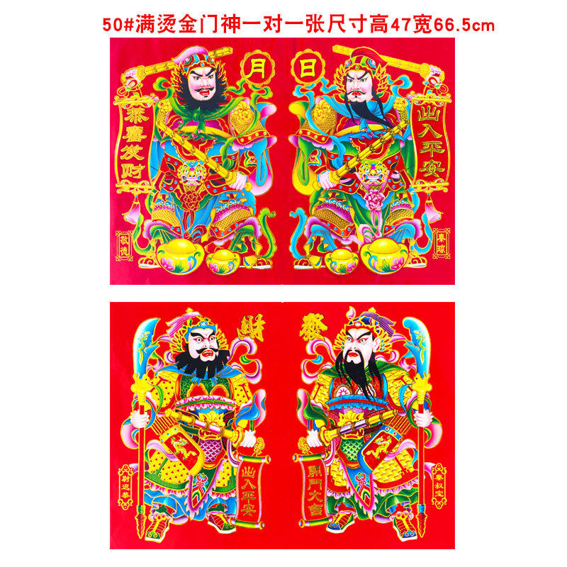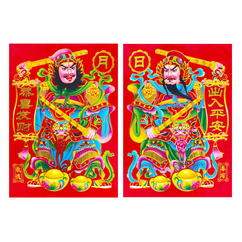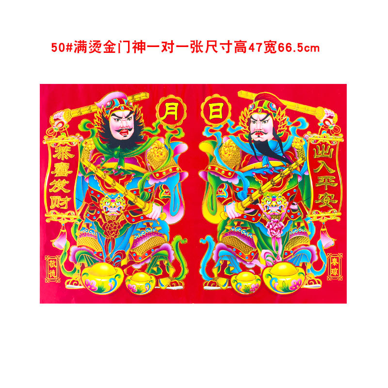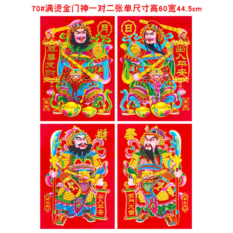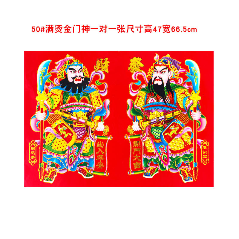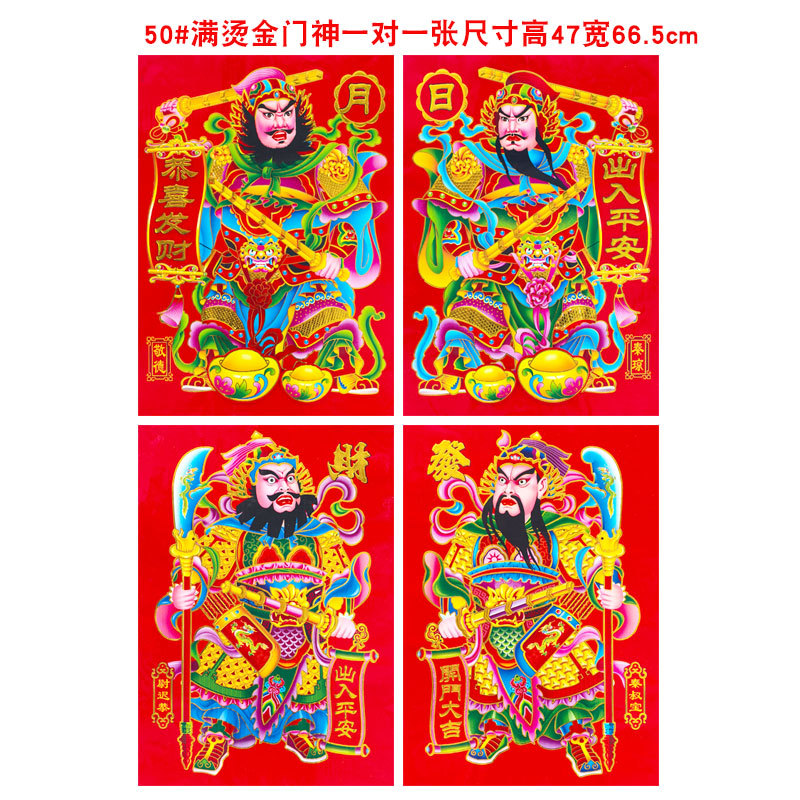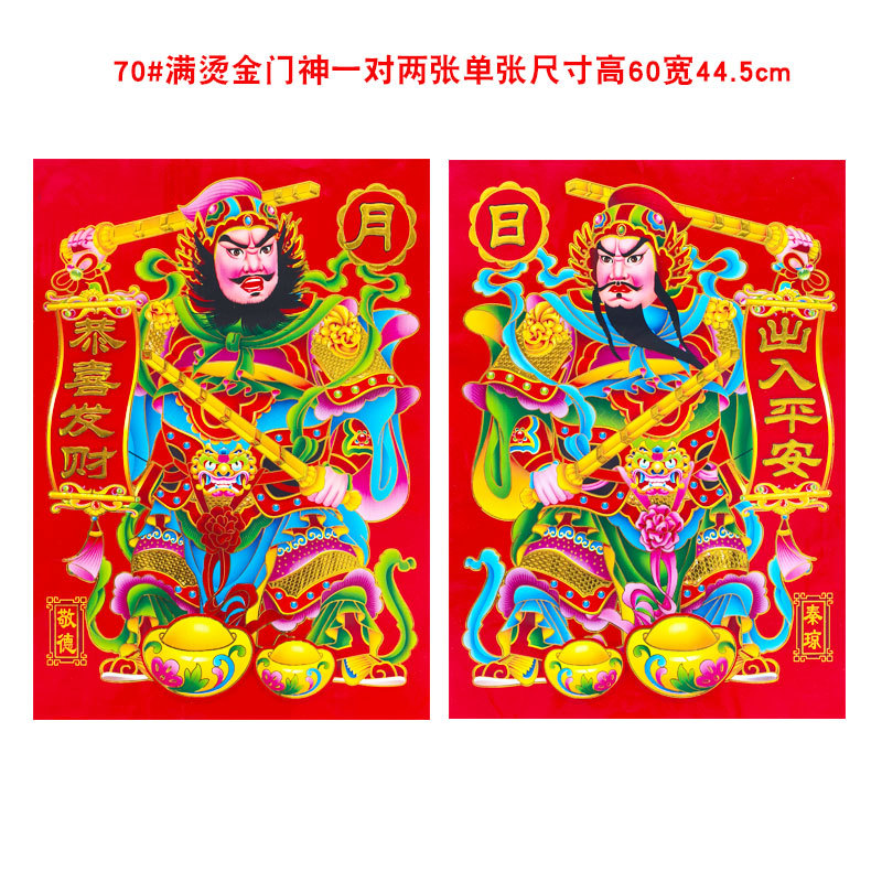 2026年新款烫金门神高档铜版纸日月发财春节大门贴画装饰厂家批货
