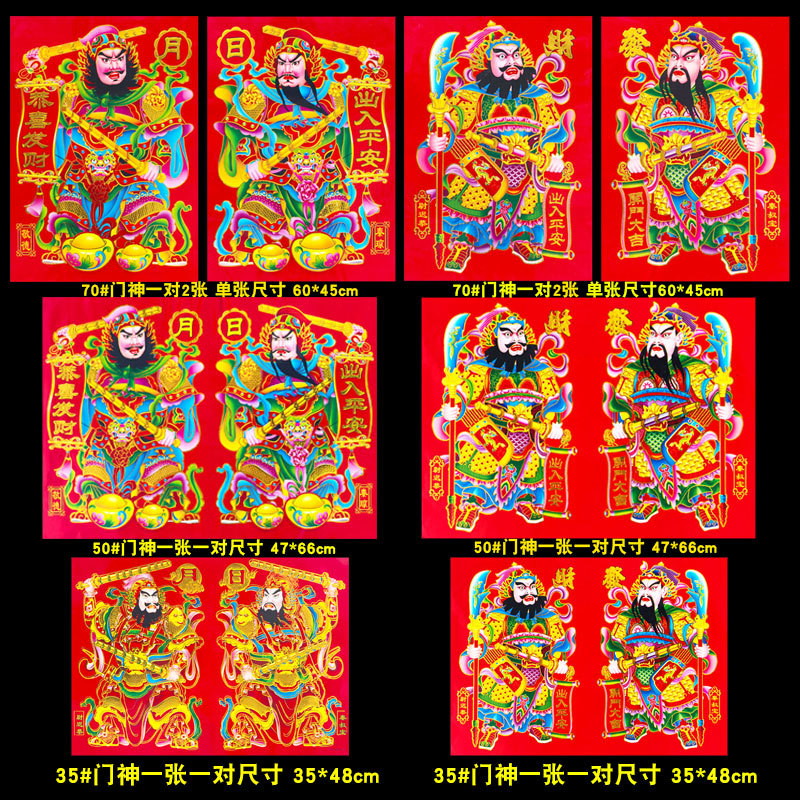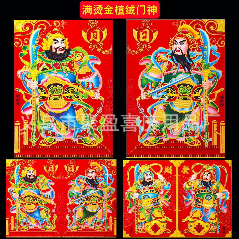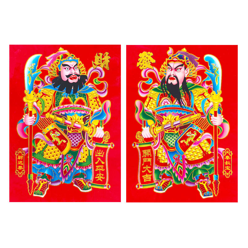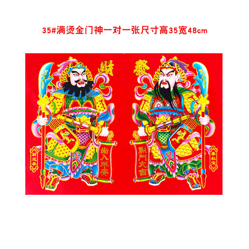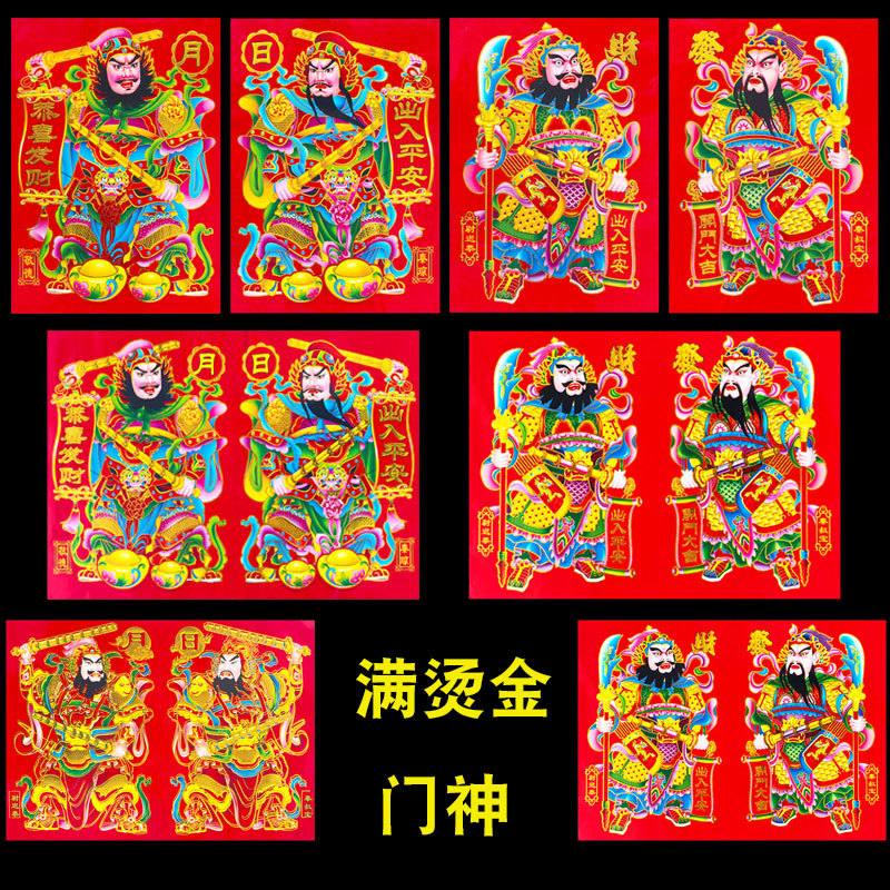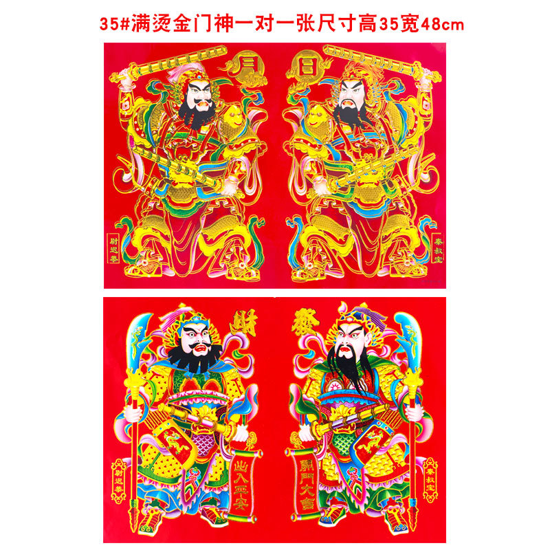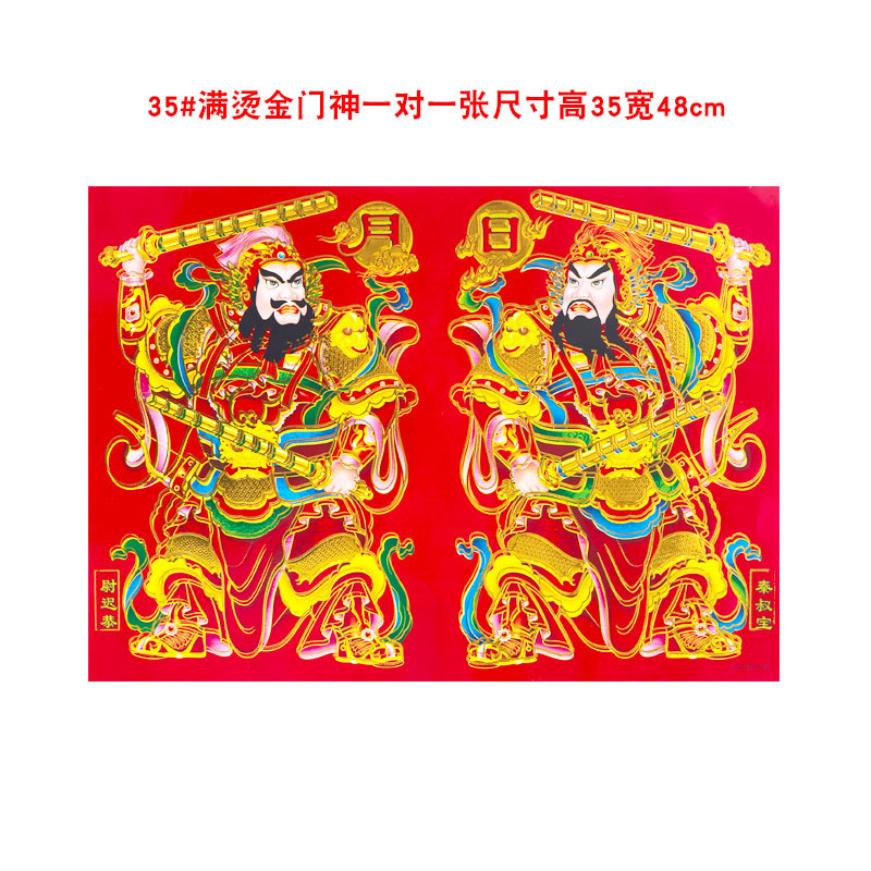 2026年新款烫金门神高档铜版纸日月发财春节大门贴画装饰厂家批货