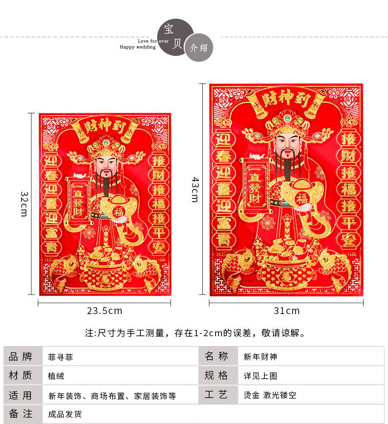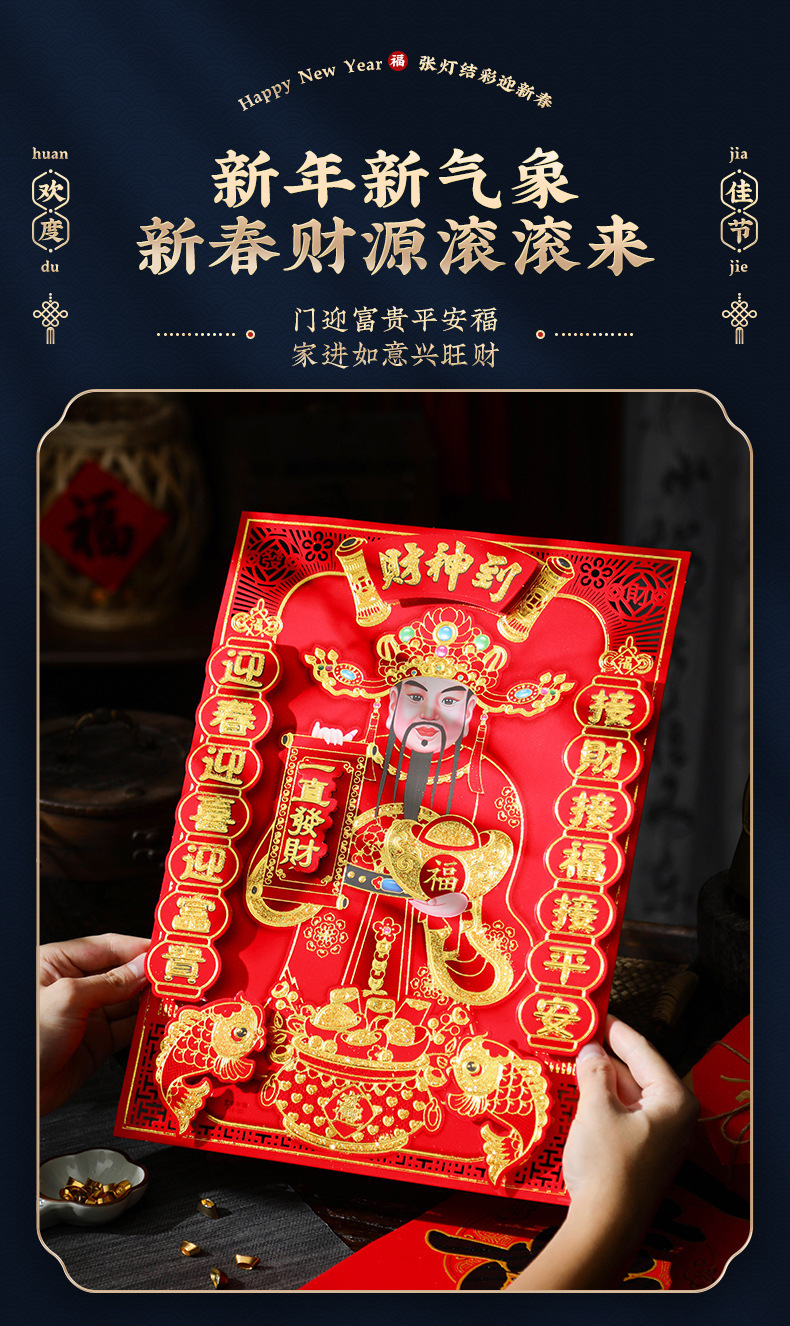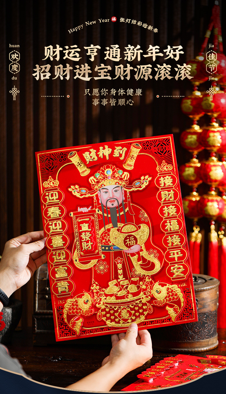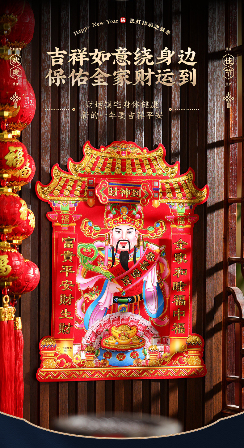 2026马年福字贴财神爷年画新年装饰用品新款春节过年家用门神贴纸