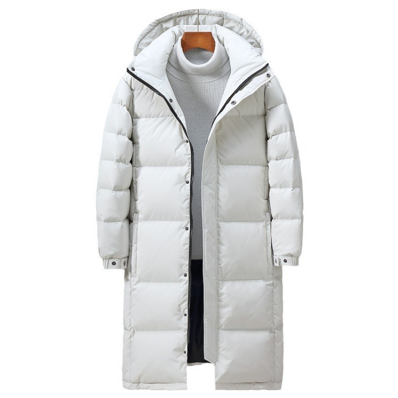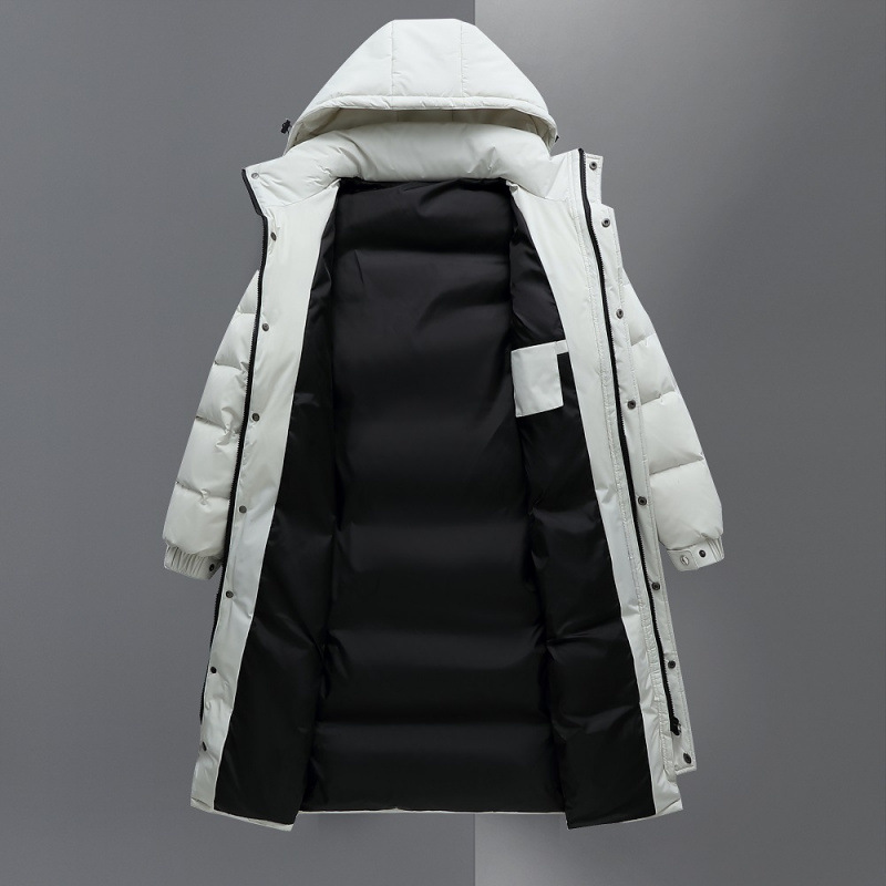 跨境欧美外贸羽绒服男长款过膝青年男士冬季户外白鸭绒连帽外套潮