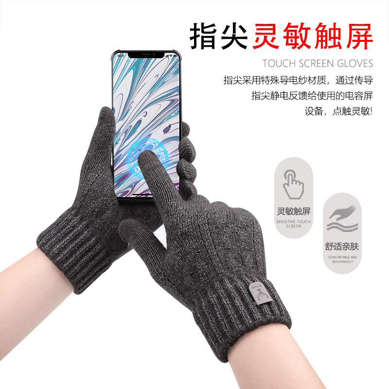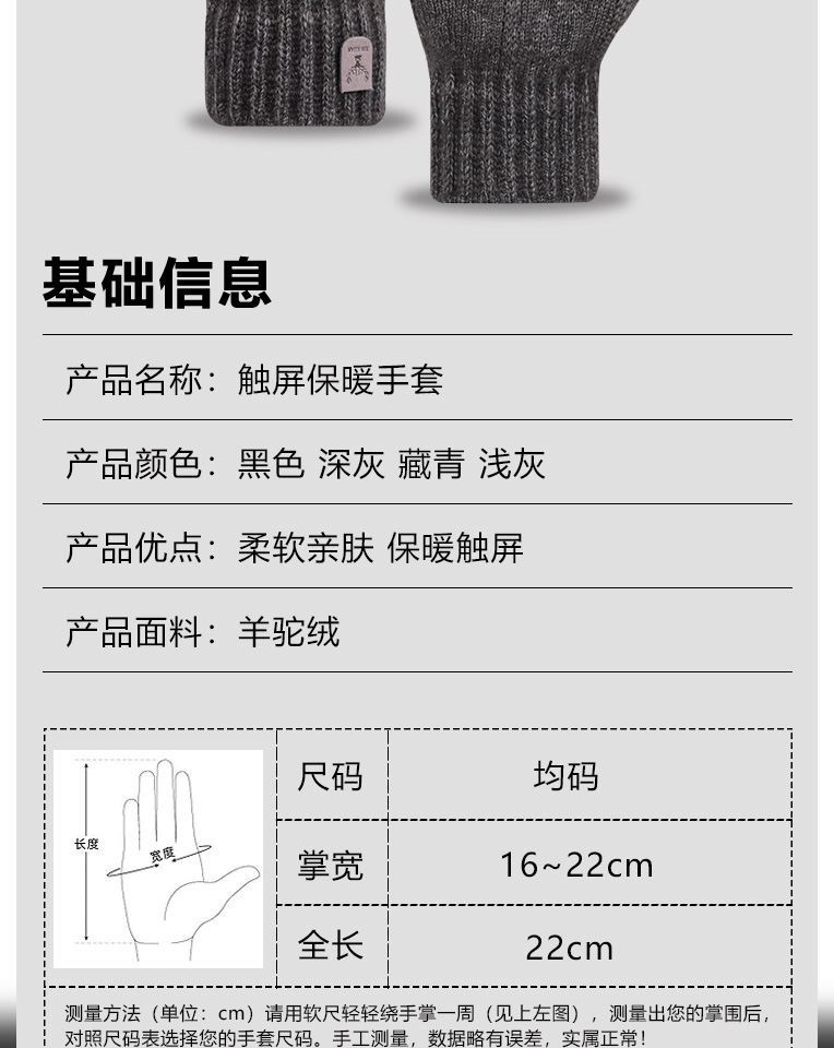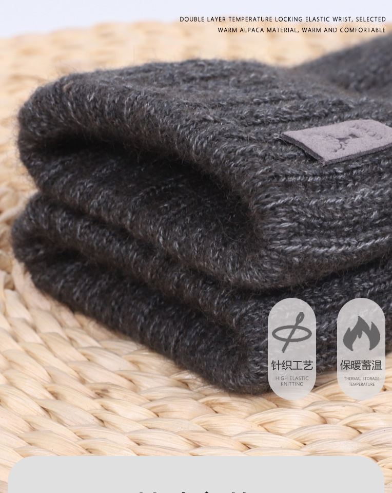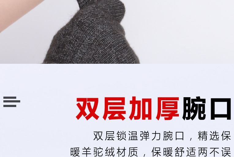 秋冬手套羊驼绒骑车加绒加厚触屏男女防风保暖纯色针织时尚韩手套