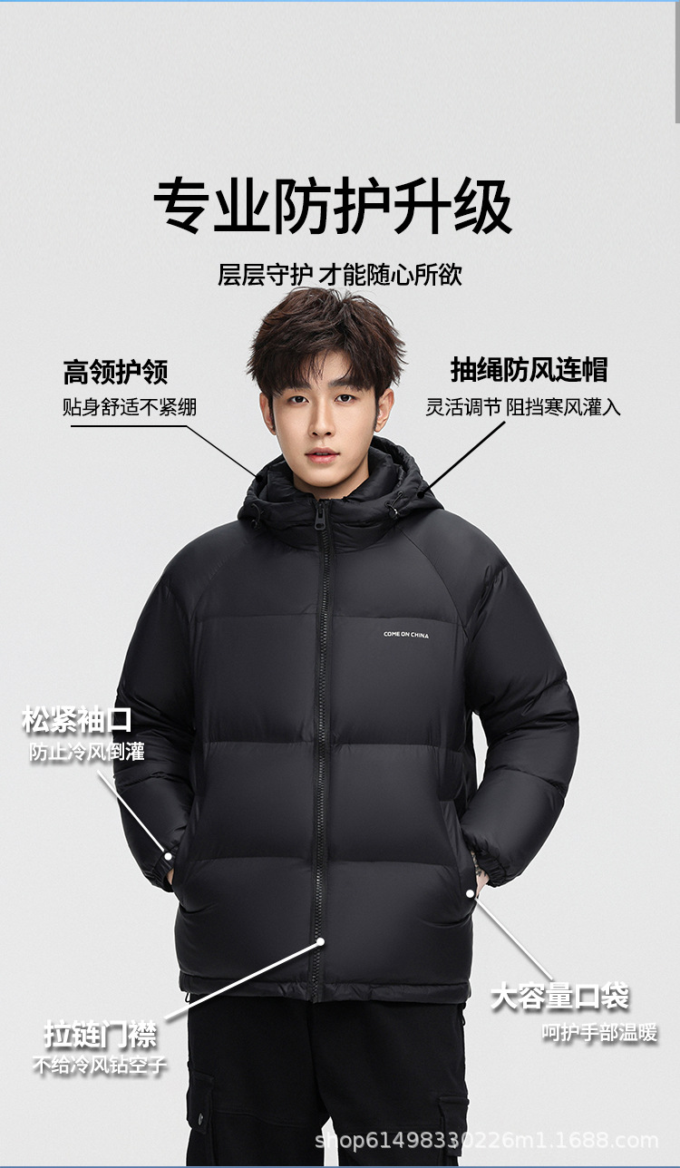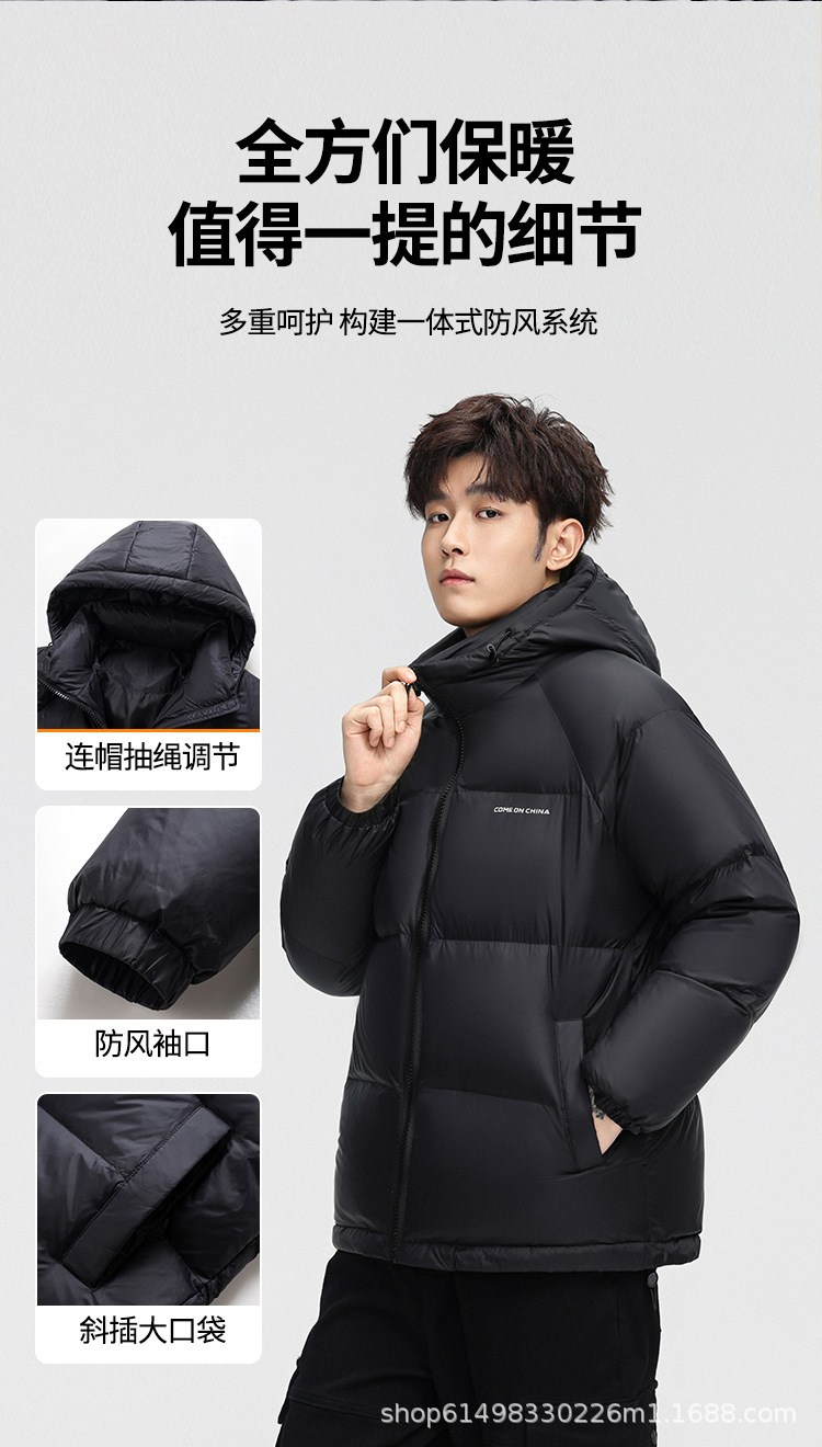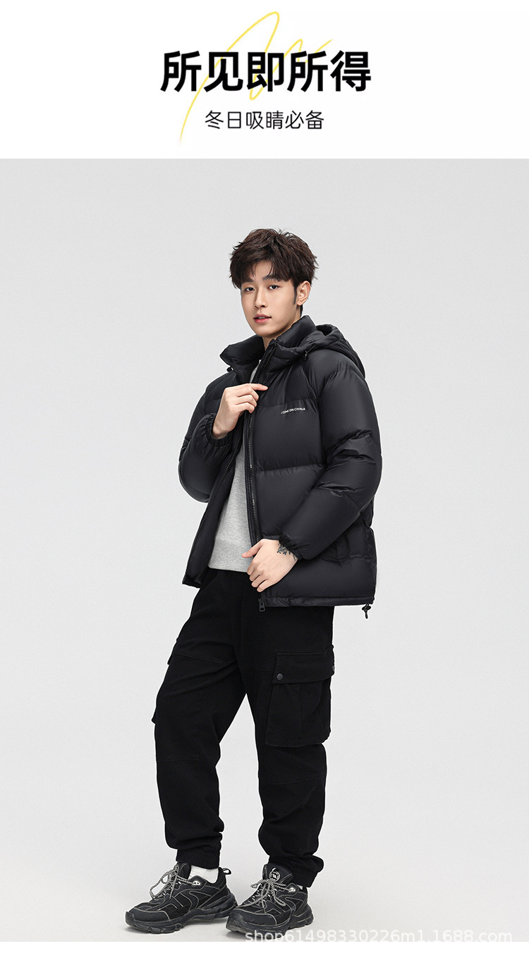 高充绒245g男士短款羽绒服2025冬季新款加厚面包服男防寒保暖外套