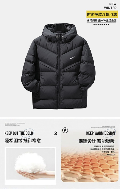 2025冬季羽绒服外套男士新款潮流宽松休闲加厚保暖连帽白鸭绒男装