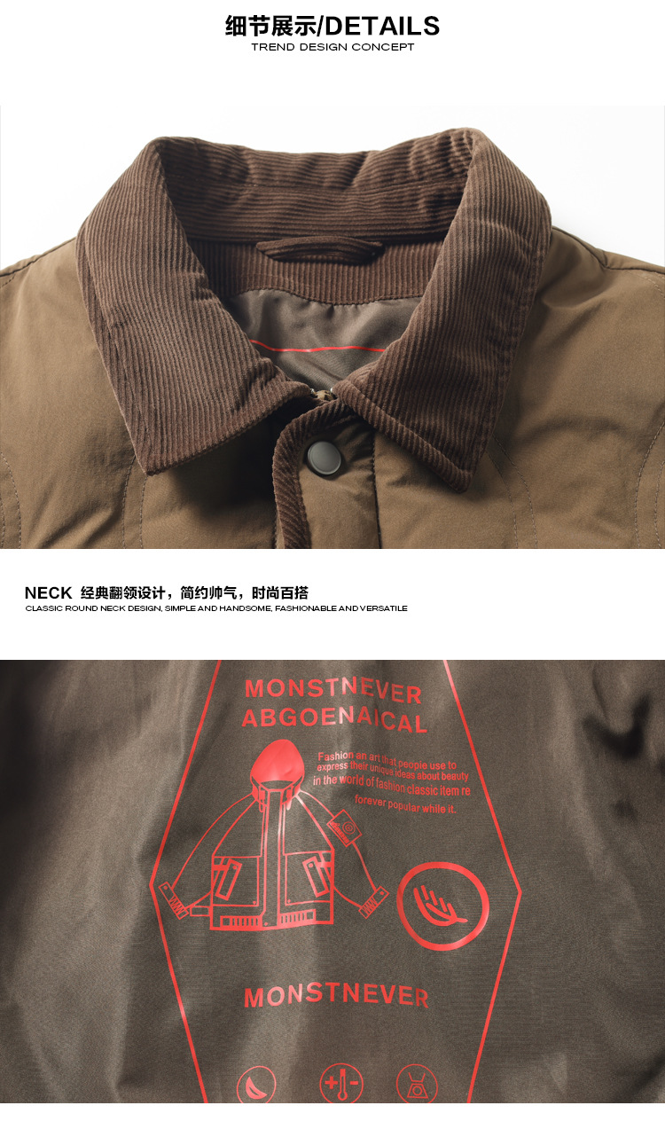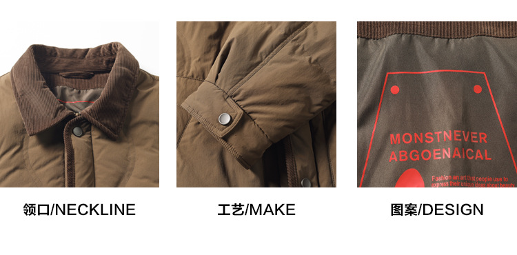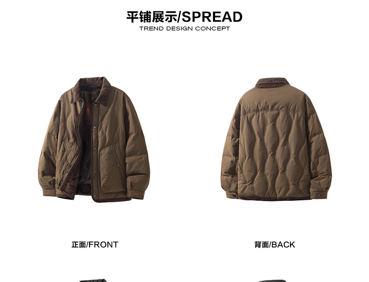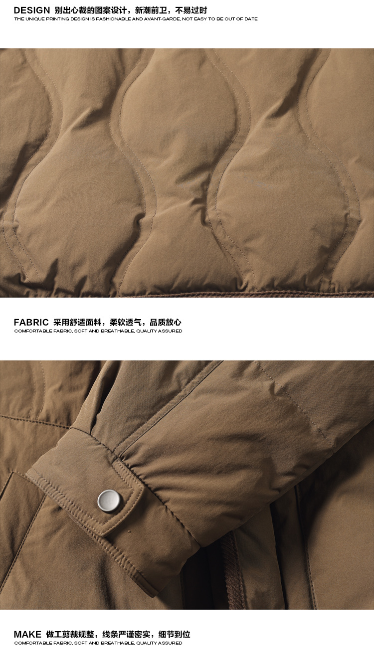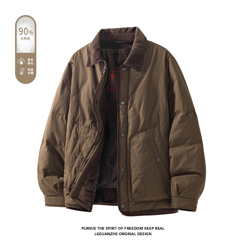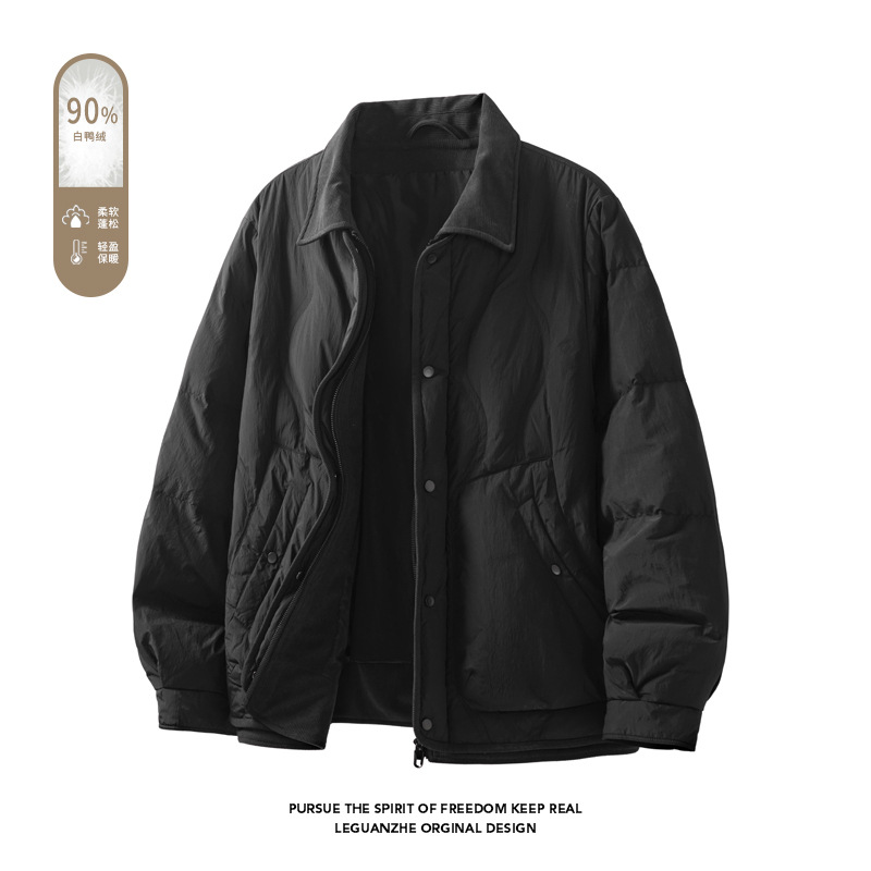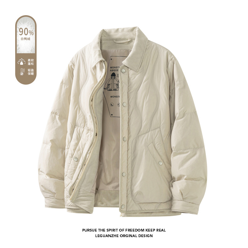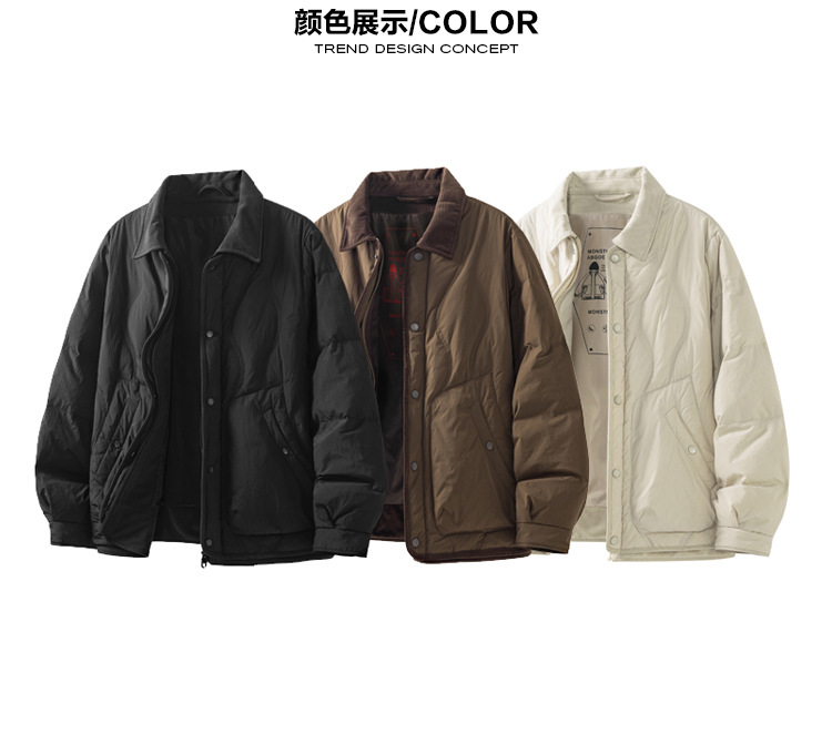 90%白鸭绒羽绒服外套冬季男高级感短款御寒保暖拼接翻领工装外套