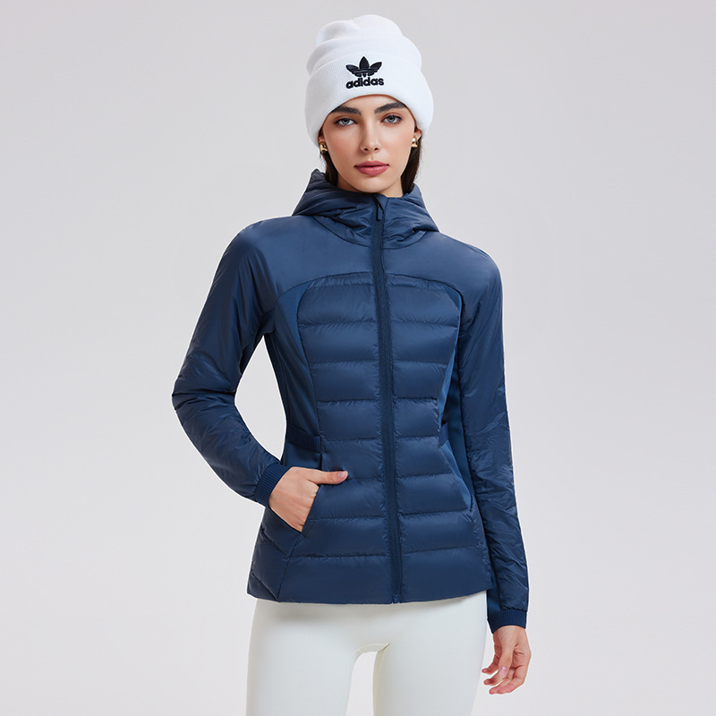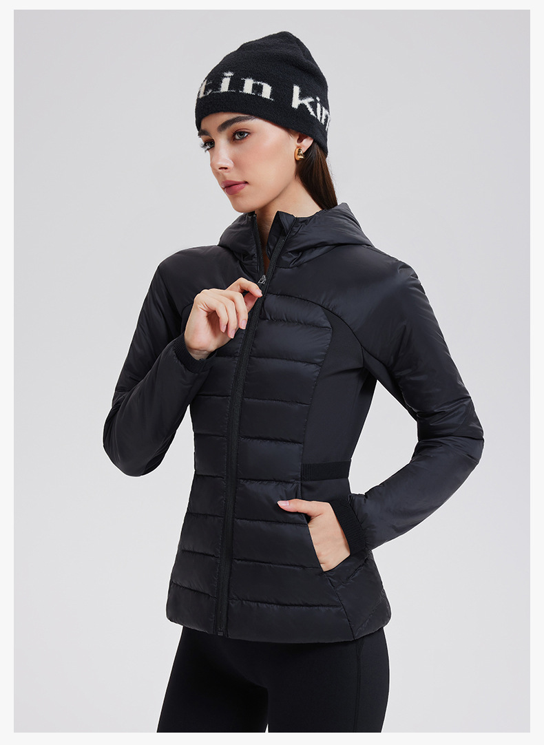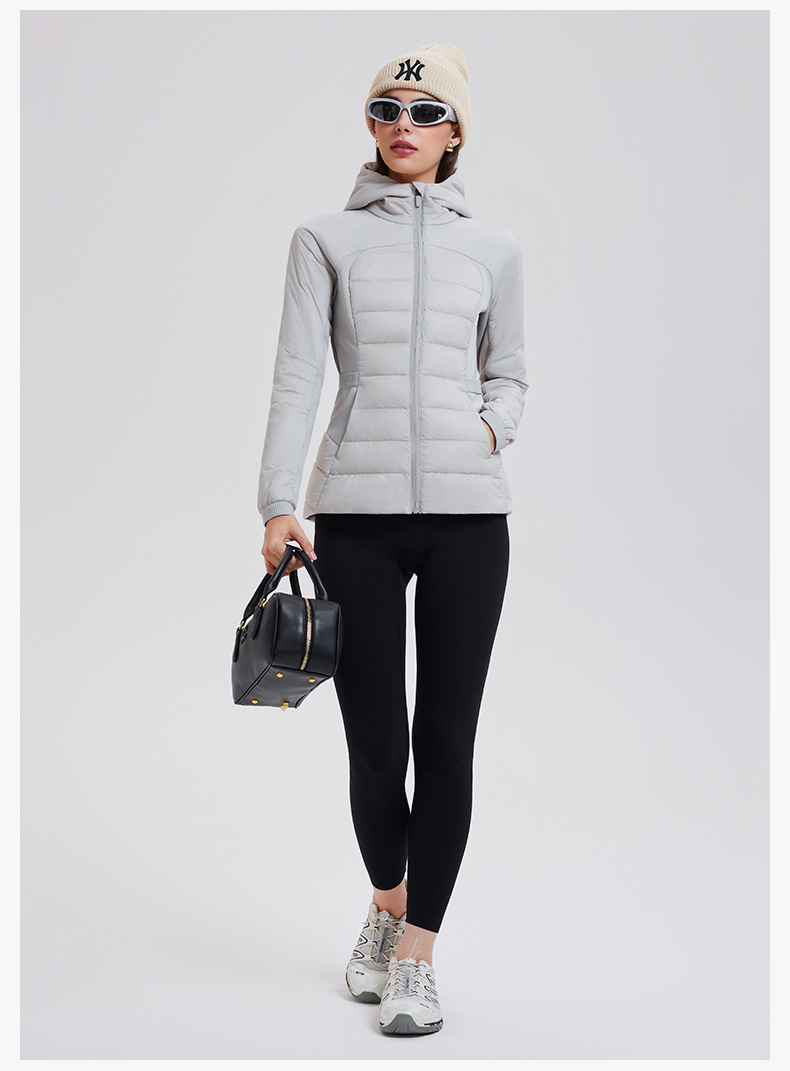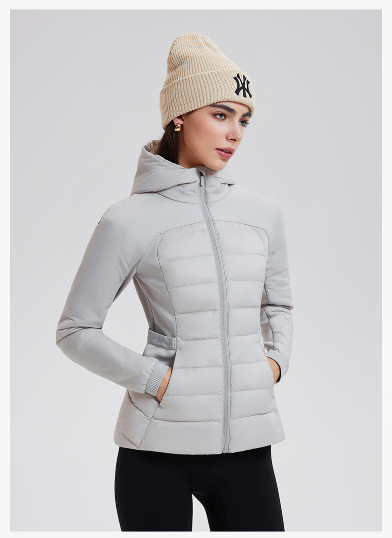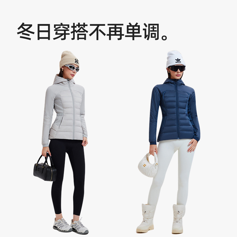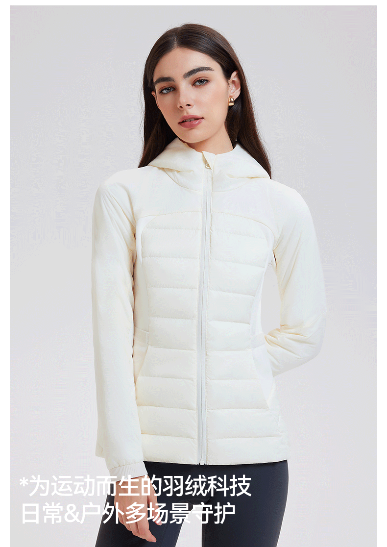 lu家秋冬新款羽绒外套女白鹅绒修身跑步上衣连帽休闲运动羽绒服女